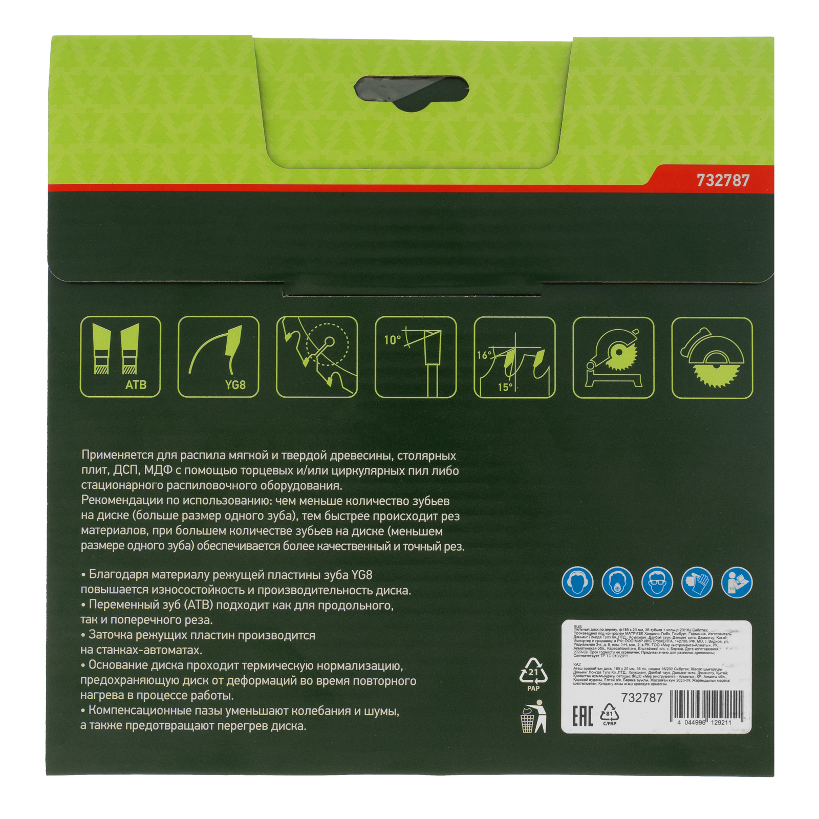 Пильный диск по дереву Сибртех 732787 диаметром 185 х 20 мм, с 36 зубьями и переходным кольцом 20/16, предназначен для быстрого распила древесины мягких и твердых пород, фанеры, ДСП, МДФ. Используется с циркулярными и торцовочными пилами с посадочным диаметром 20 мм. Переходное кольцо 20/16 позволяет при необходимости изменить размер посадки. Средние зубья позволяют добиться оптимального соотношения качества и скорости реза. Диск подходит для бытового применения.