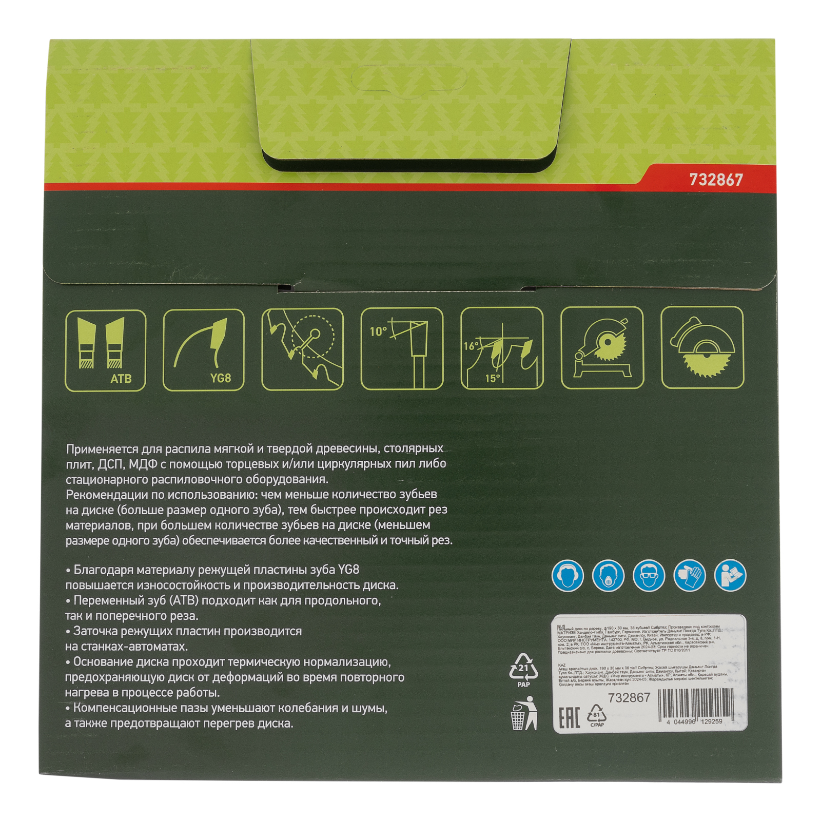 Пильный диск Сибртех 732867 диаметром 190 х 30 мм, с 36 зубьями, используется с торцовочными и циркулярными пилами, а также с распиловочными станками. Предназначен для продольного и поперечного пиления древесины мягких и твердых пород, фанеры, МДФ и ДСП. Благодаря средним зубьям достигается оптимальное соотношение скорости и качества реза. Диск применяется для выполнения строительных, ремонтных работ, а также для решения бытовых задач.