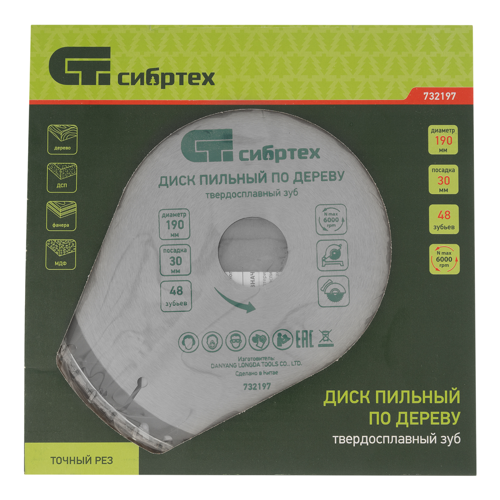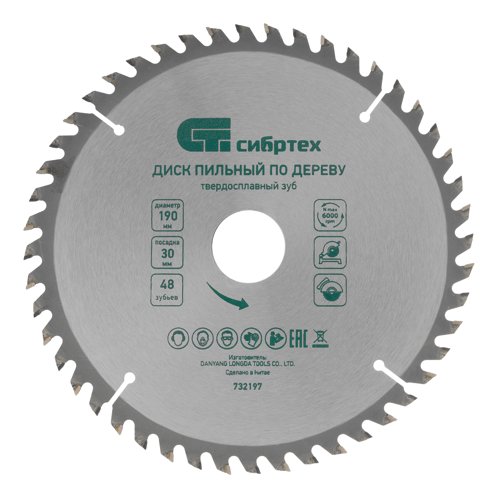 Пильный диск по дереву, 190 х 30 мм, 48 зубьев Сибртех