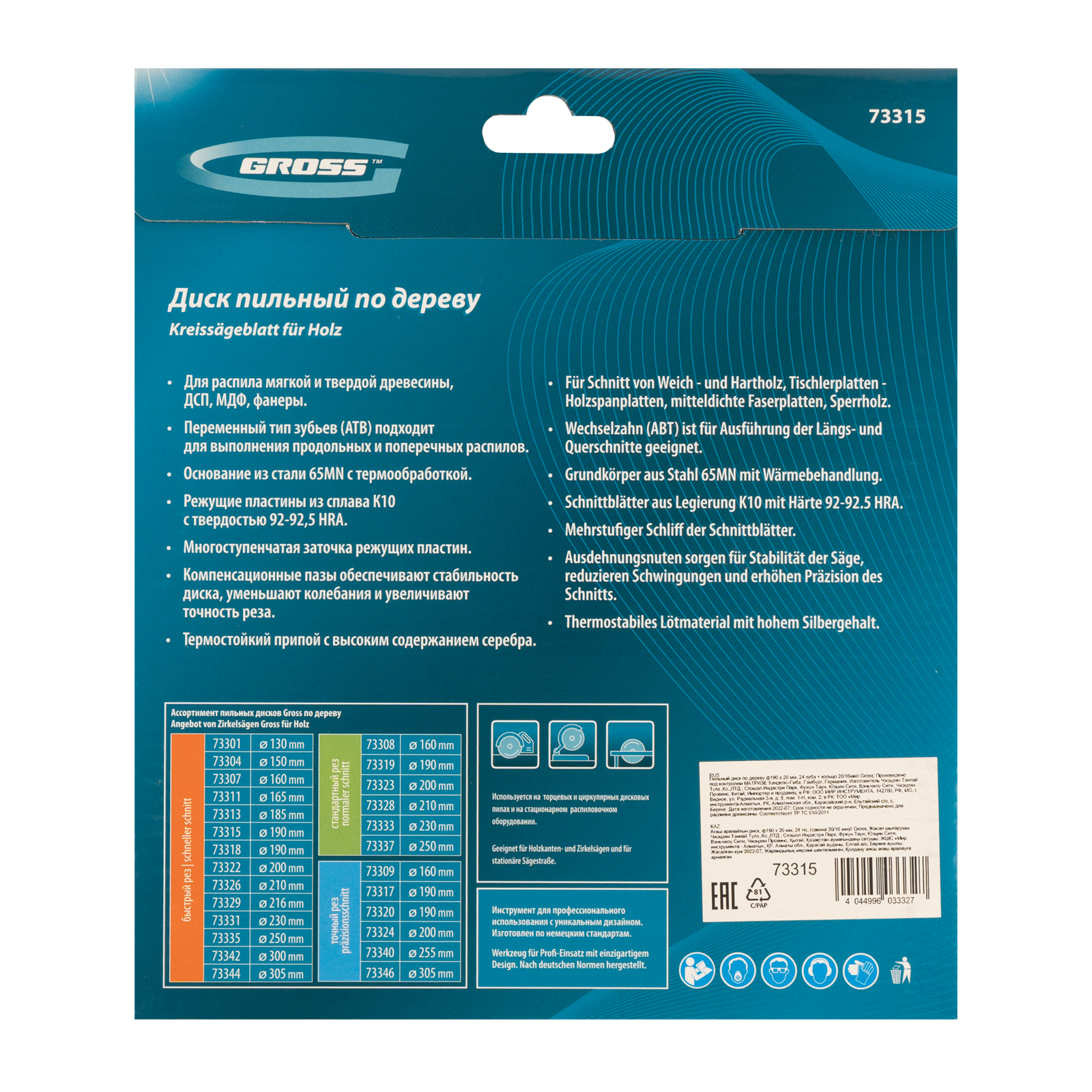 Пильный диск по дереву 190 x 20/16 x 24Т Gross