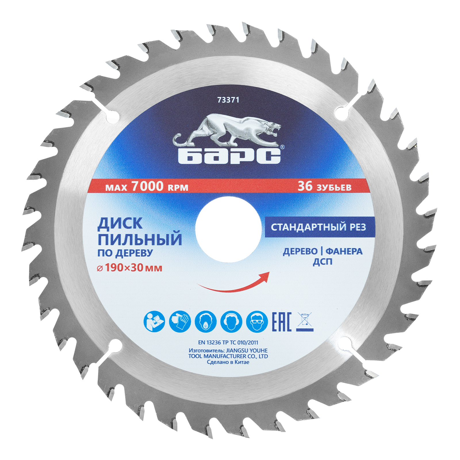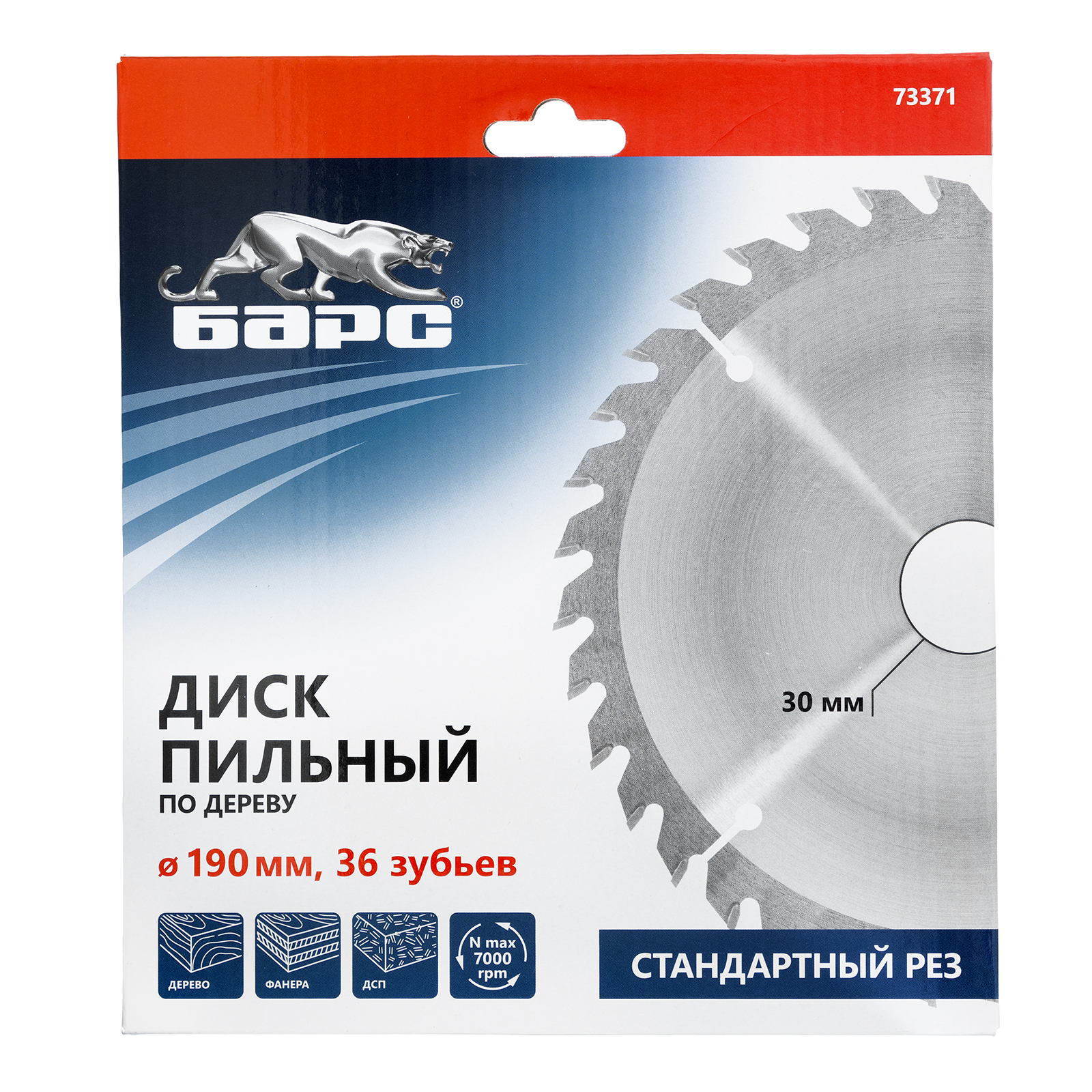 Пильный диск по дереву 190 x 30 мм, 36 твердосплавных зуба Барс