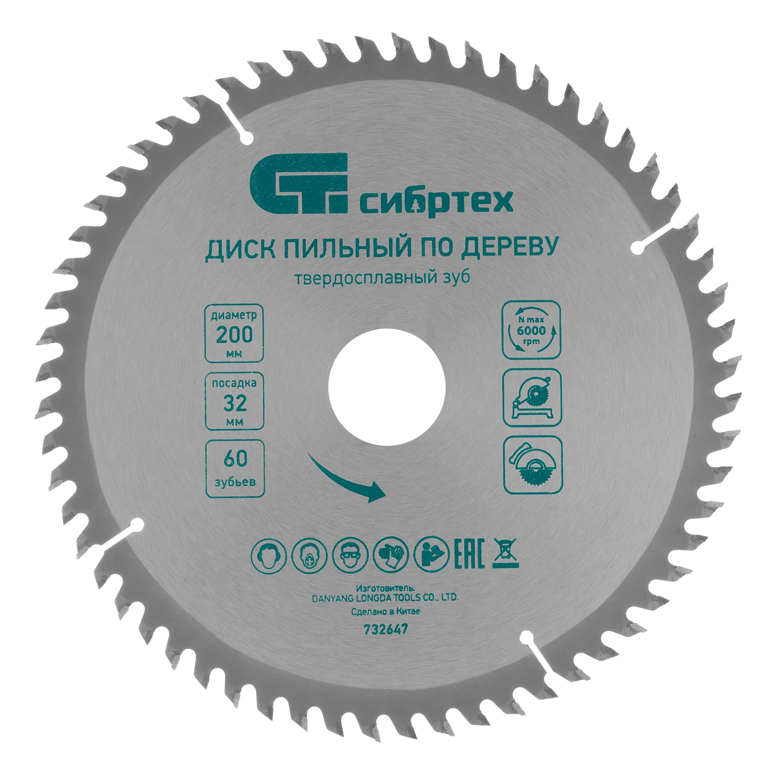 Пильный диск по дереву, 200 х 32 мм, 60 зубьев, кольцо 30/32 Сибртех