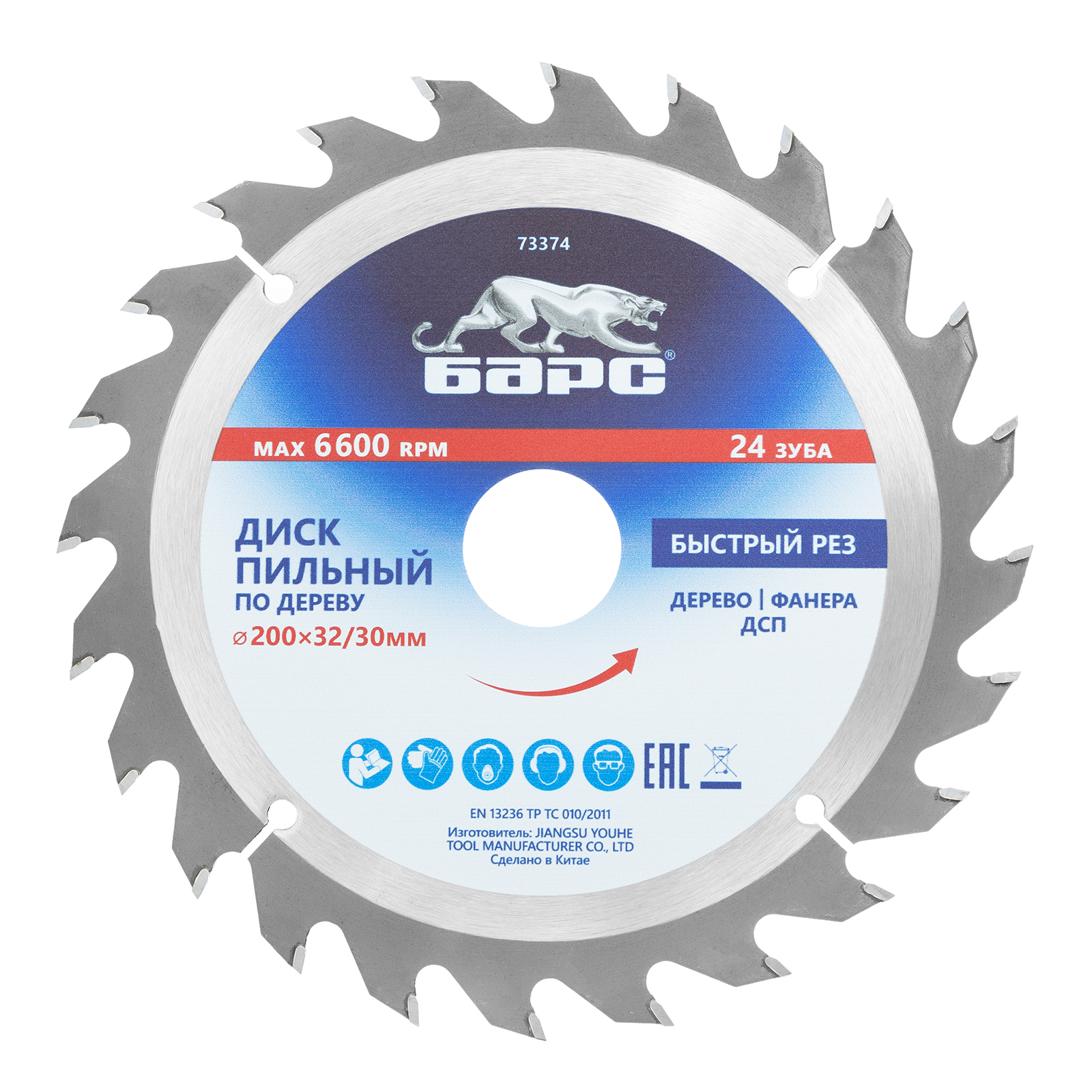 Пильный диск по дереву 200 x 32/30 мм, 24 твердосплавных зуба Барс