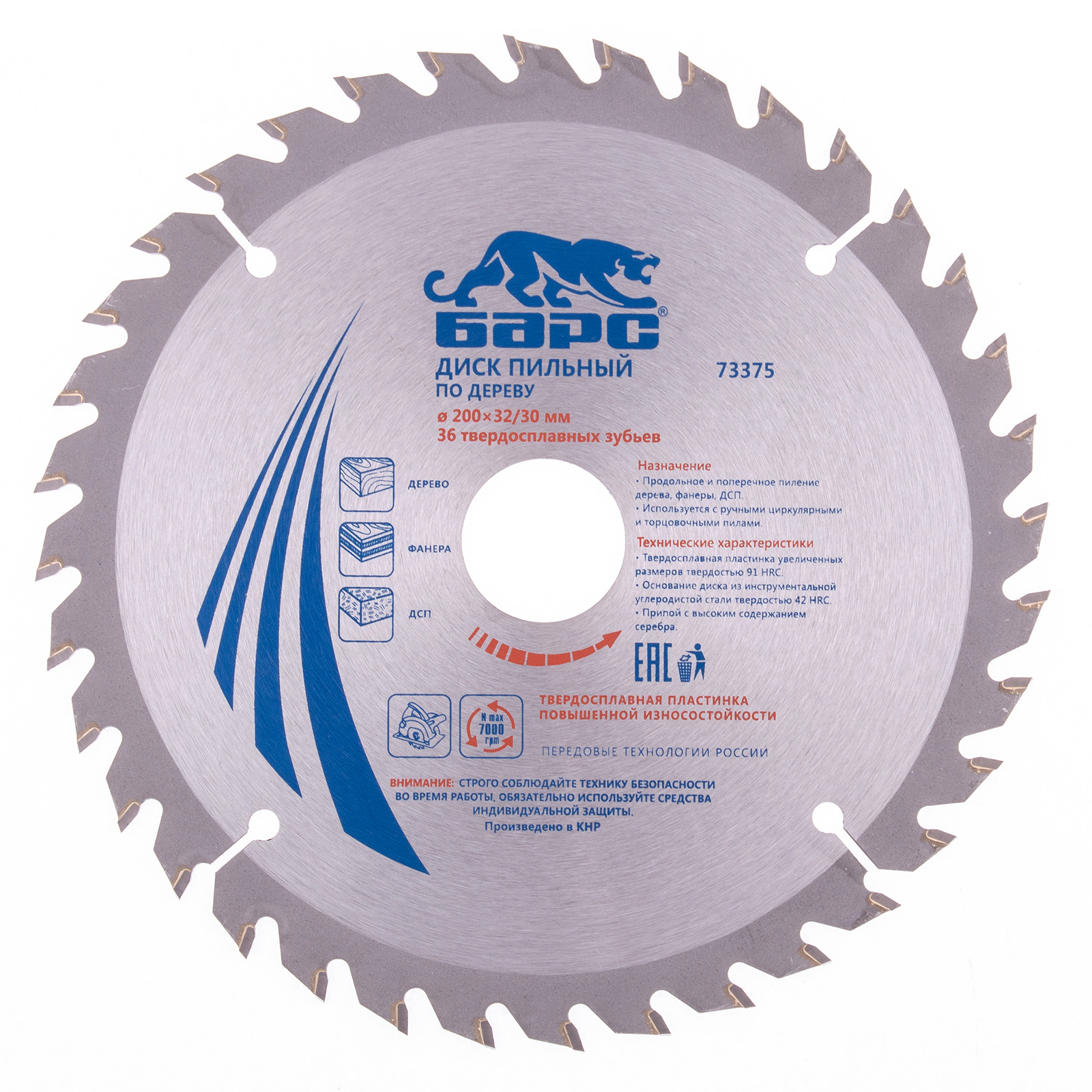 Пильный диск по дереву 200 x 32/30 мм, 36 твердосплавных зуба Барс