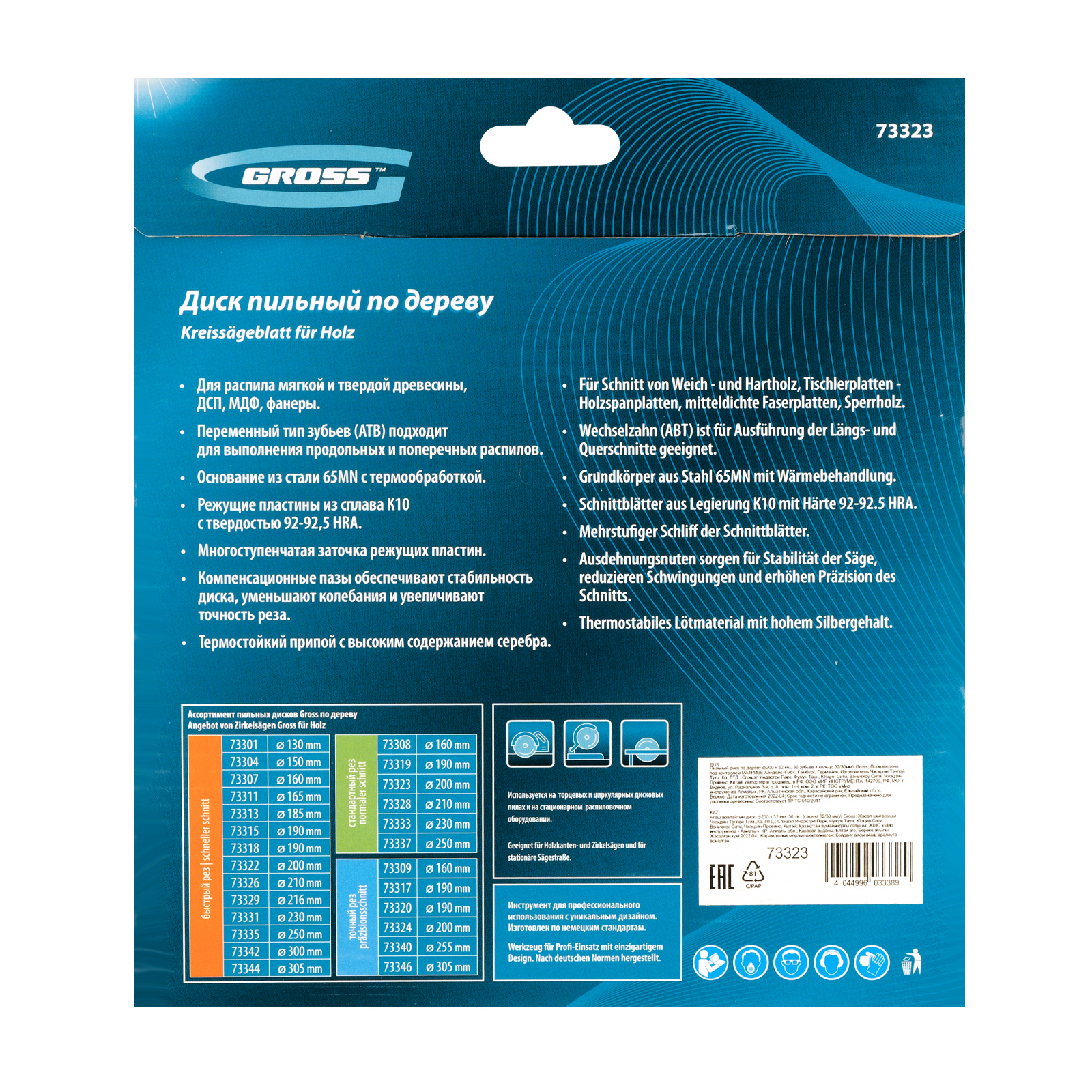 Пильный диск Gross 73323 диаметром 200 х 32 мм, с 36 зубьями и переходным кольцом 32/30 мм, предназначен для распила древесины мягких и твердых пород, ДСП, МДФ и фанеры. Используется в качестве оснастки для циркулярных и торцовочных пил с посадочным диаметром 32 мм, благодаря универсальному типу зубьев АТВ подходит как для продольного, так и для поперечного реза материалов. Диск изготовлен на высококачественном оборудовании, специально рассчитан на профессиональное применение и выполнение большого объема работ.