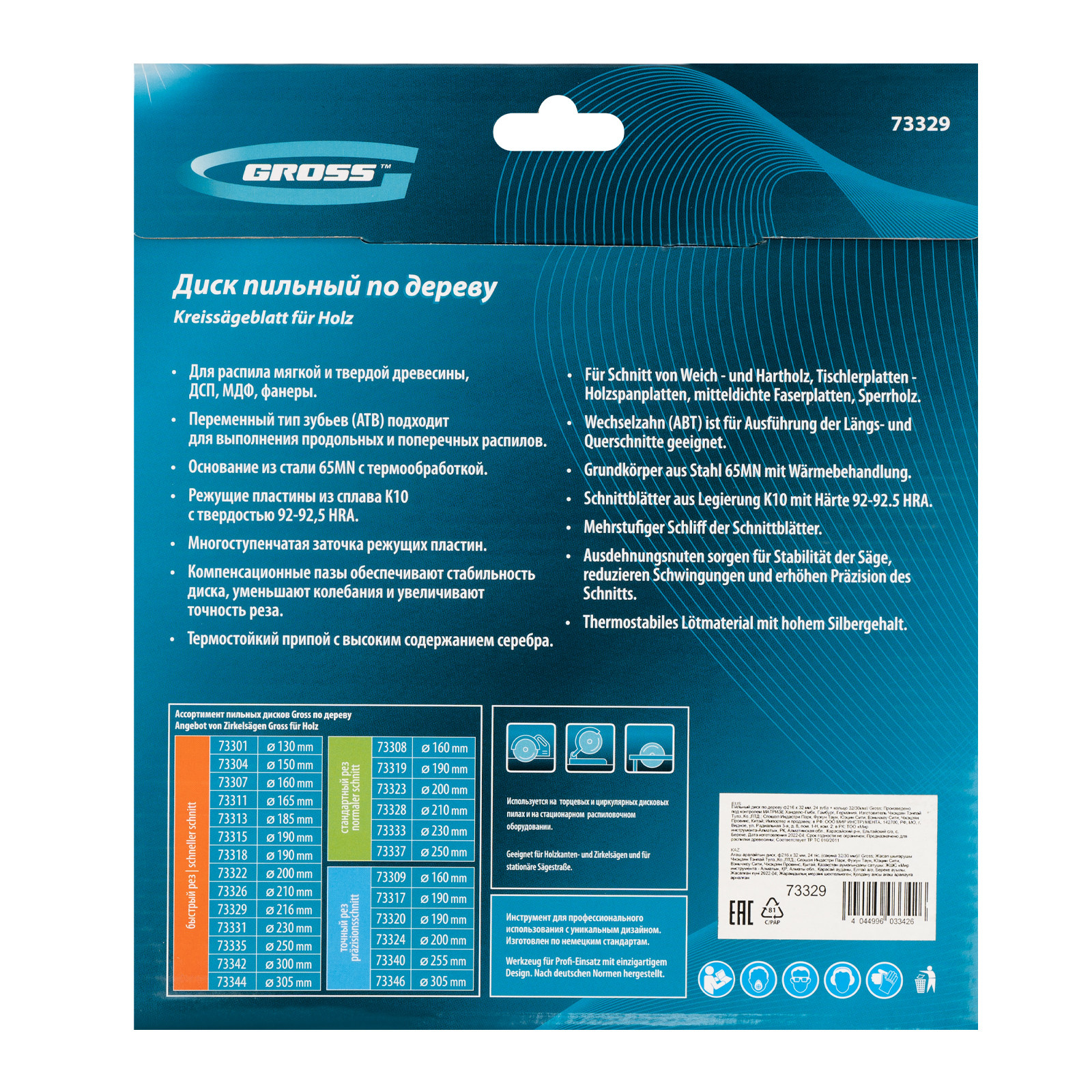 Пильный диск по дереву 216 x 32/30 x 24Т Gross