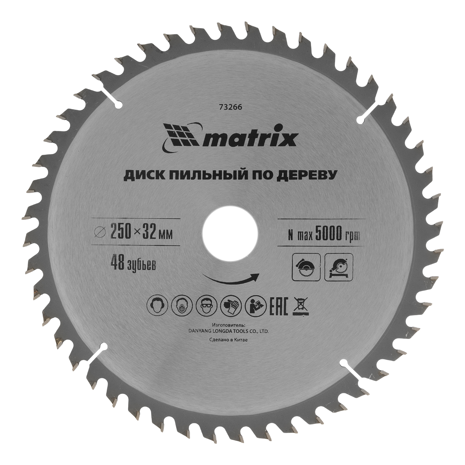 Пильный диск по дереву Matrix 73266 диаметром 250 х 32 мм, с 48 зубьями, — оснастка для циркулярных и торцовочных пил с соответствующим посадочным и внешним диаметром. Используется преимущественно для поперечного реза материалов из мягкой и твердой древесины, ДСП, ДВП, фанеры, столярных плит. Диск подходит для бытового и профессионального применения.