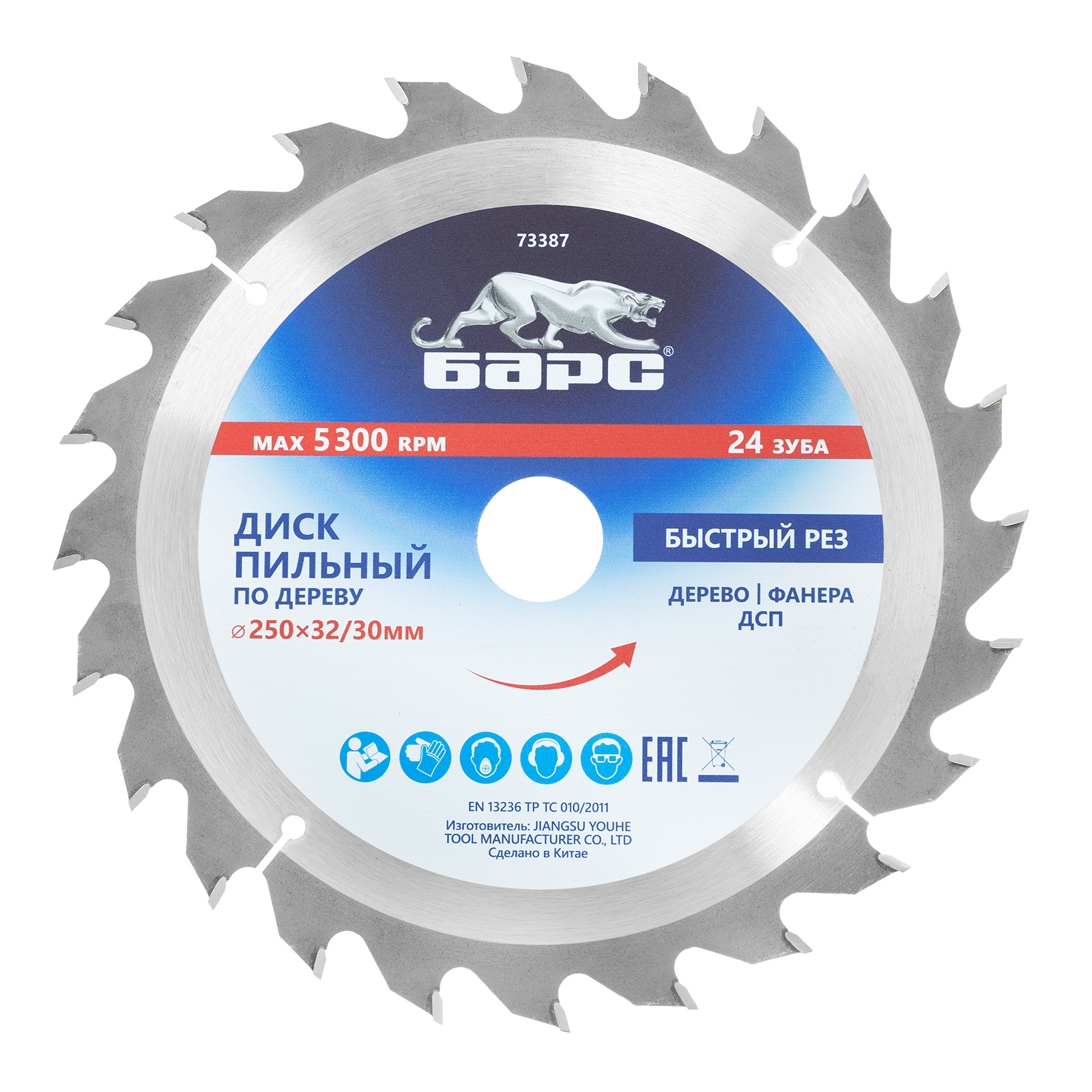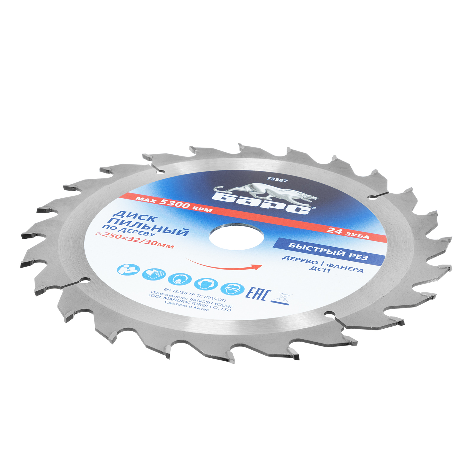 Пильный диск по дереву 250 x 32/30 мм, 24 твердосплавных зуба Барс