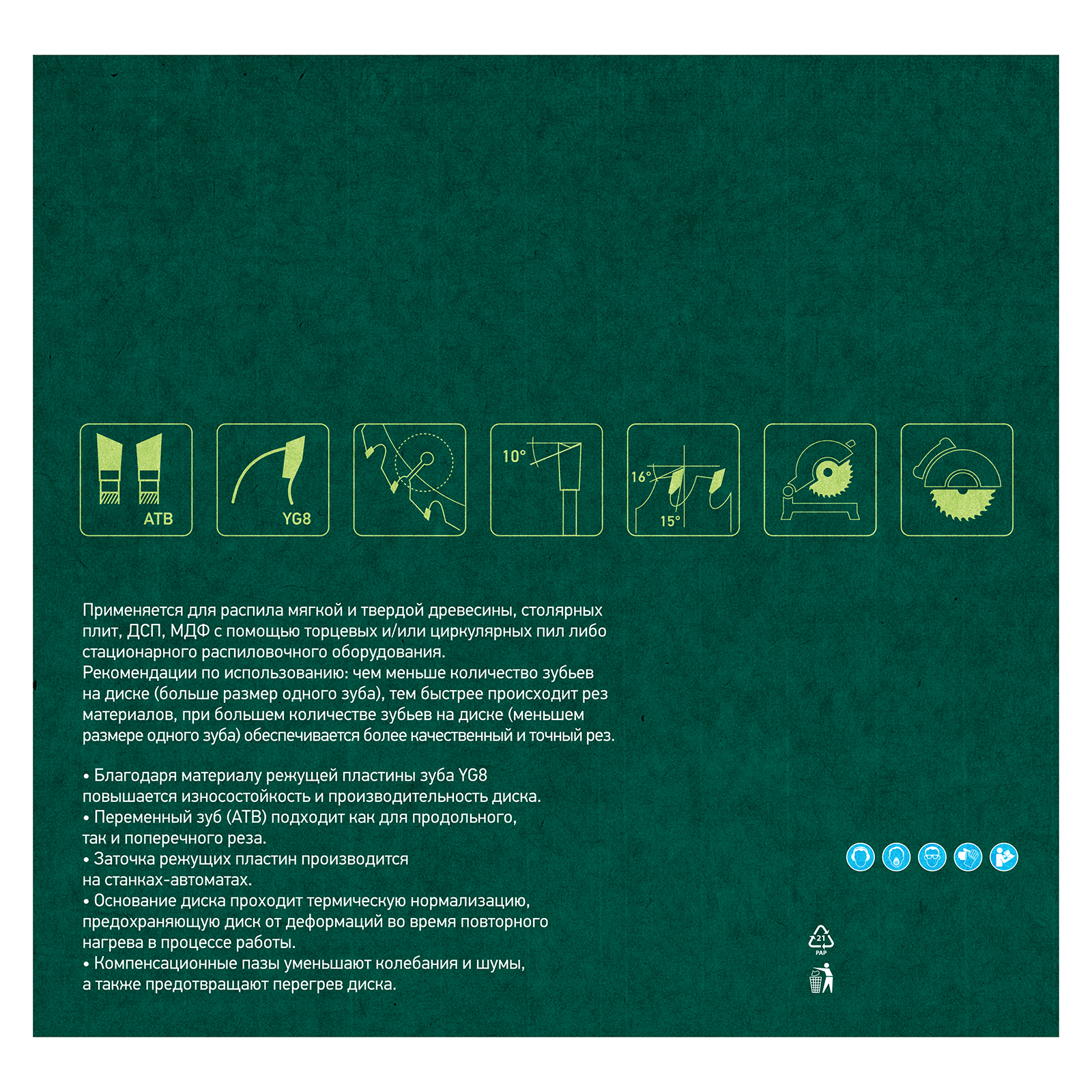 - Стабильно качественный рез — диск пилит быстро и ровно за счет попеременной заточки зубьев, компенсационные пазы защищают диск от деформации в результате нагрева, предотвращая его заклинивание.