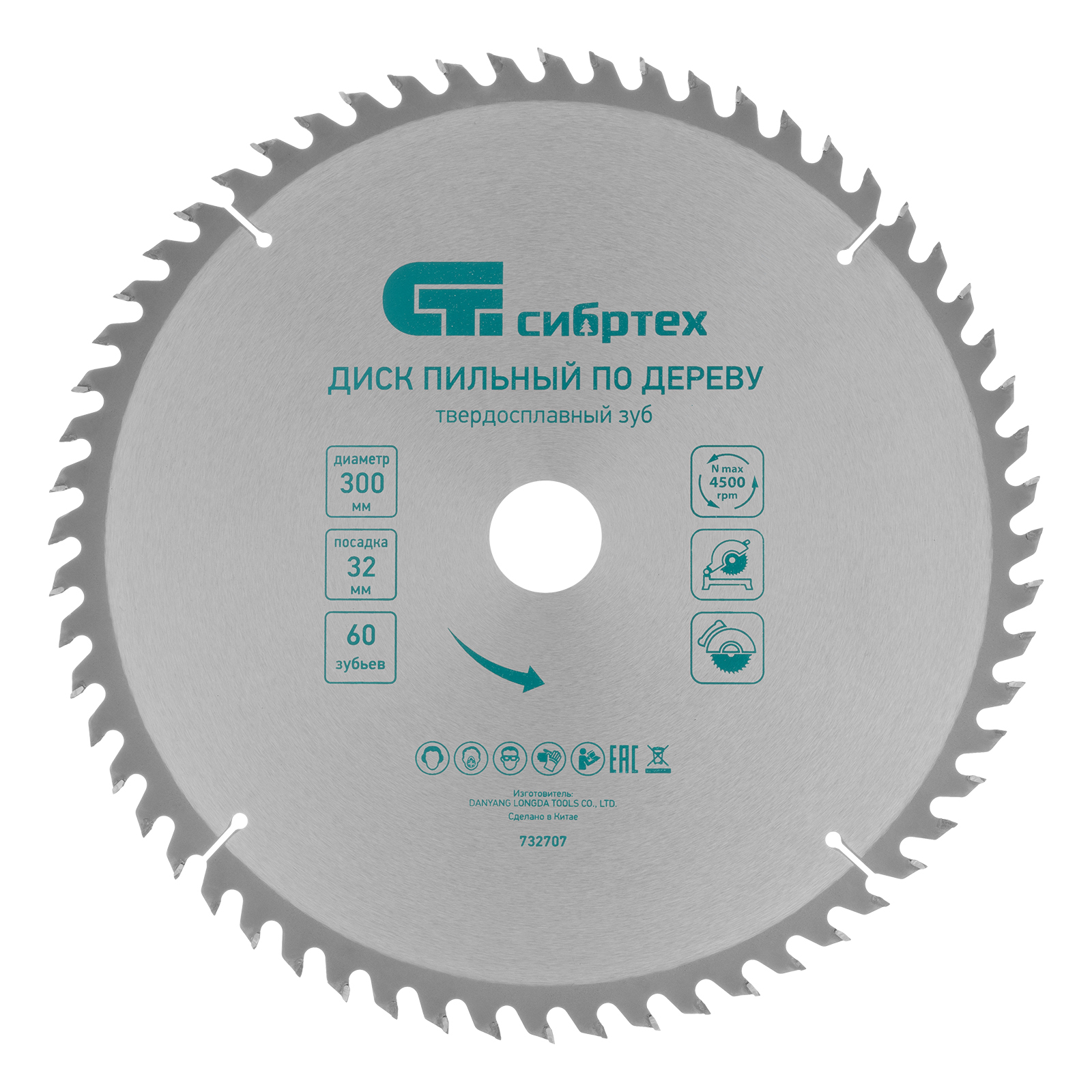 Пильный диск по дереву, 300 х 32 мм, 60 зубьев Сибртех