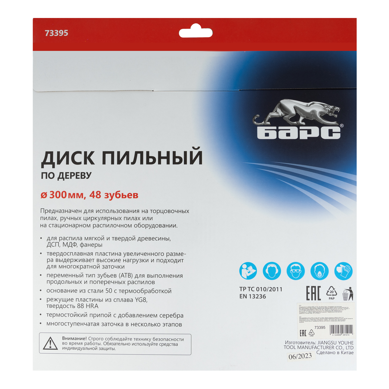 Пильный диск по дереву 300 x 32 мм, 48 твердосплавных зубъев Барс
