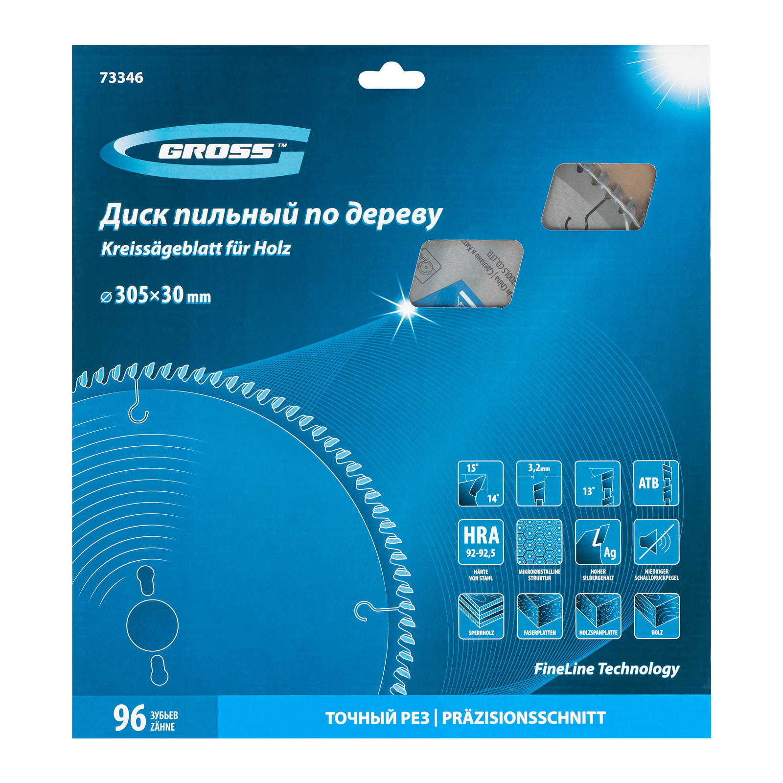 - Высокое качество работ — 96 мелких зубьев и режущие кромки, прошедшие многоступенчатую автоматическую заточку, обеспечивают точный и чистый рез материалов.