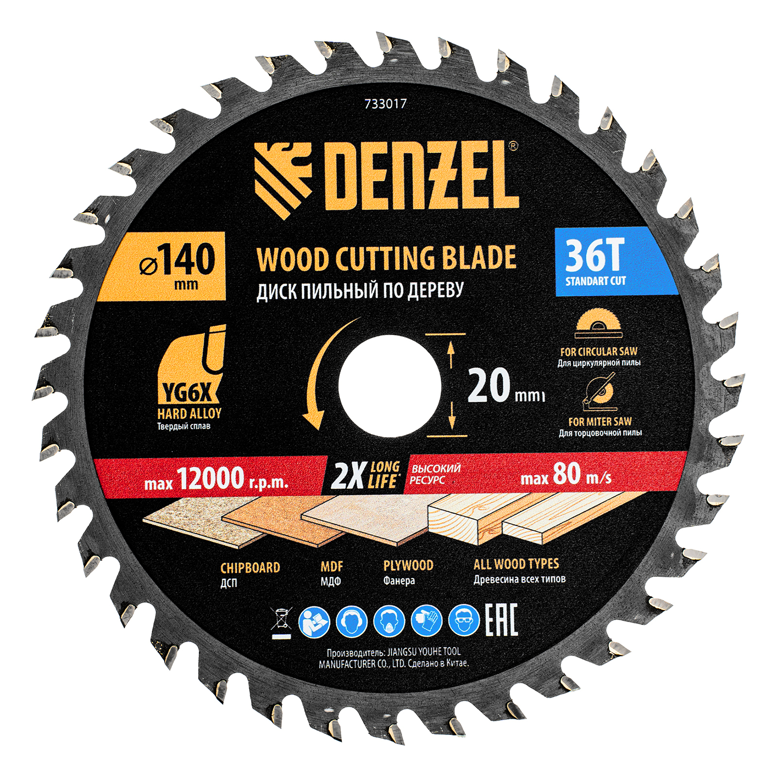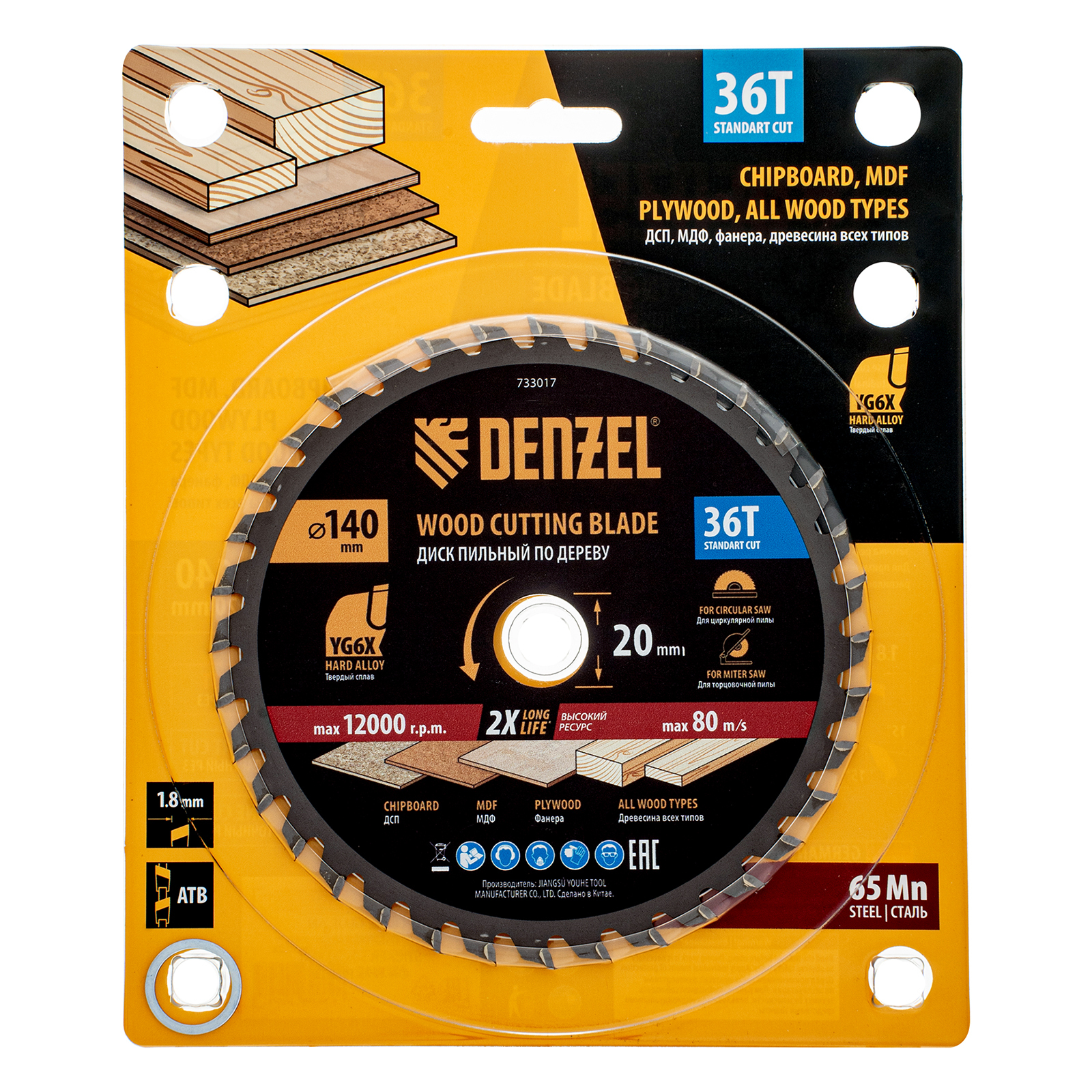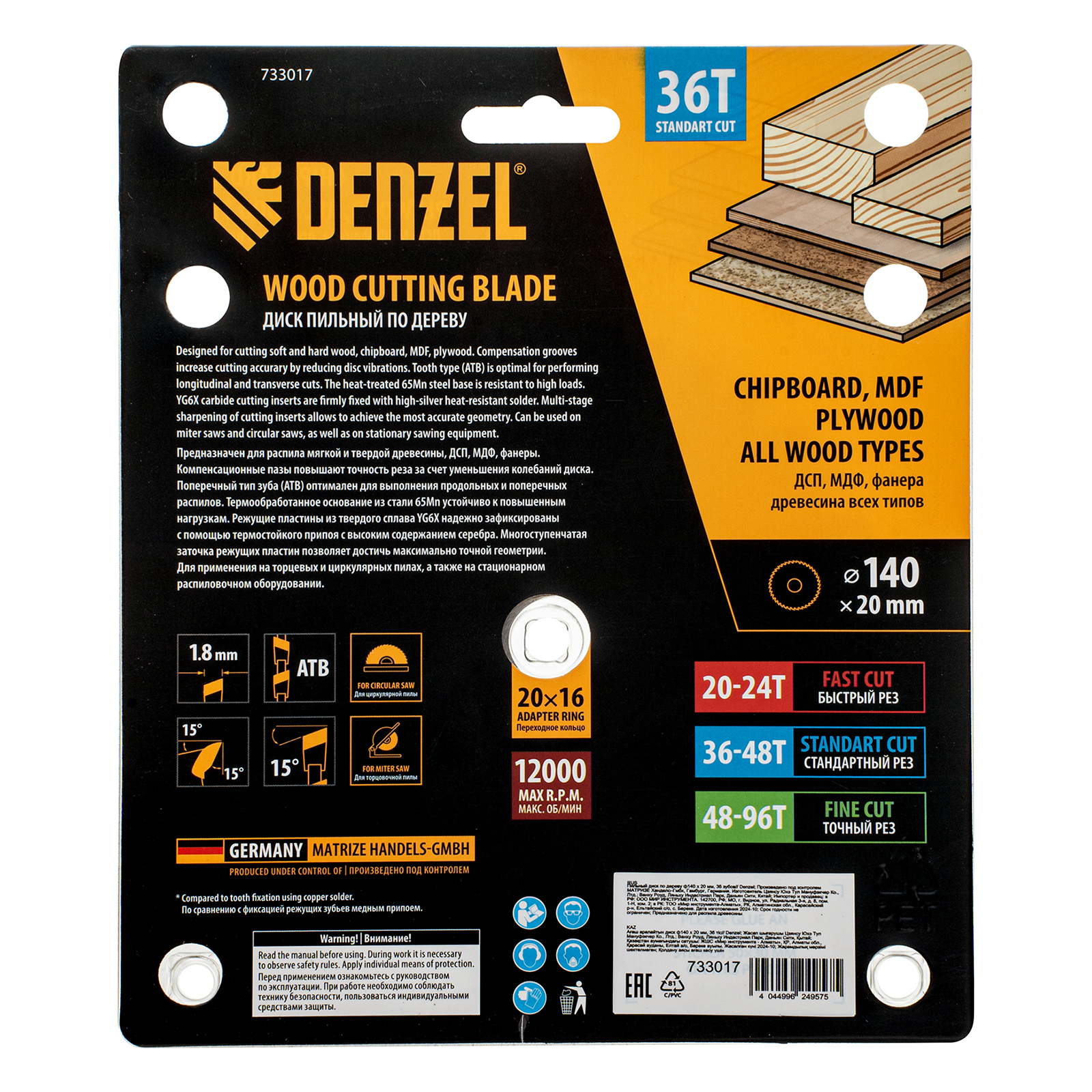 Пильный диск по дереву ф140 х 20 мм, 36 зубов Denzel