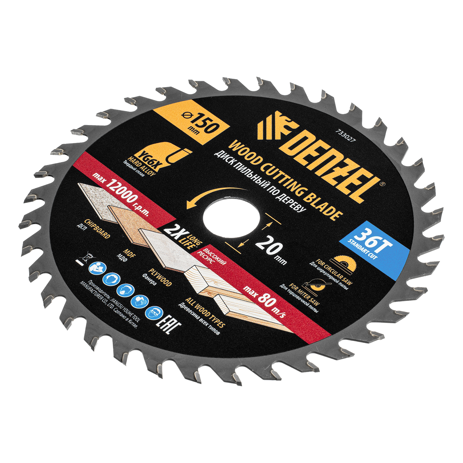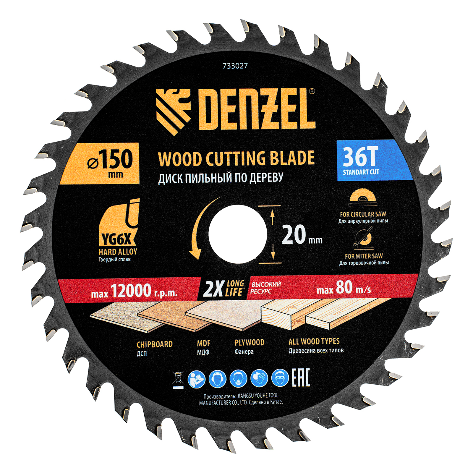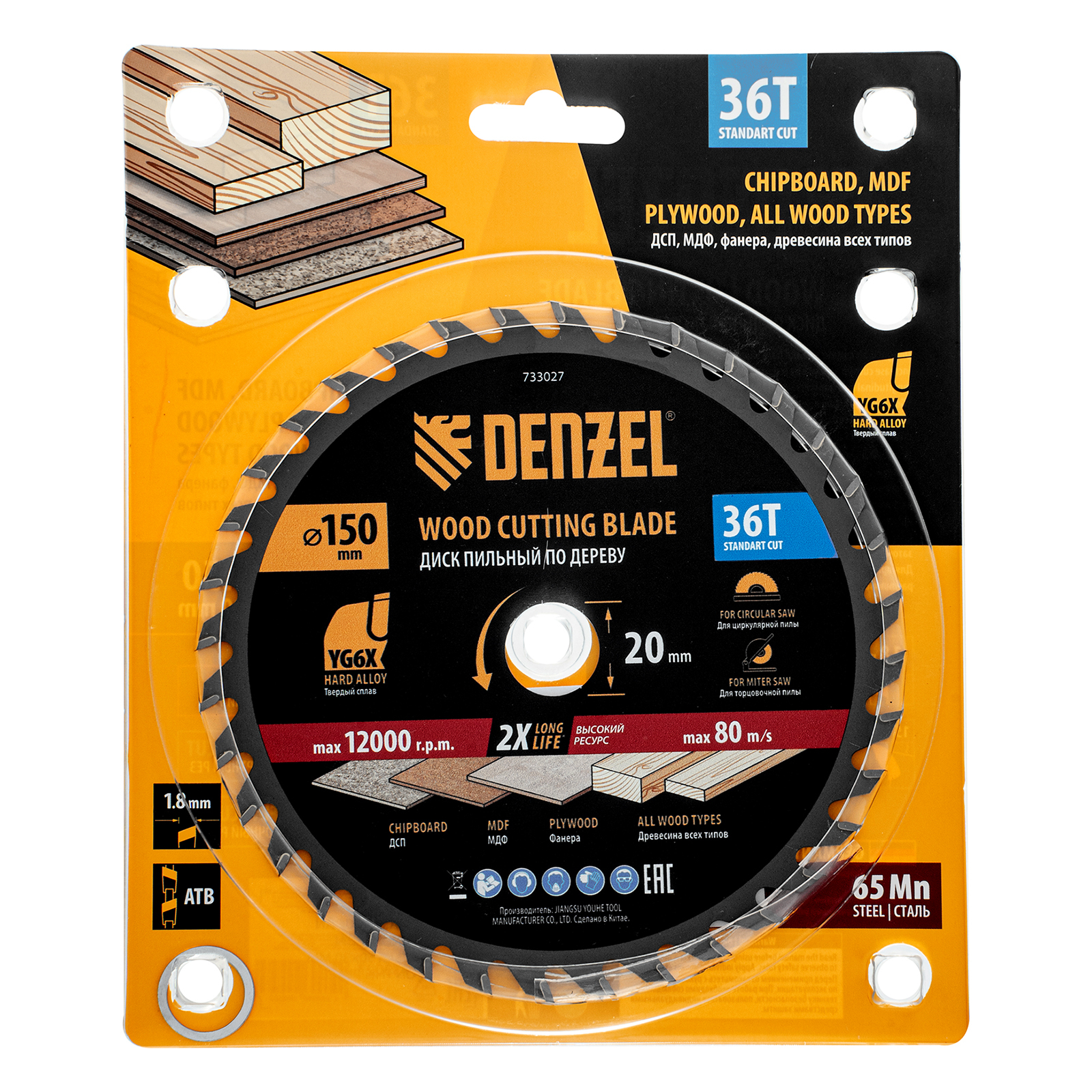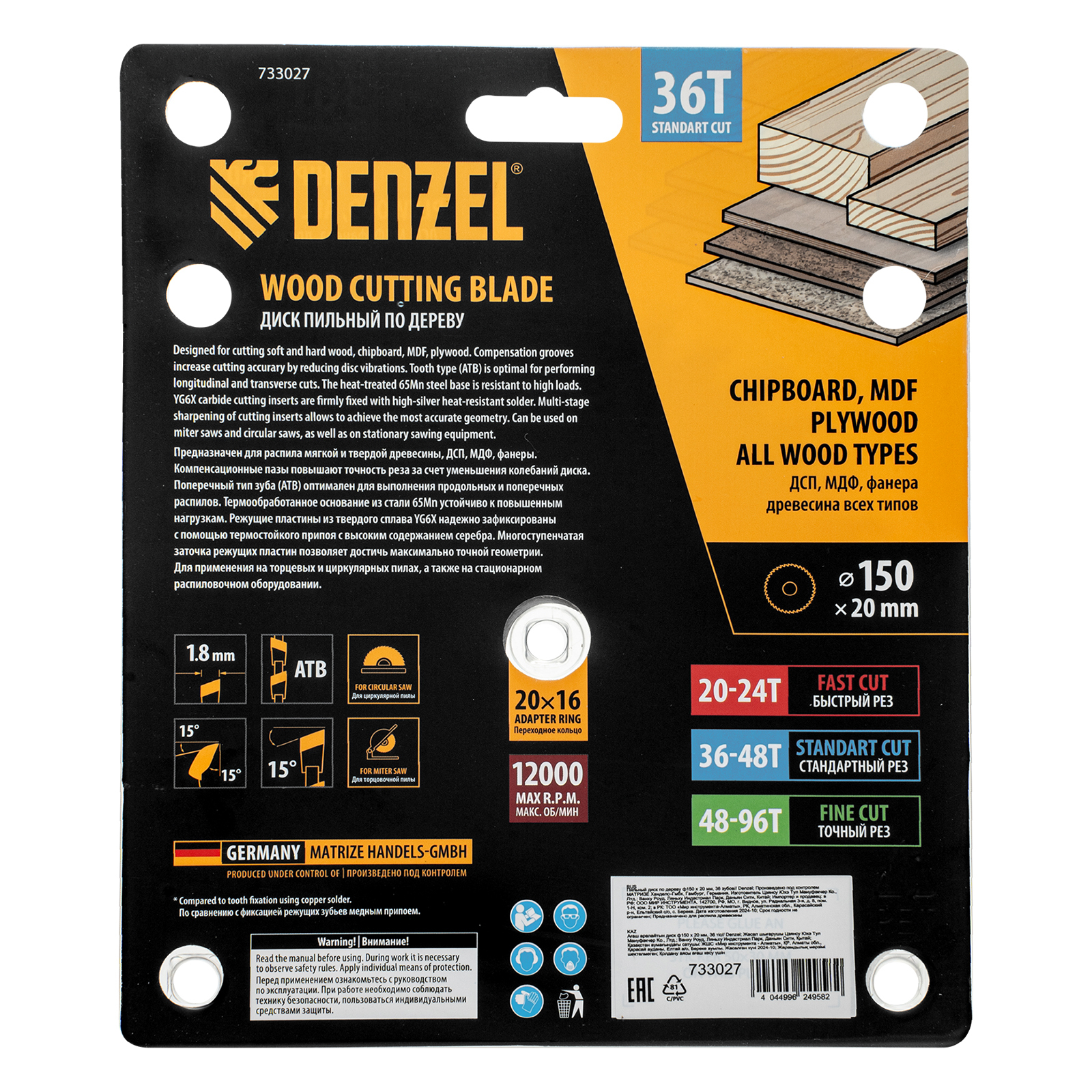 Пильный диск по дереву ф150 х 20 мм, 36 зубов Denzel