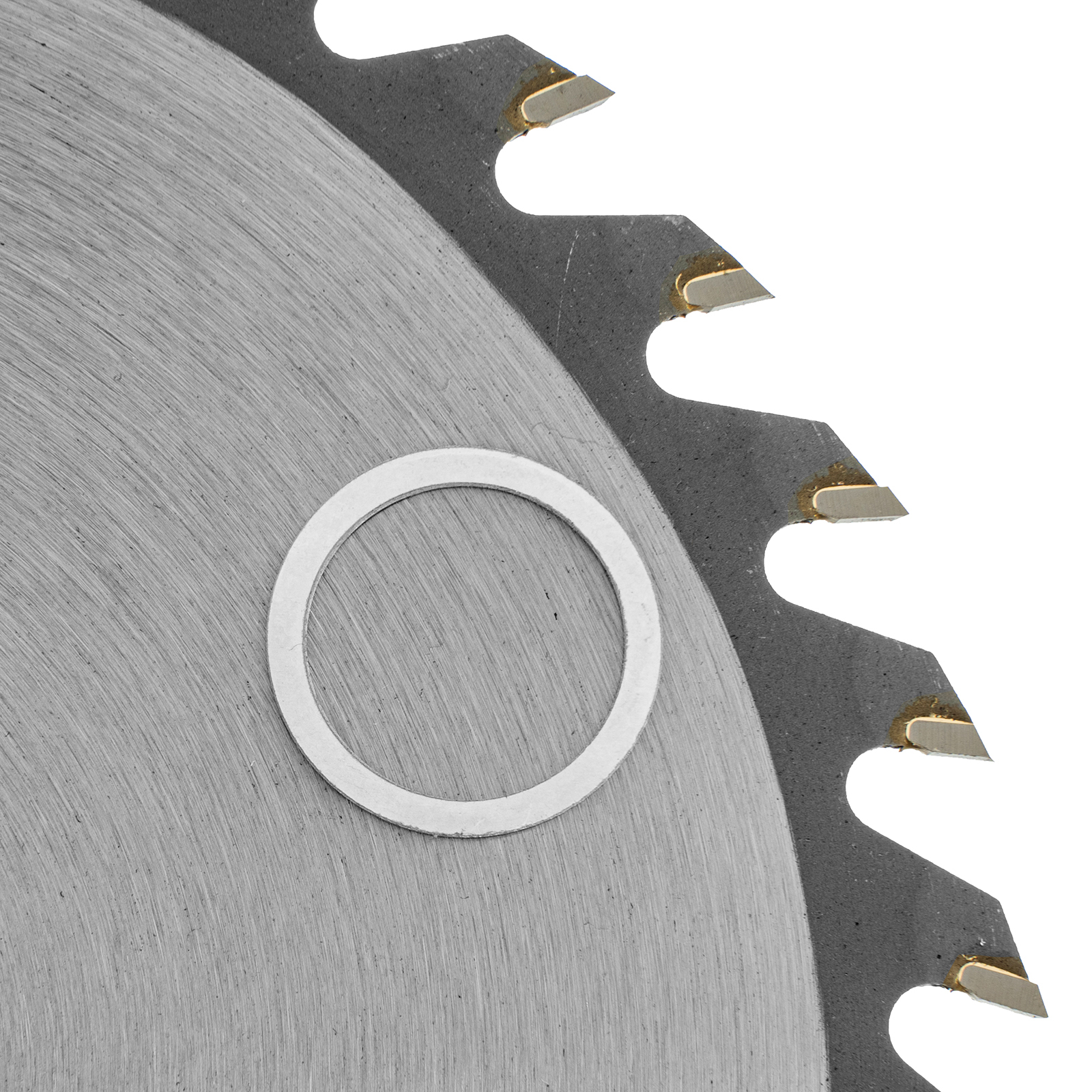 Пильный диск Denzel 733027 диаметром 150 x 20 мм, с 36 зубьями, предназначен для продольного и поперечного распила твердой и мягкой древесины, фанеры, МДФ, ДСП. 36 зубьев типа ATB с режущими пластинами оптимальной геометрии обеспечивают качественный рез. Тип реза — стандартный. Режущие пластины из твердого сплава YG6X сохраняют рабочие свойства при интенсивном использовании. Диск устанавливается на циркулярную, торцовочную пилу или на распиловочный станок. В комплект поставки входит переходное кольцо с 20 на 16 мм, что позволяет изменить посадочный размер и расширяет возможности использования диска.