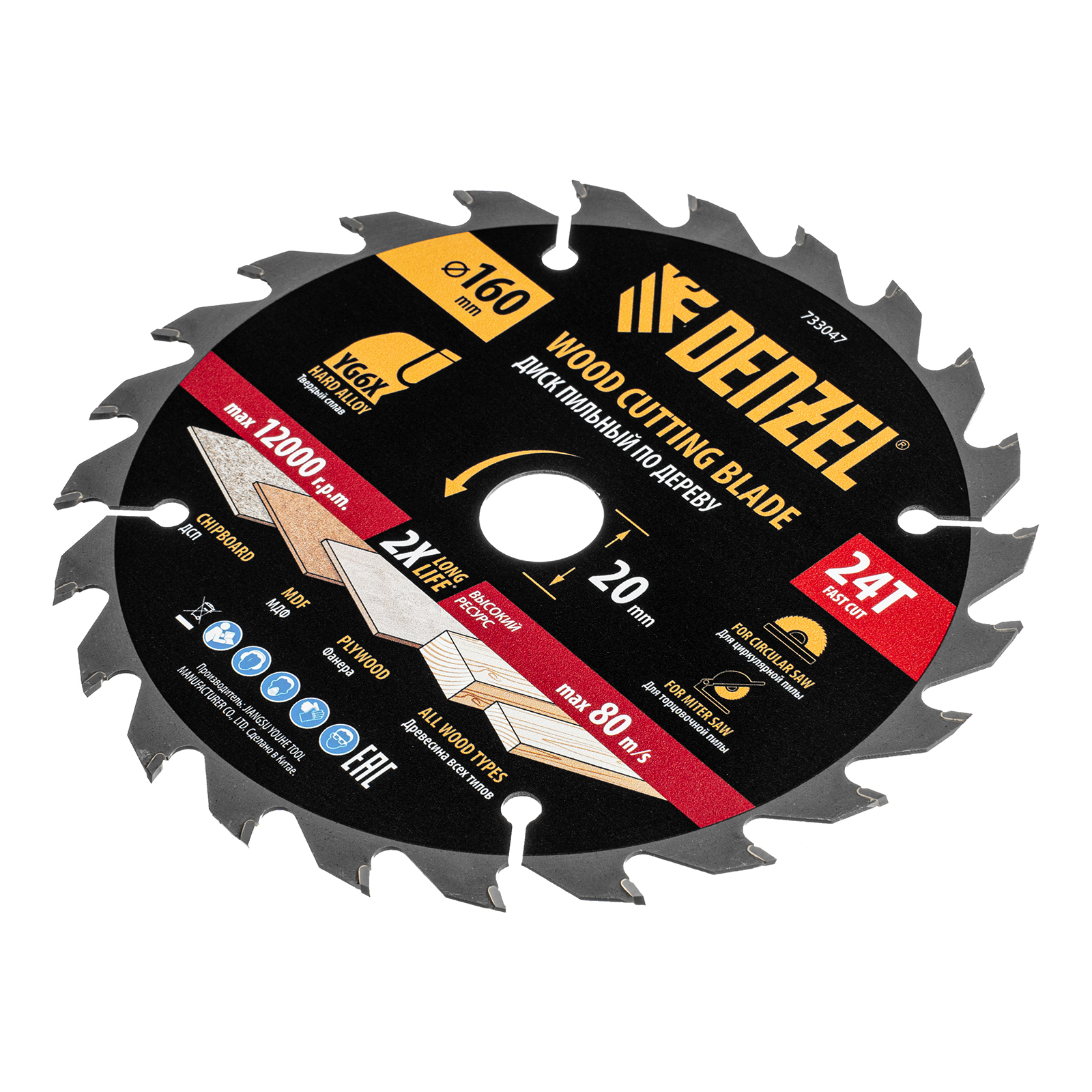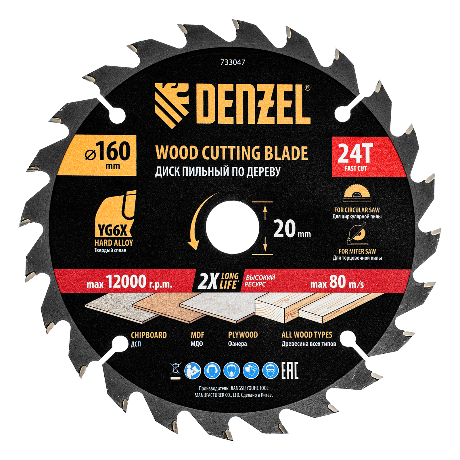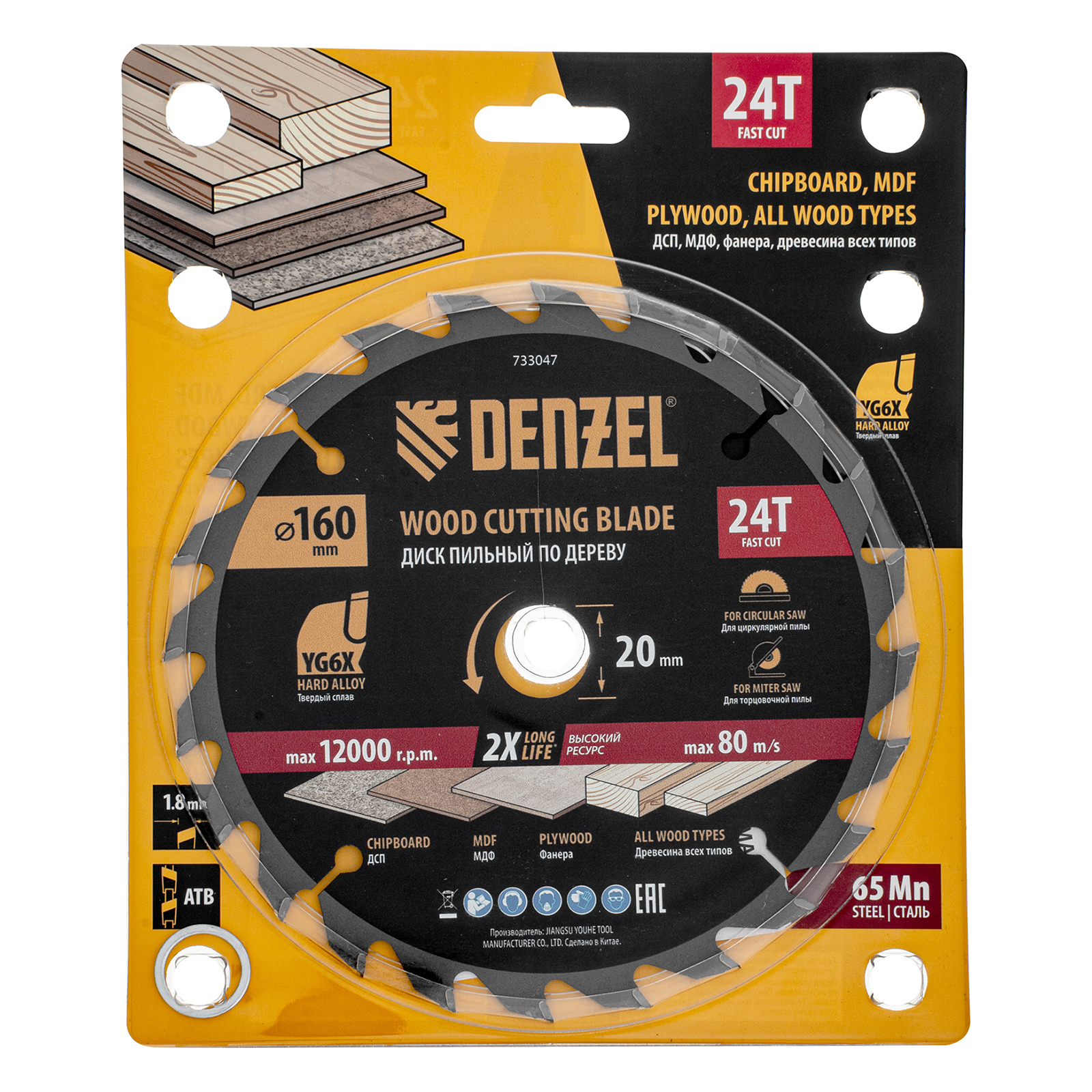 Пильный диск по дереву ф160 х 20 мм, 24 зубьев Denzel
