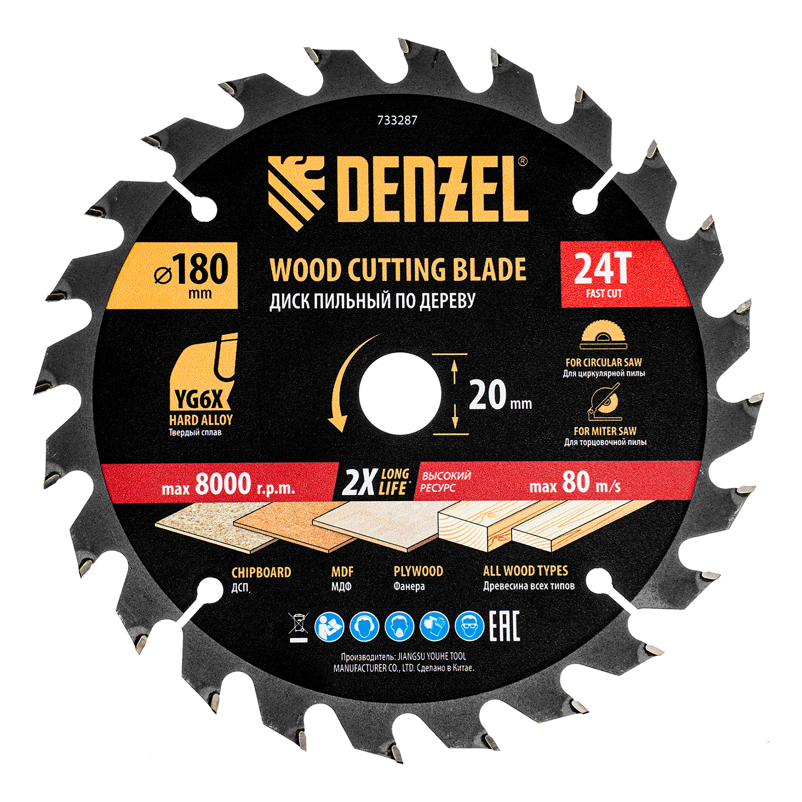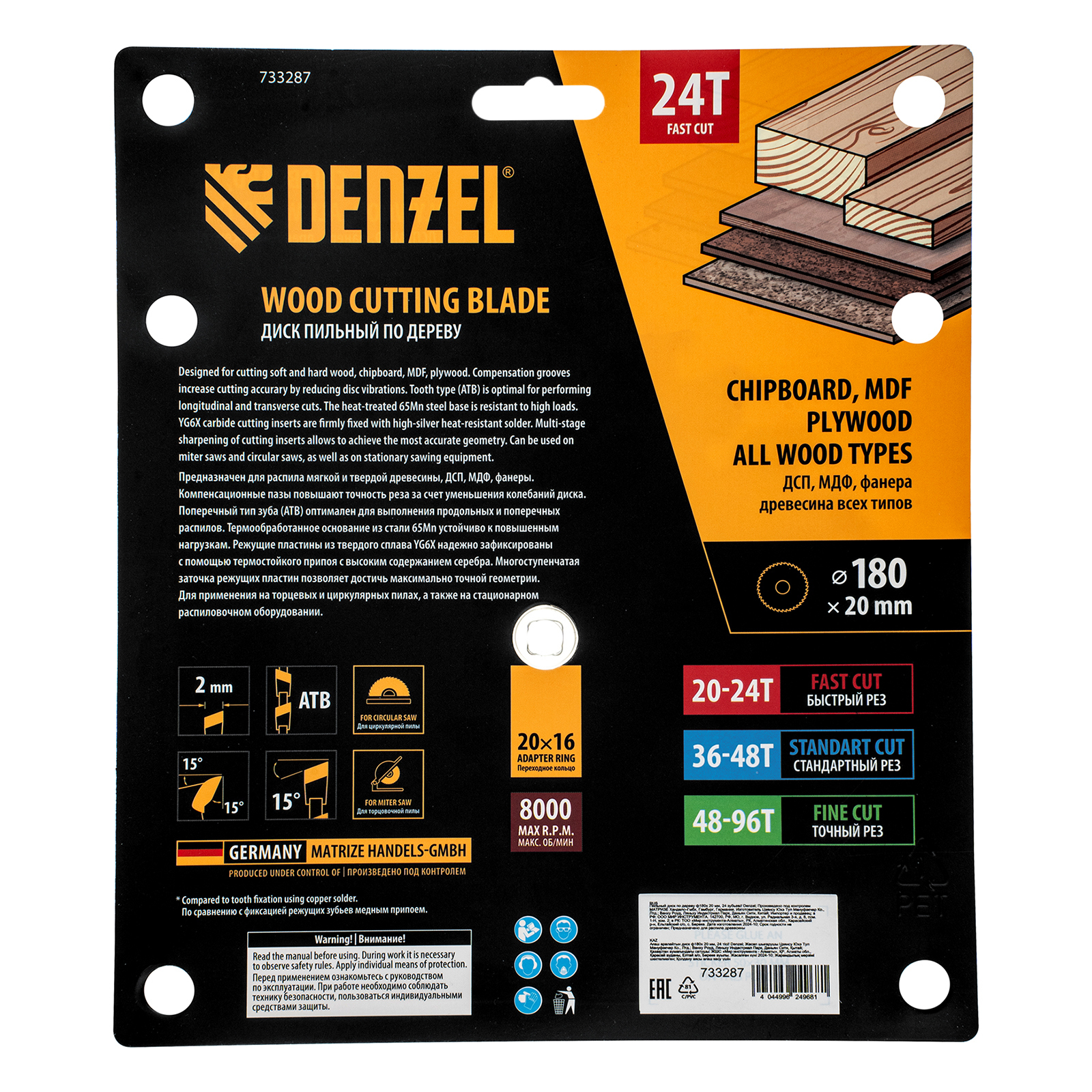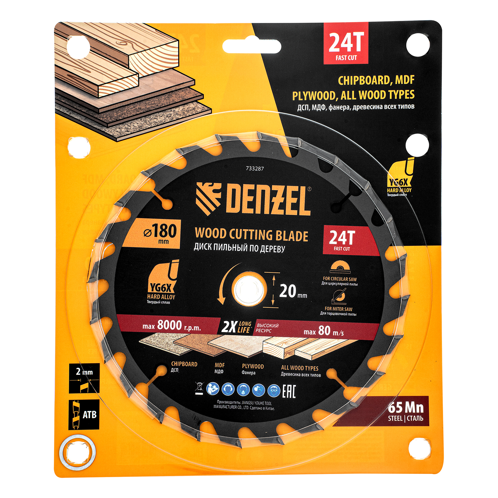 Пильный диск по дереву ф180х 20 мм, 24 зубьев Denzel