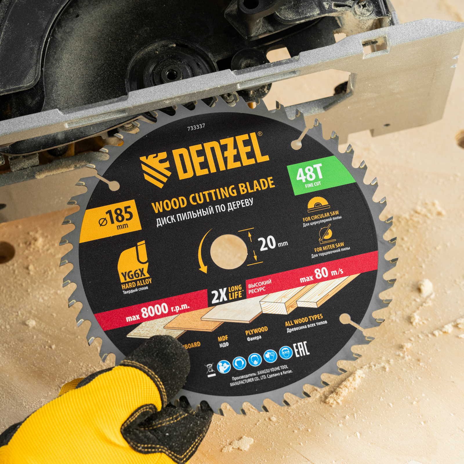 Пильный диск по дереву ф185 х 20 мм, 48 зубьев, тонкий Denzel