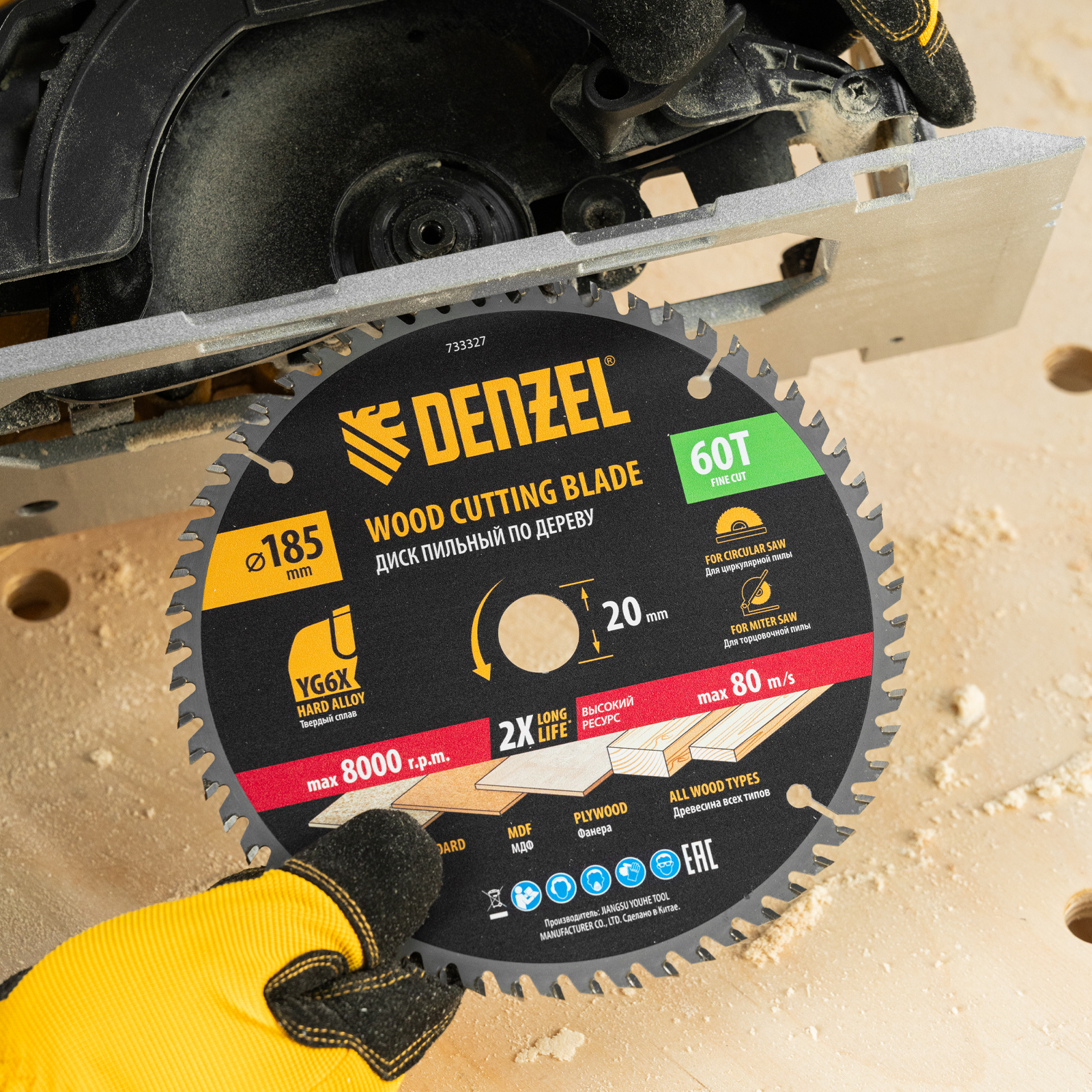 Пильный диск по дереву ф185 х 20 мм, 60 зубьев Denzel
