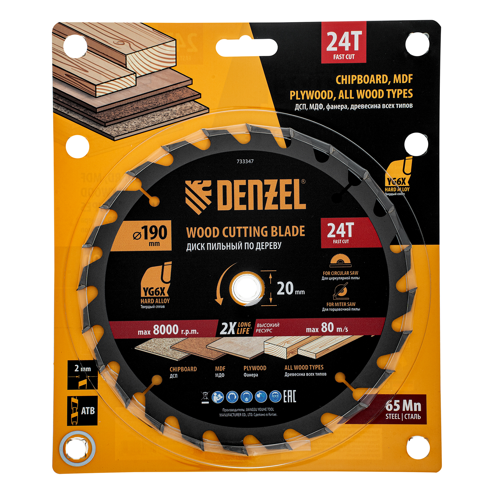 Пильный диск по дереву ф190 х 20 мм, 24 зубьев Denzel