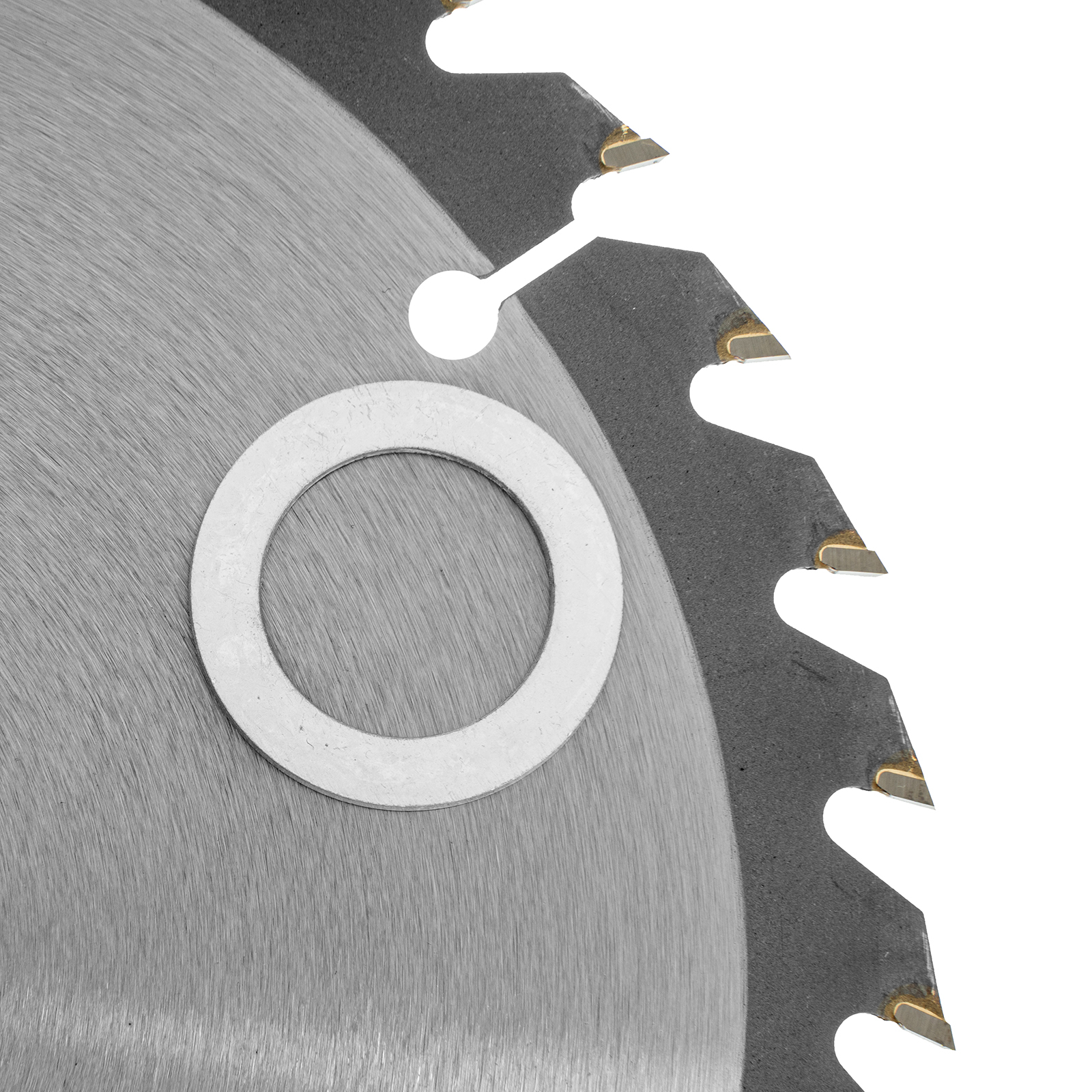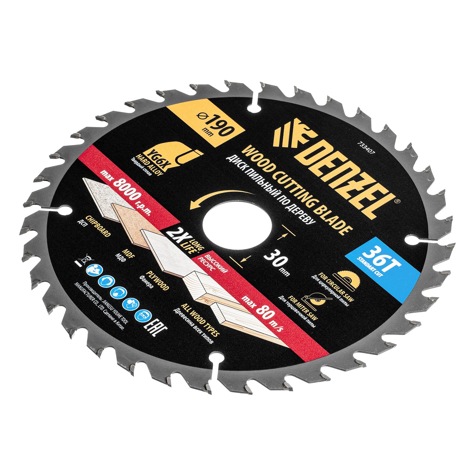 Пильный диск Denzel 733407 диаметром 190 x 30 мм, с 36 зубьями, предназначен для продольного и поперечного распила твердой и мягкой древесины, фанеры, МДФ, ДСП. 36 зубьев типа ATB с режущими пластинами оптимальной геометрии обеспечивают качественный рез. Тип реза — стандартный. Режущие пластины из твердого сплава YG6X сохраняют рабочие свойства при интенсивном использовании. Диск устанавливается на циркулярную, торцовочную пилу или на распиловочный станок. В комплект поставки входит переходное кольцо с 30 на 20 мм, что позволяет изменить посадочный размер и расширяет возможности использования диска.