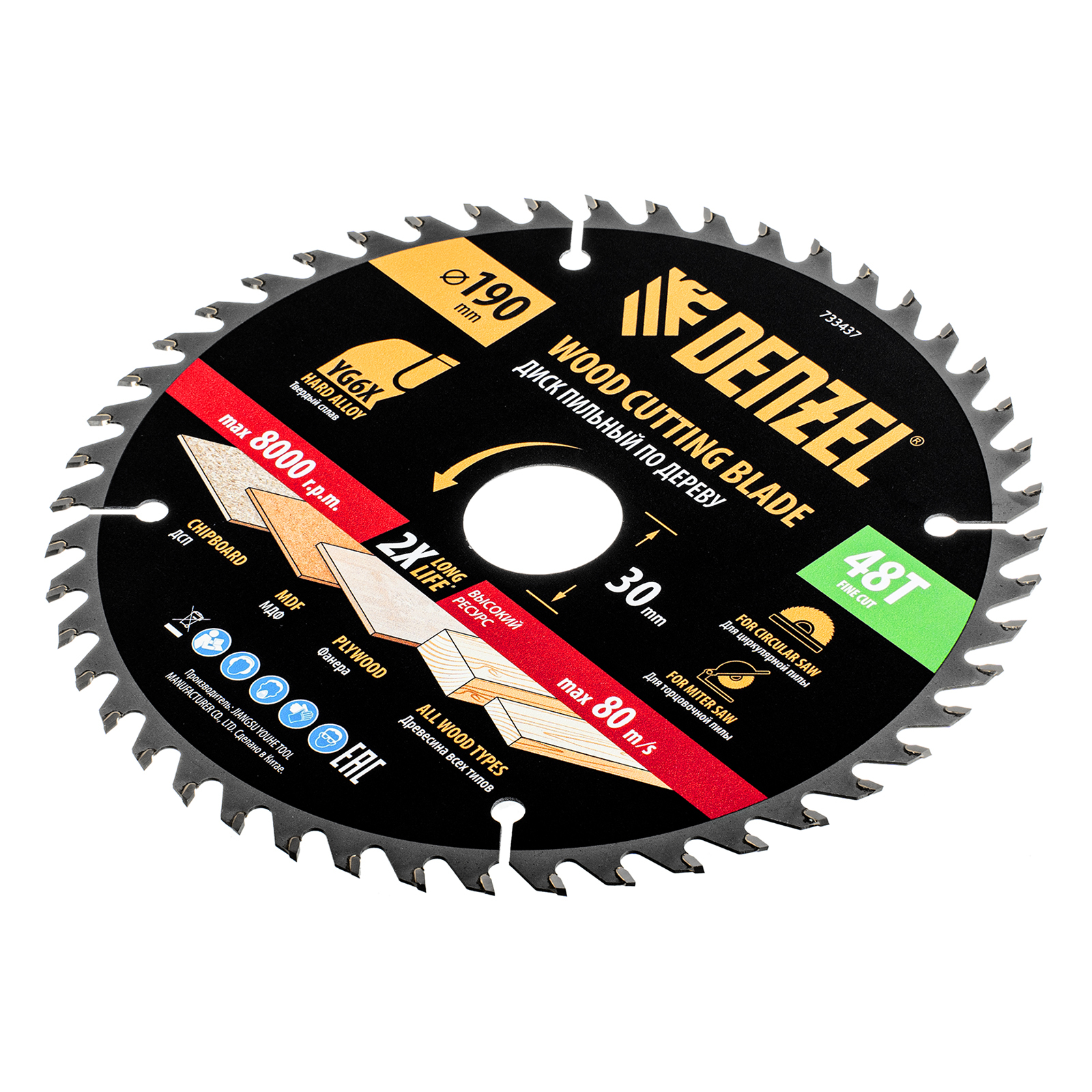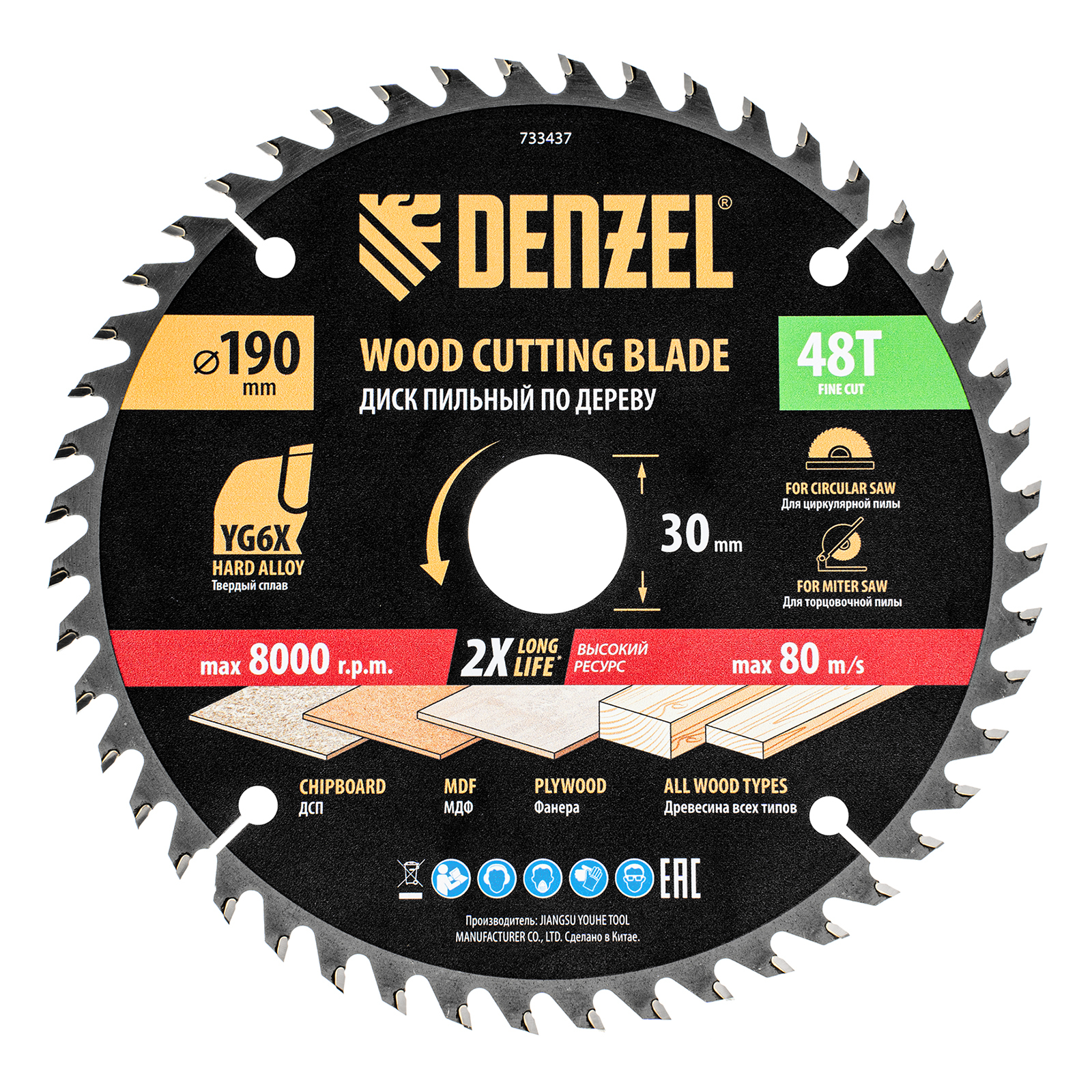 Пильный диск по дереву ф190 х 30 мм, 48 зубьев, тонкий Denzel