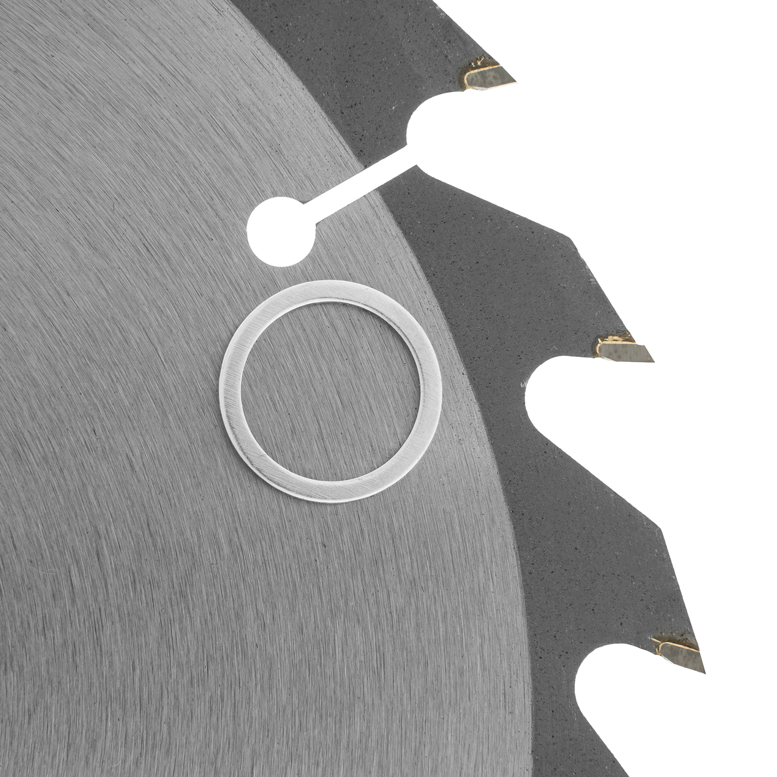 Пильный диск Denzel 733507 диаметром 216 x 20 мм, с 24 зубьями, предназначен для продольного и поперечного распила твердой и мягкой древесины, фанеры, МДФ, ДСП. 24 зуба типа ATB с режущими пластинами оптимальной геометрии обеспечивают быстрый рез. Режущие пластины из твердого сплава YG6X сохраняют рабочие свойства при интенсивном использовании. Диск устанавливается на циркулярную, торцовочную пилу или на распиловочный станок. В комплект поставки входит переходное кольцо с 20 на 16 мм, что позволяет изменить посадочный размер и расширяет возможности использования диска.