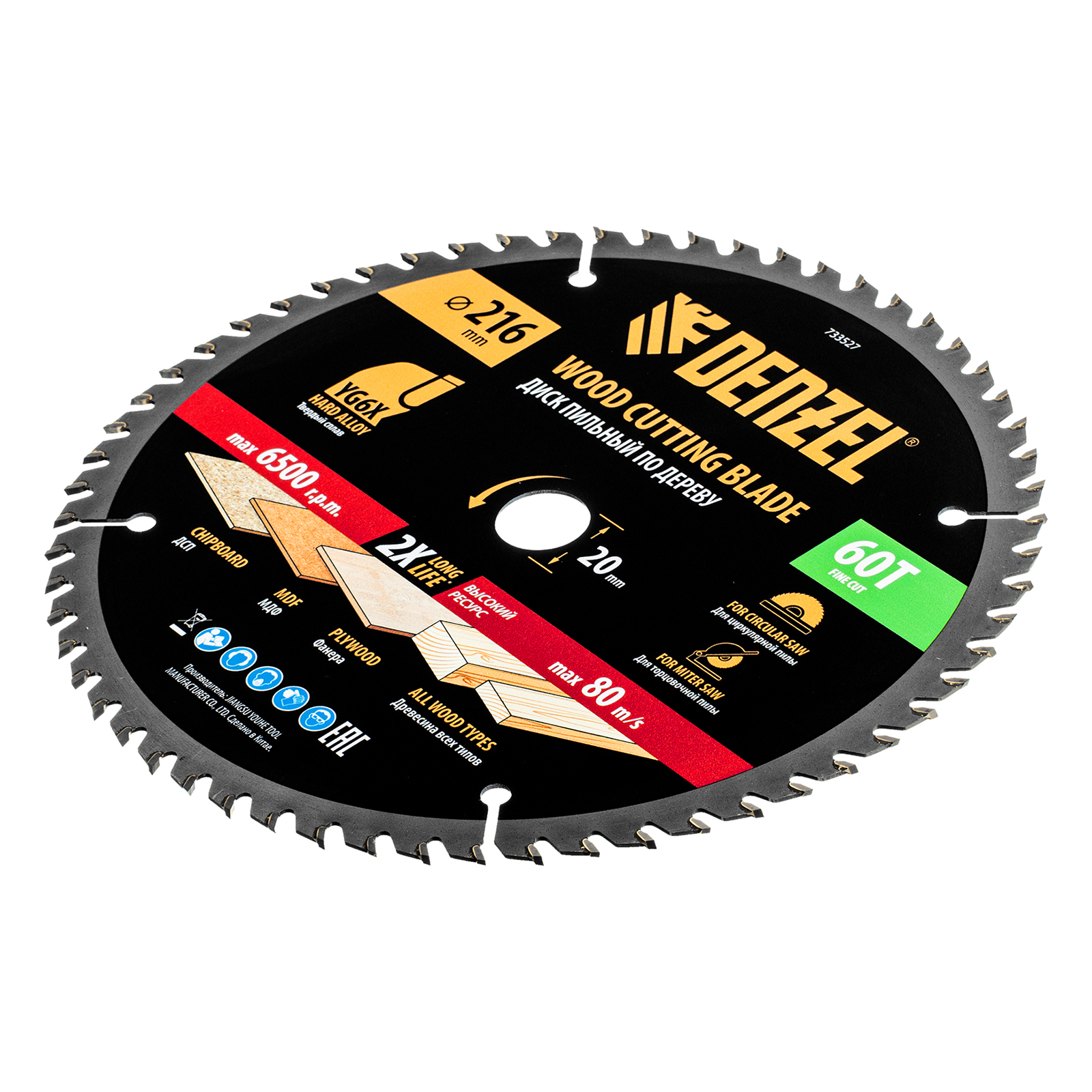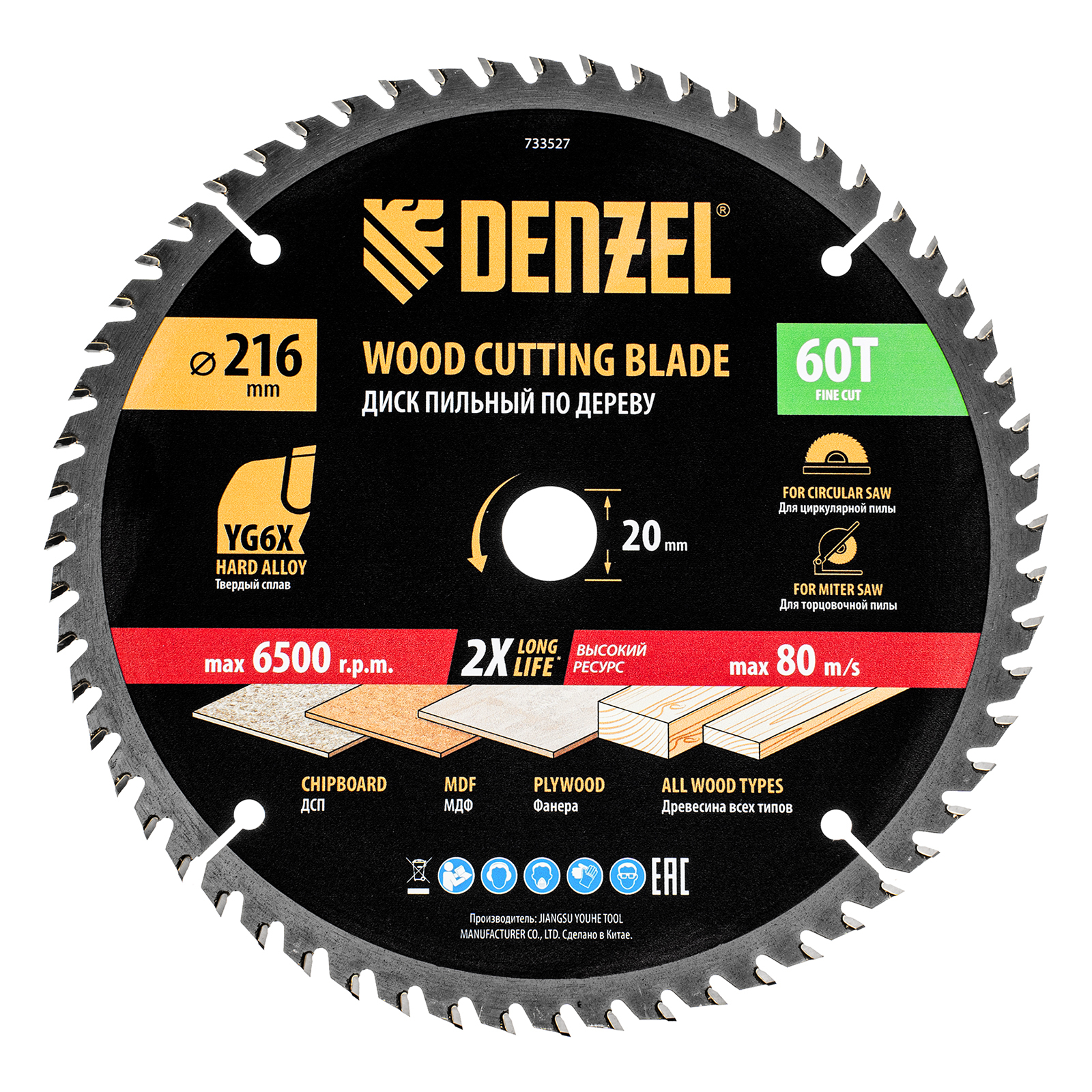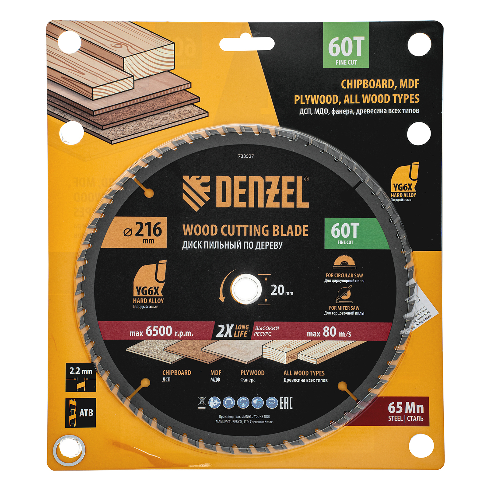 Пильный диск по дереву ф216 х 20 мм, 60 зубьев Denzel