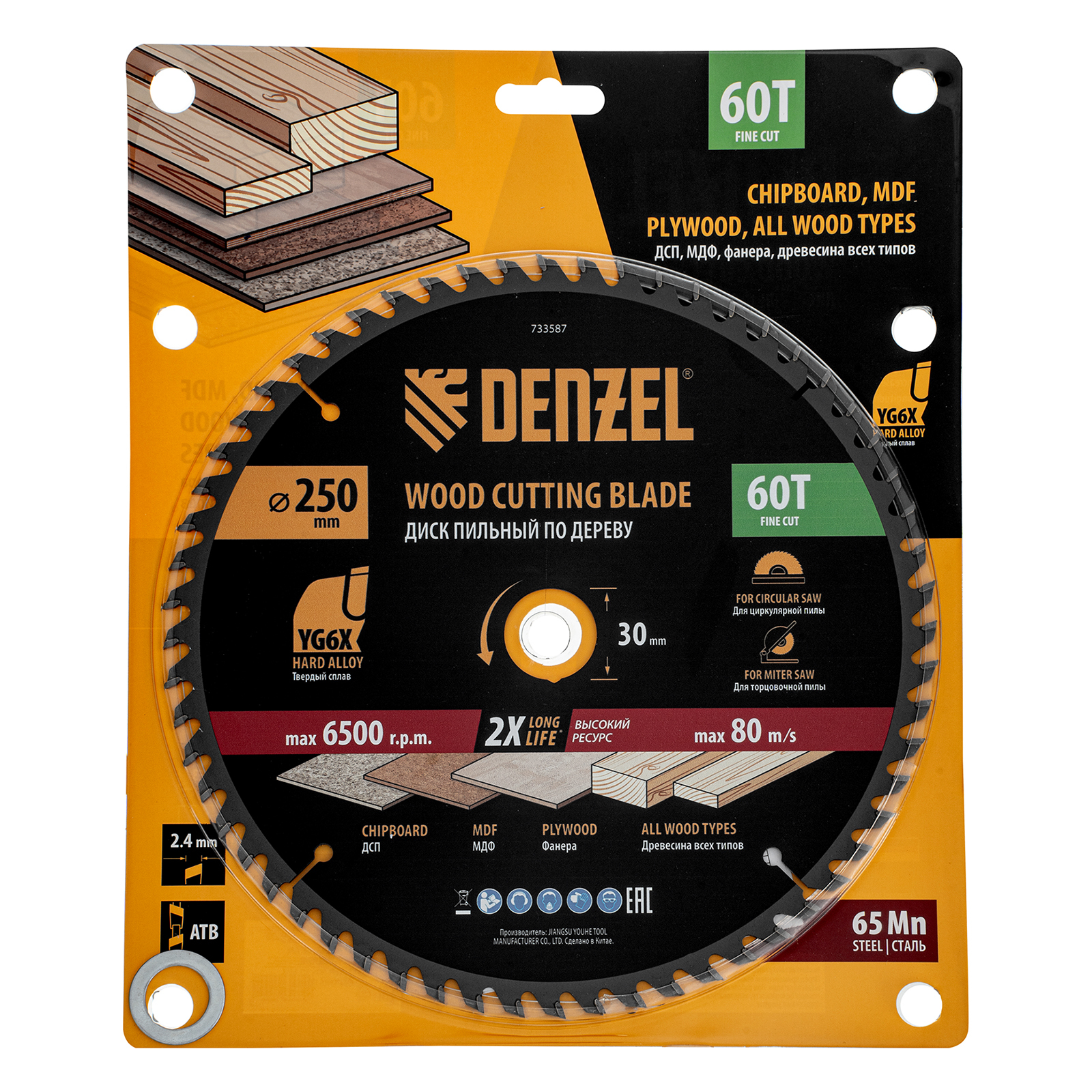 Пильный диск по дереву ф250 х 30 мм, 60 зубьев Denzel