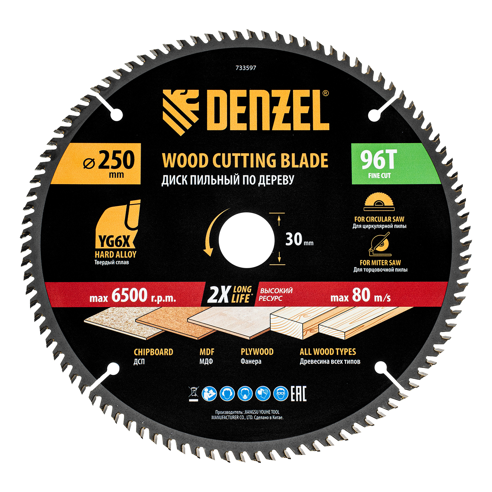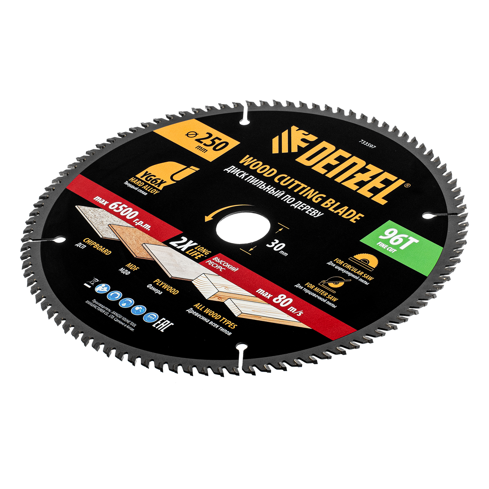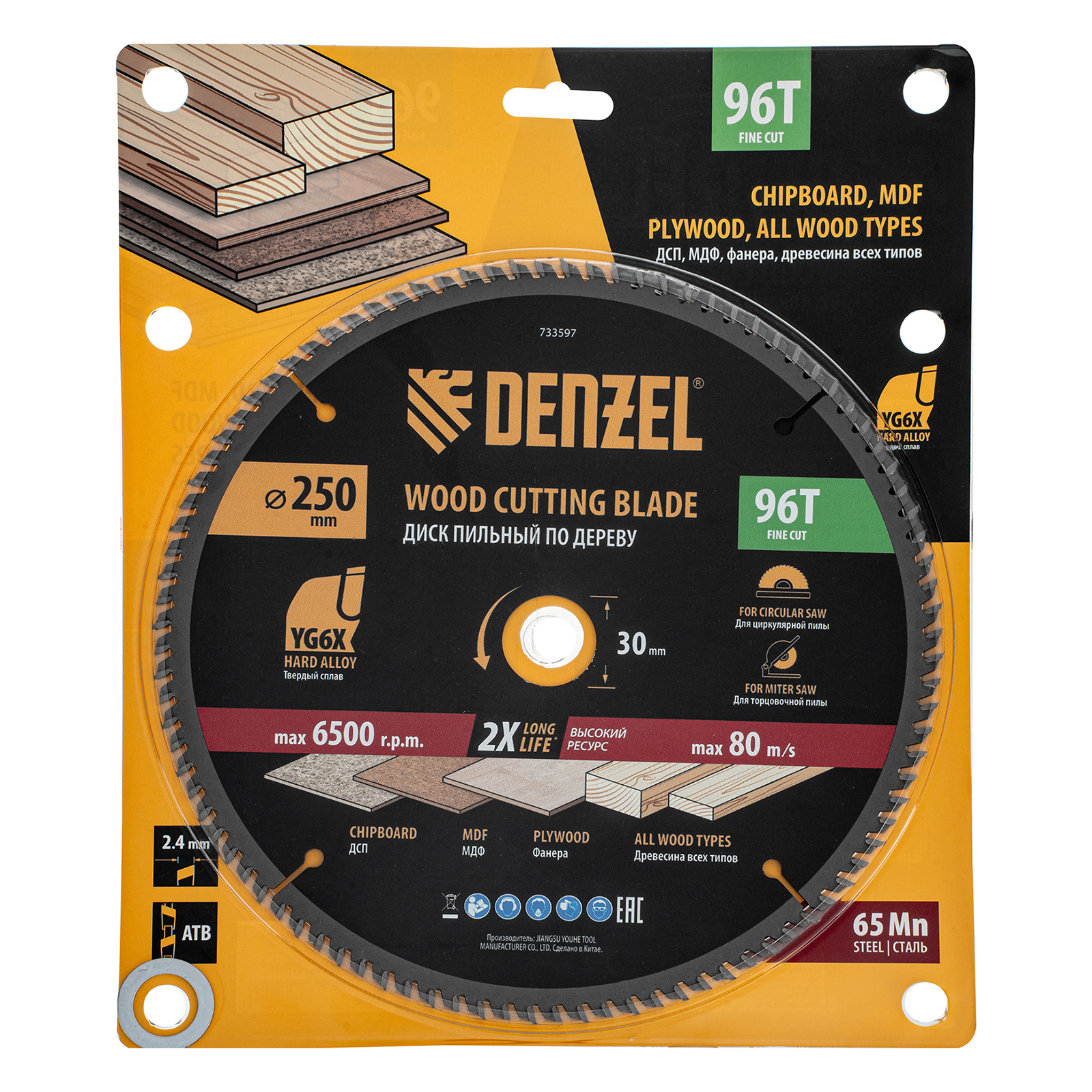 Пильный диск по дереву ф250 х 30 мм, 96 зубьев Denzel