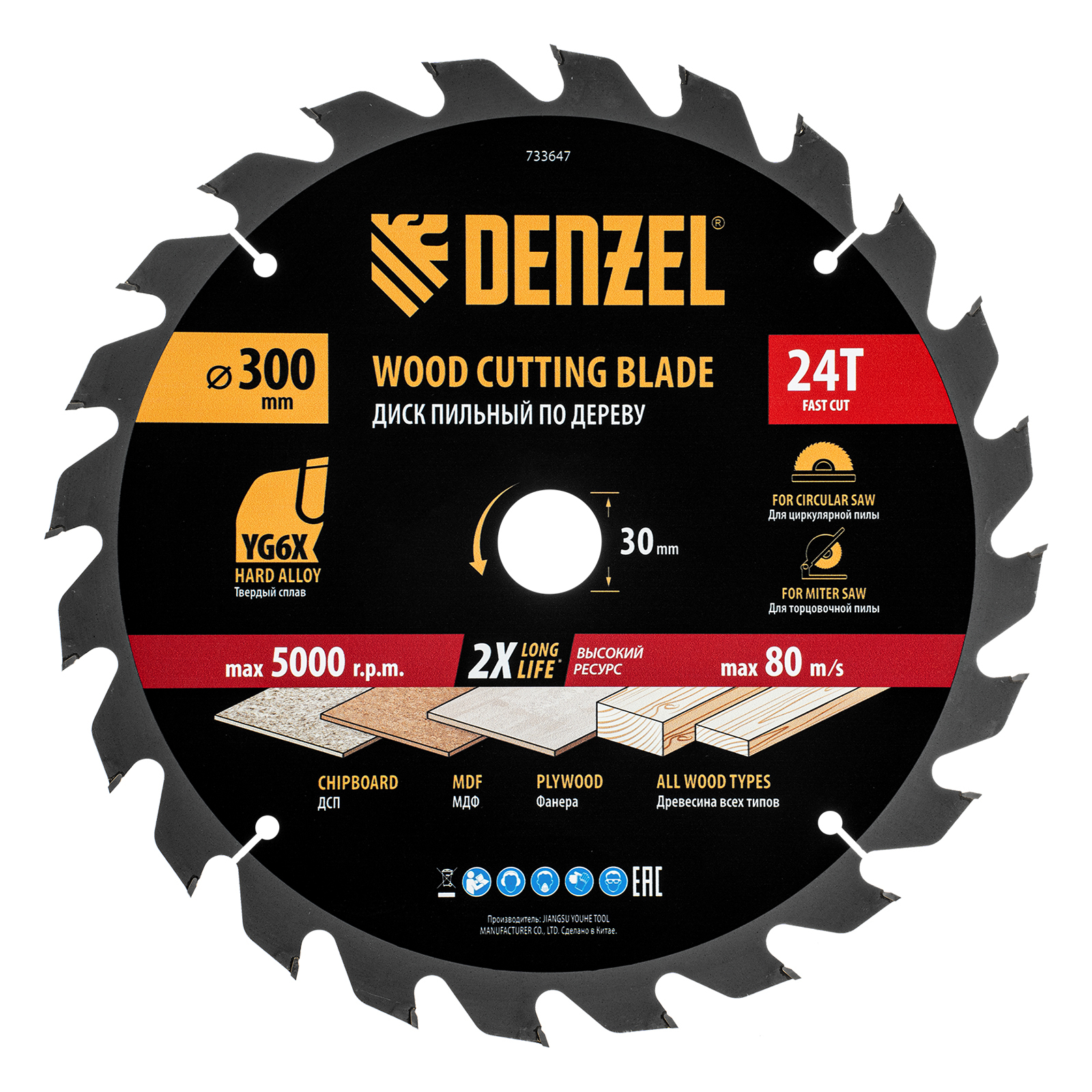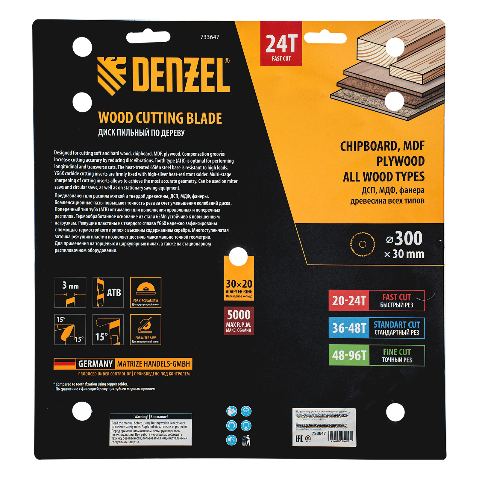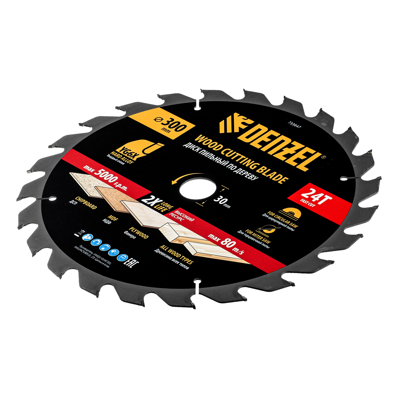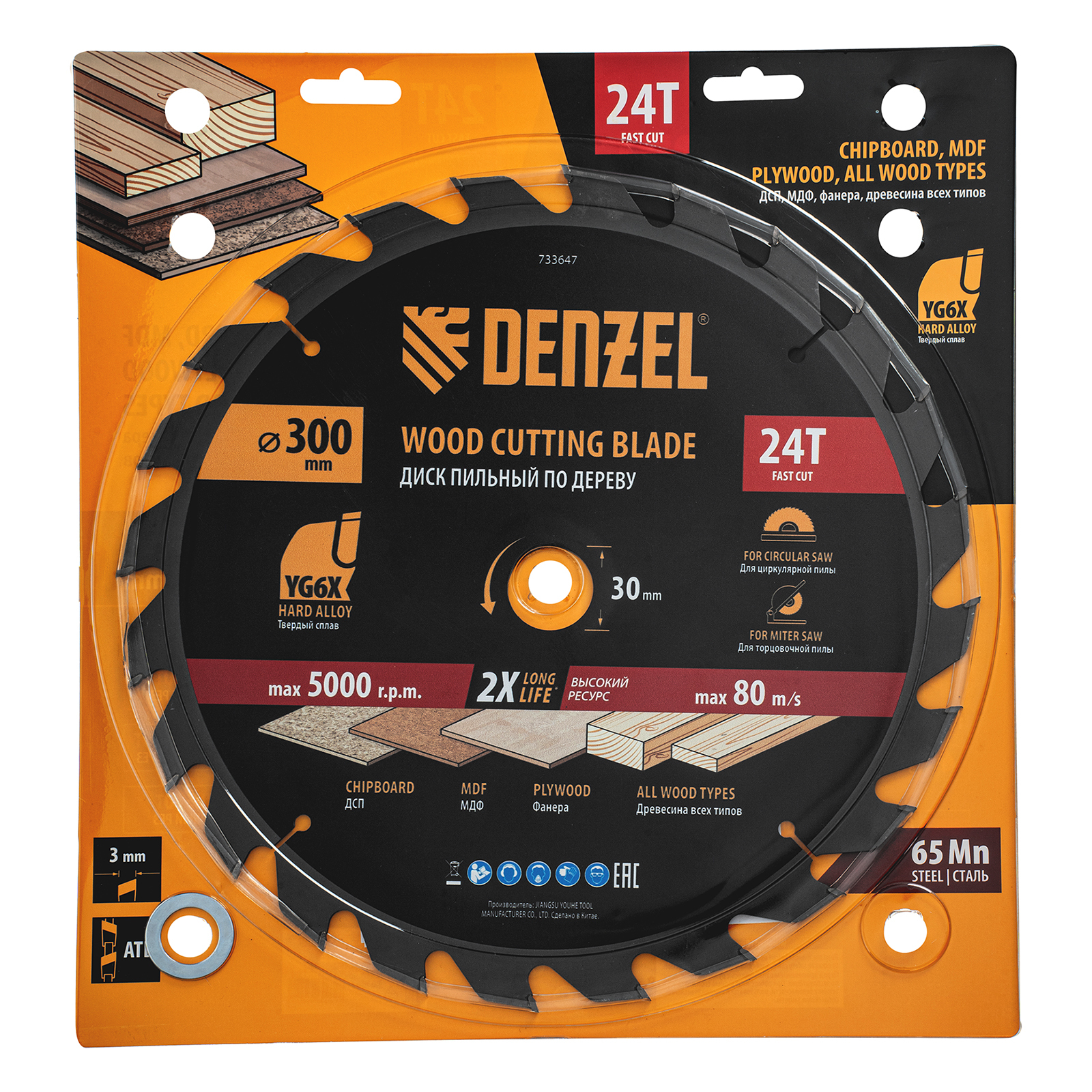 Пильный диск по дереву ф300 х 30 мм, 24 зубьев Denzel