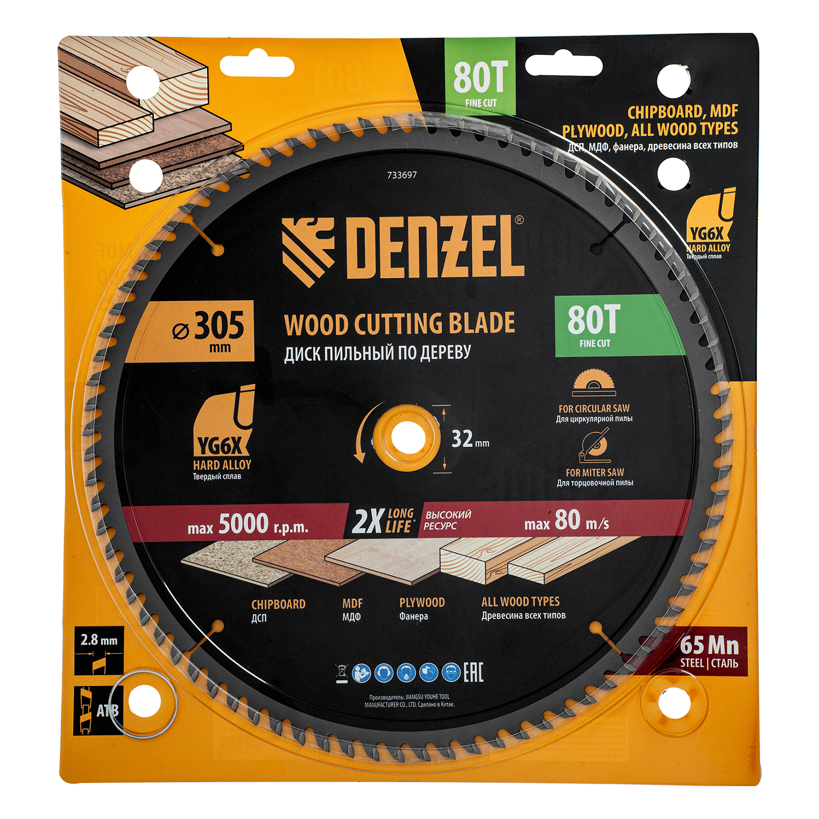 Пильный диск по дереву ф305 х 32 мм, 80 зубьев Denzel