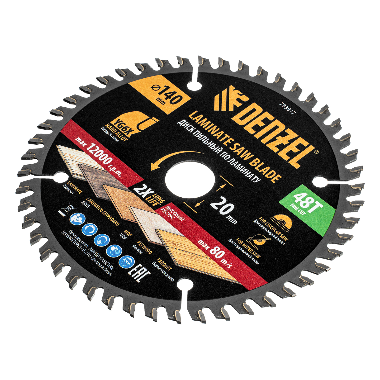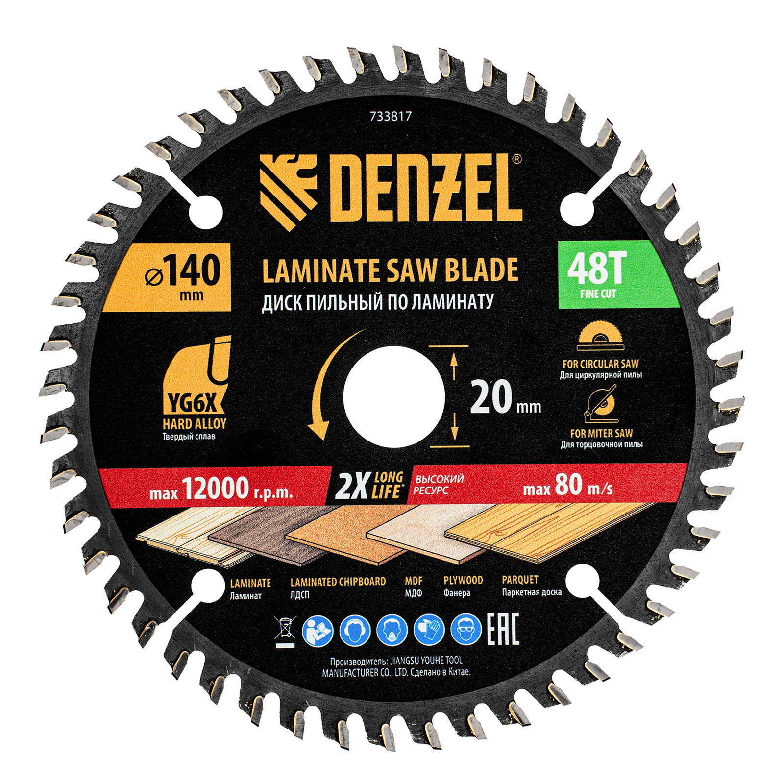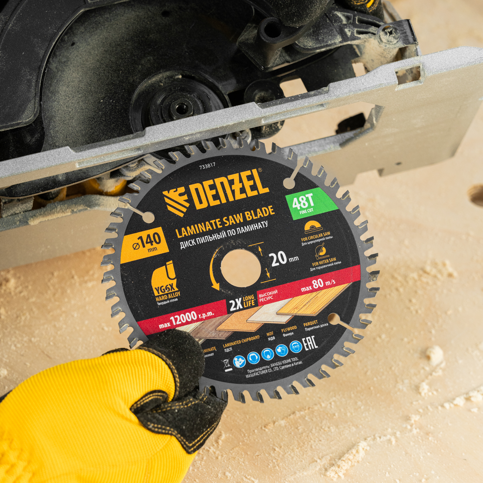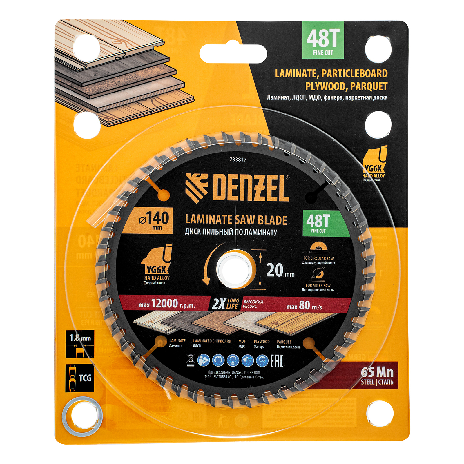 Пильный диск по ламинату ф140 х 20 мм, 48 зубьев Denzel