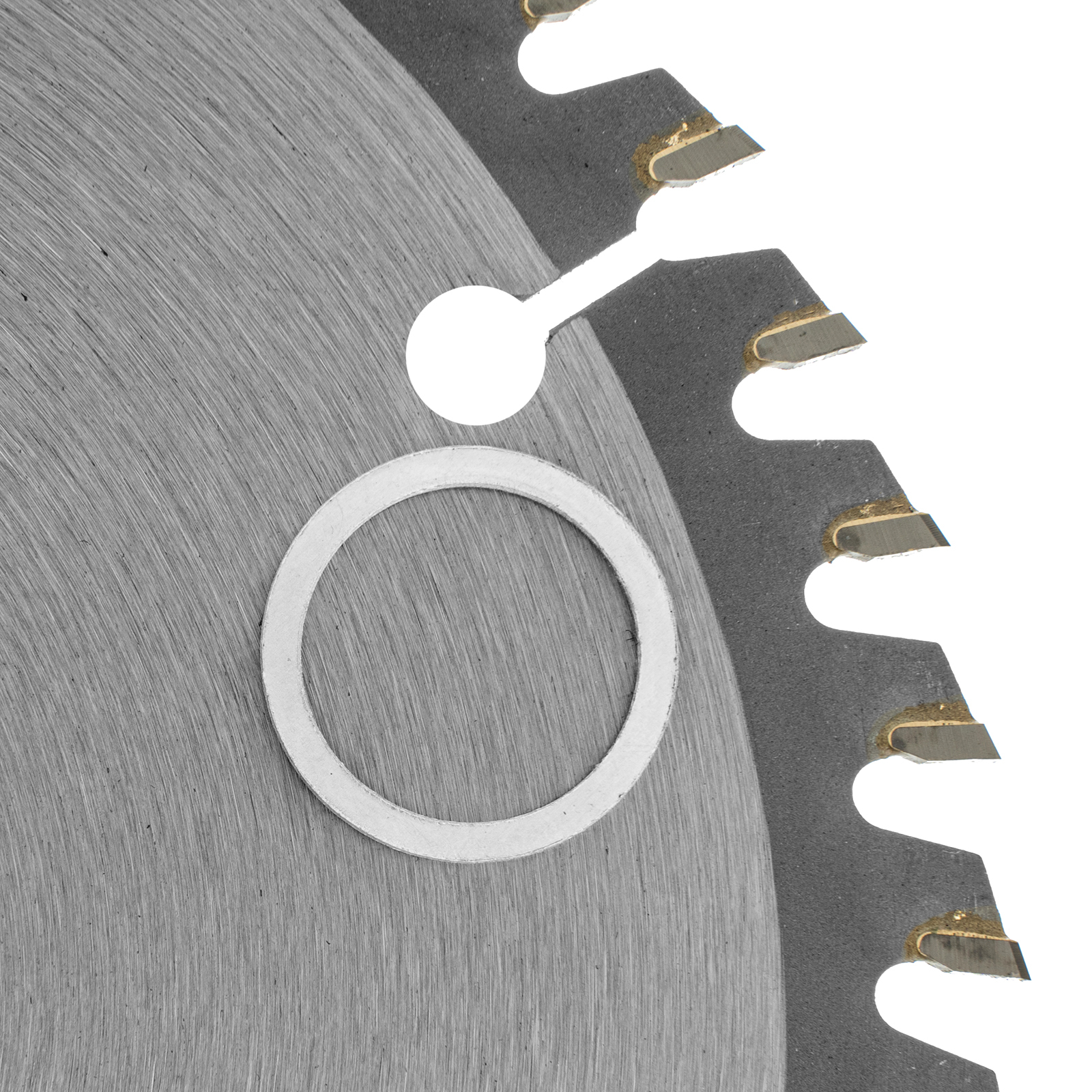 Пильный диск Denzel 733827 диаметром 160 x 20 мм, с 48 зубьями, используется для распиливания ламината, ЛДСП, МДФ, фанеры, паркетной доски. 48 трапециевидно-плоских зубьев с положительным углом заточки позволяют эффективно решать поставленные задачи, обеспечивая чистый рез. Тип реза — стандартный. Диск устанавливается на циркулярную или торцовочную пилу, а также на распиловочный станок. Можно установить оснастку на инструмент с другим посадочным диаметром — для этого предусмотрено переходное кольцо 20/16 мм.