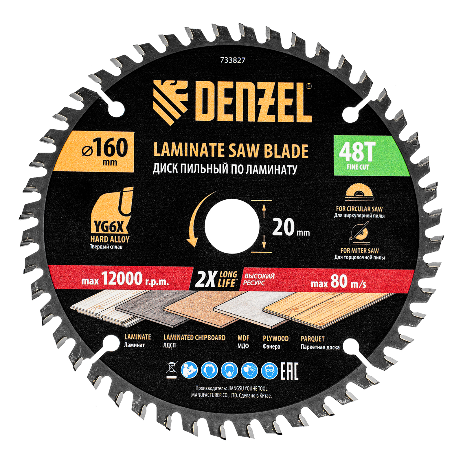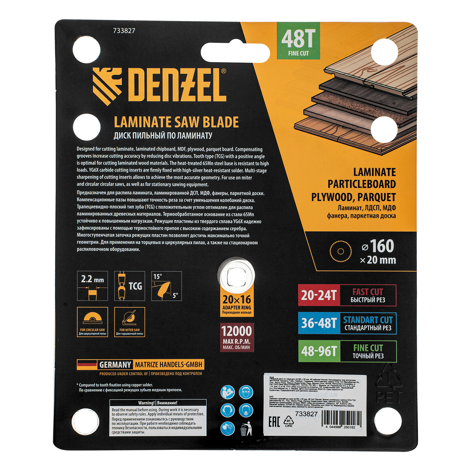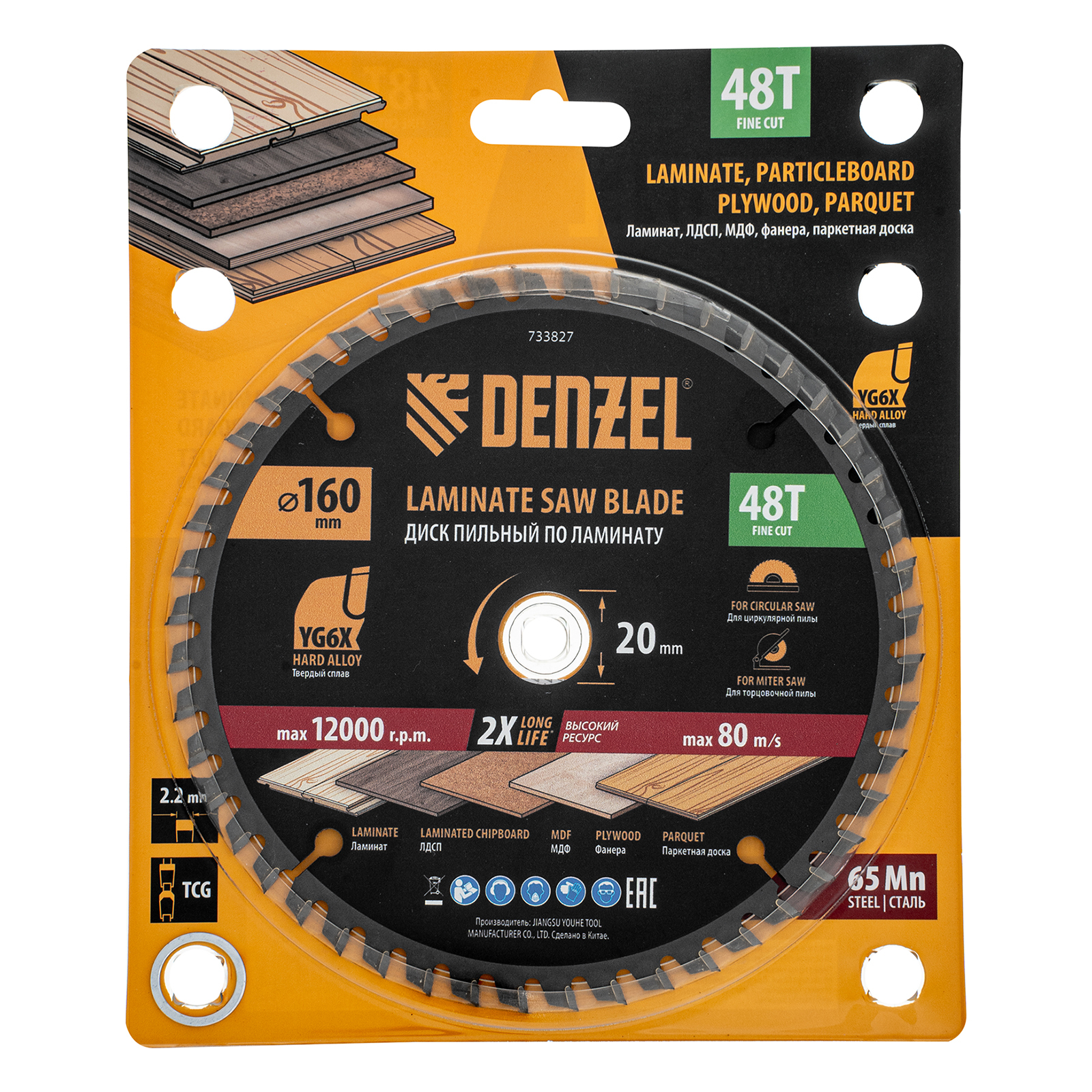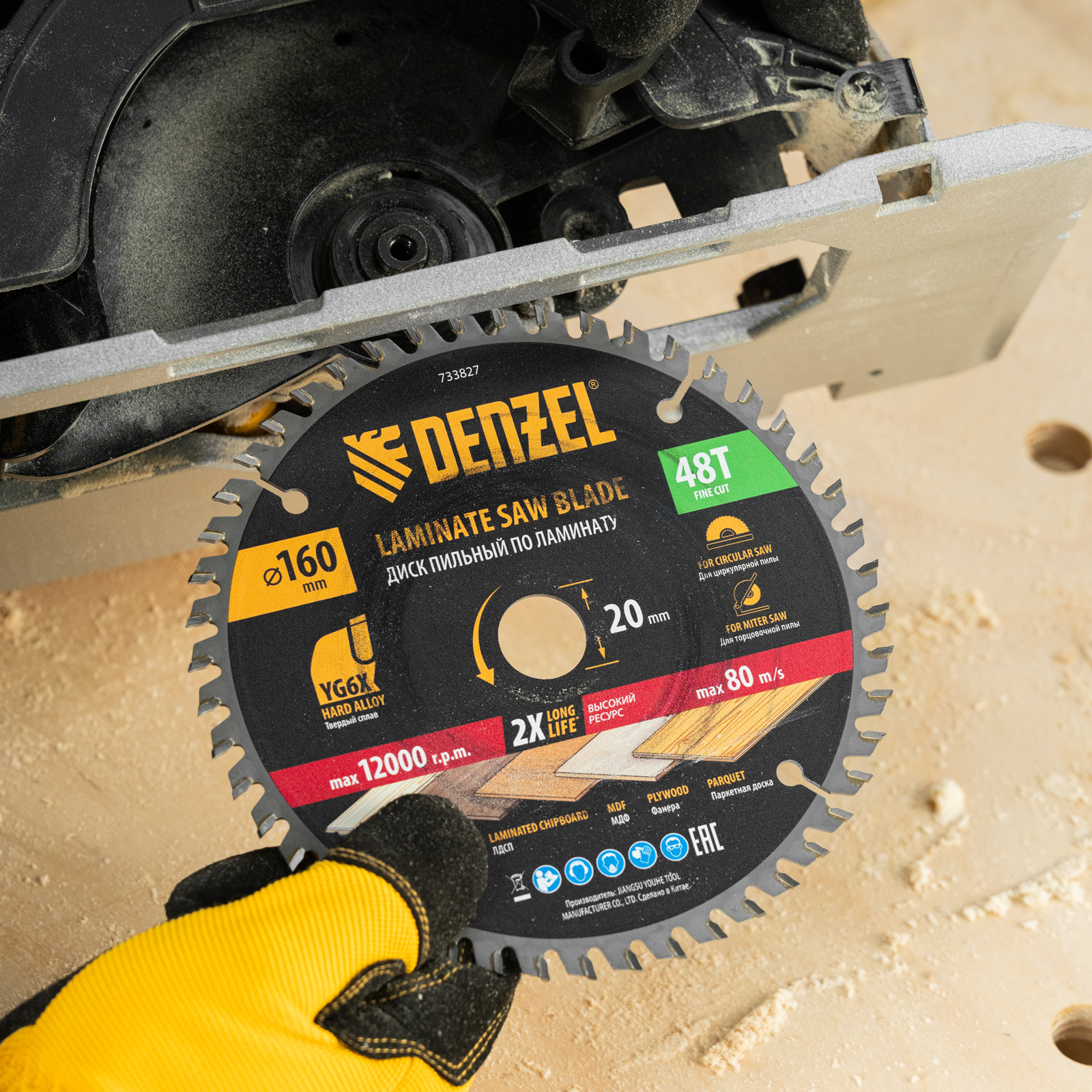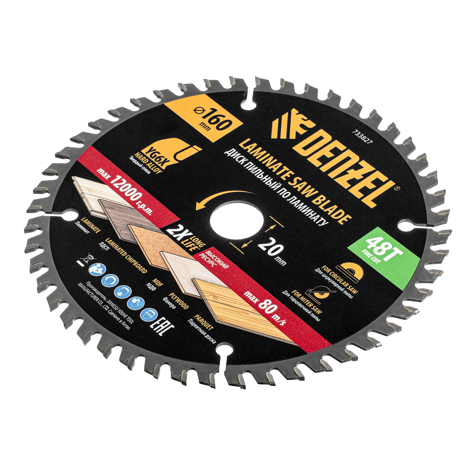 Пильный диск по ламинату ф160 х 20 мм, 48 зубьев Denzel