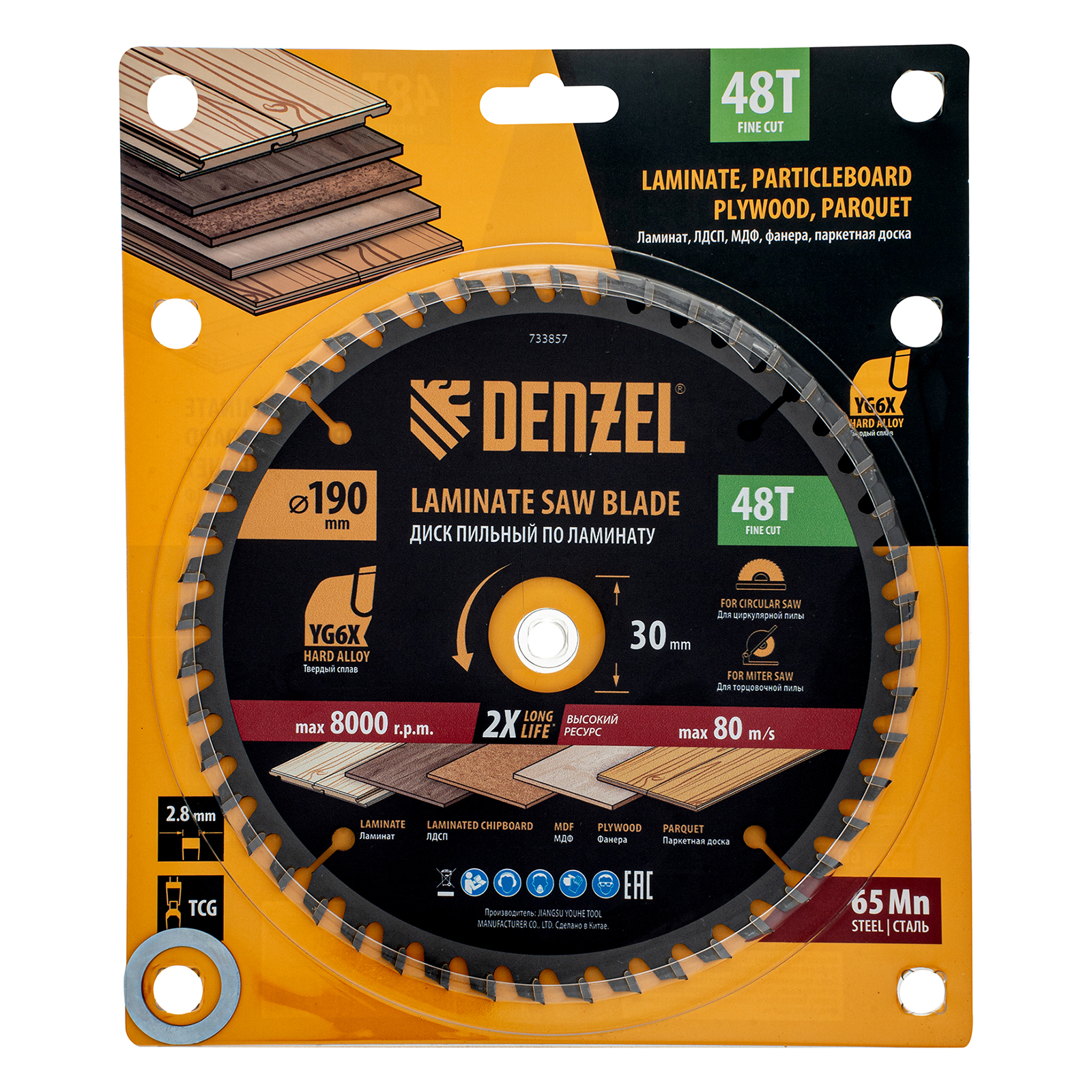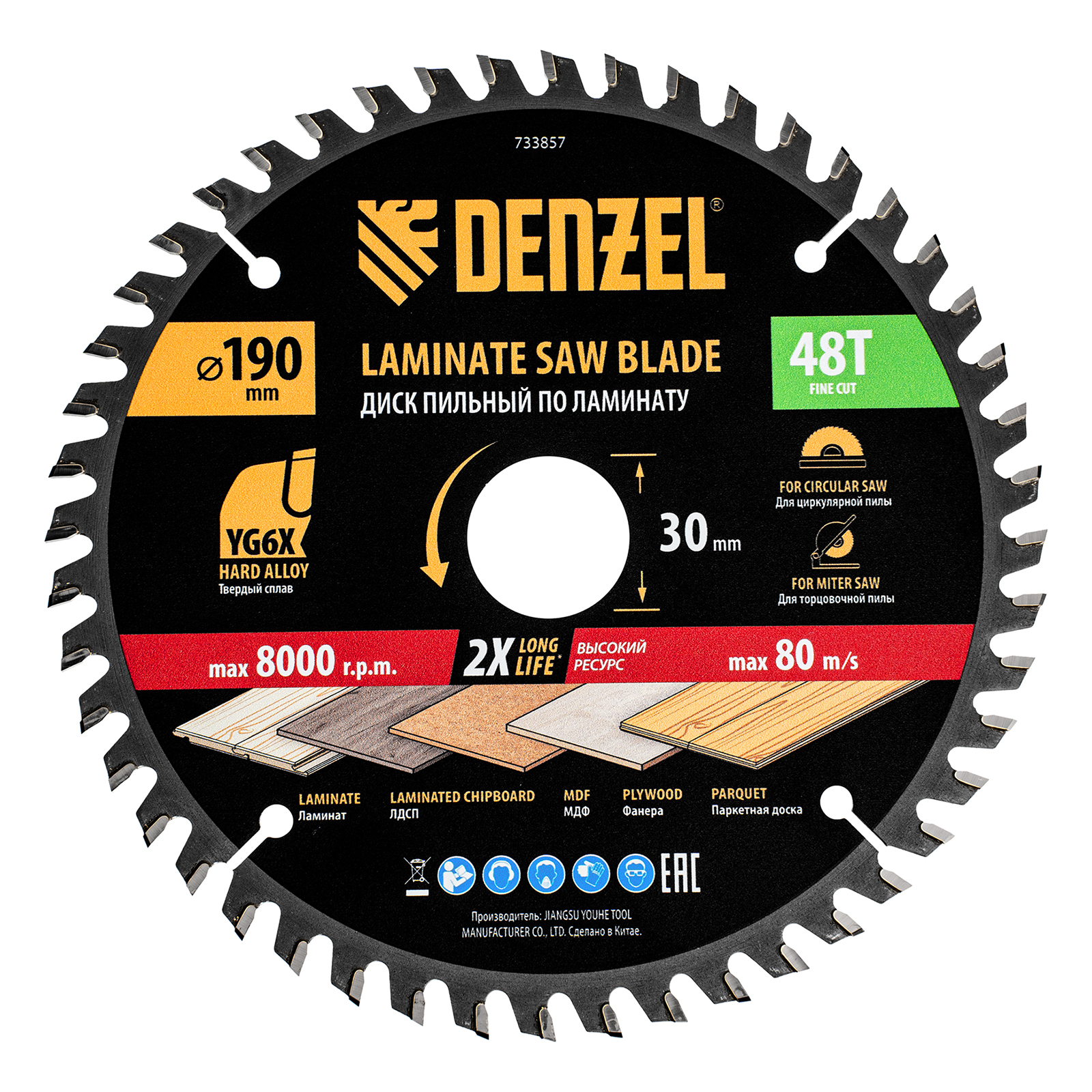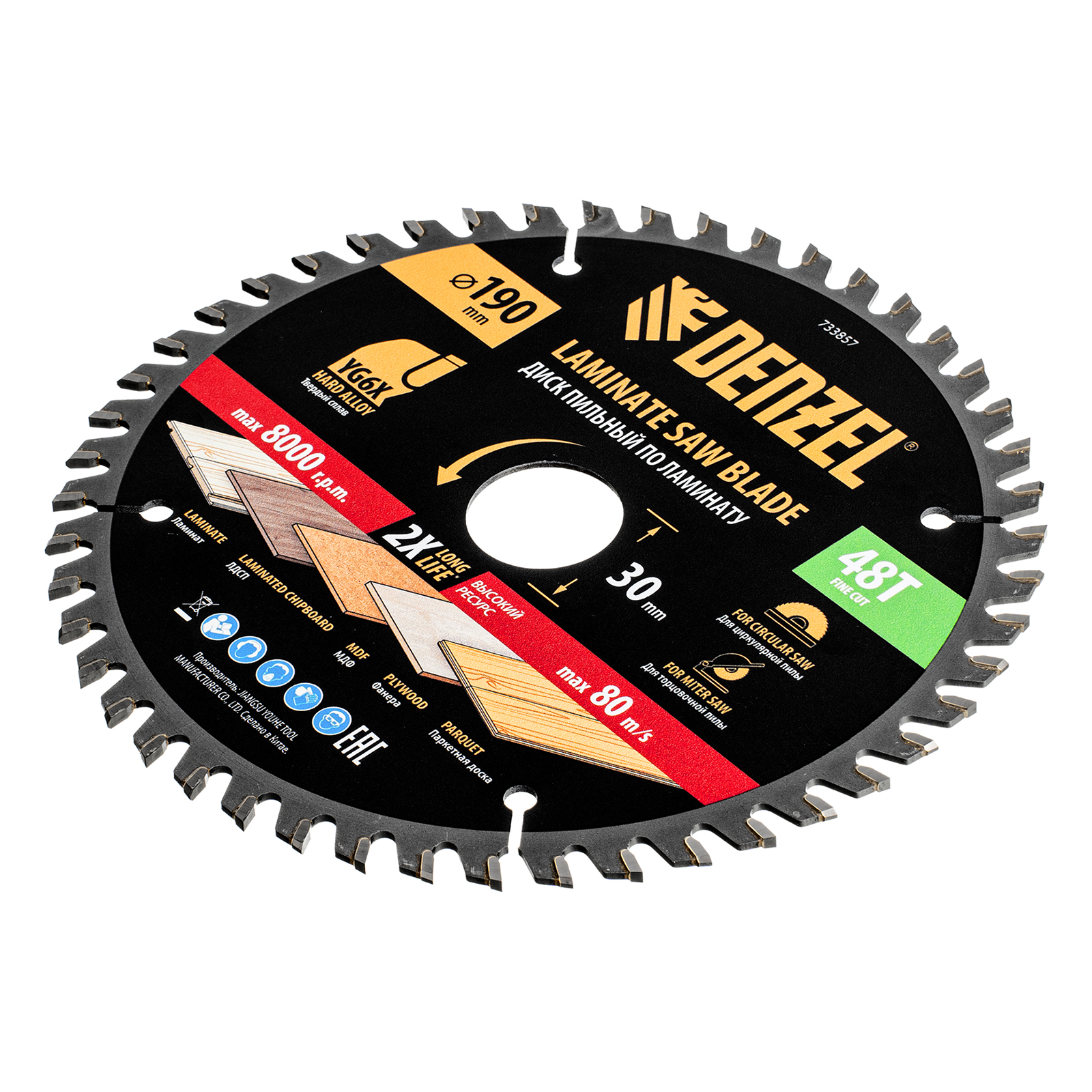 Пильный диск по ламинату ф190 х 30 мм, 48 зубьев Denzel