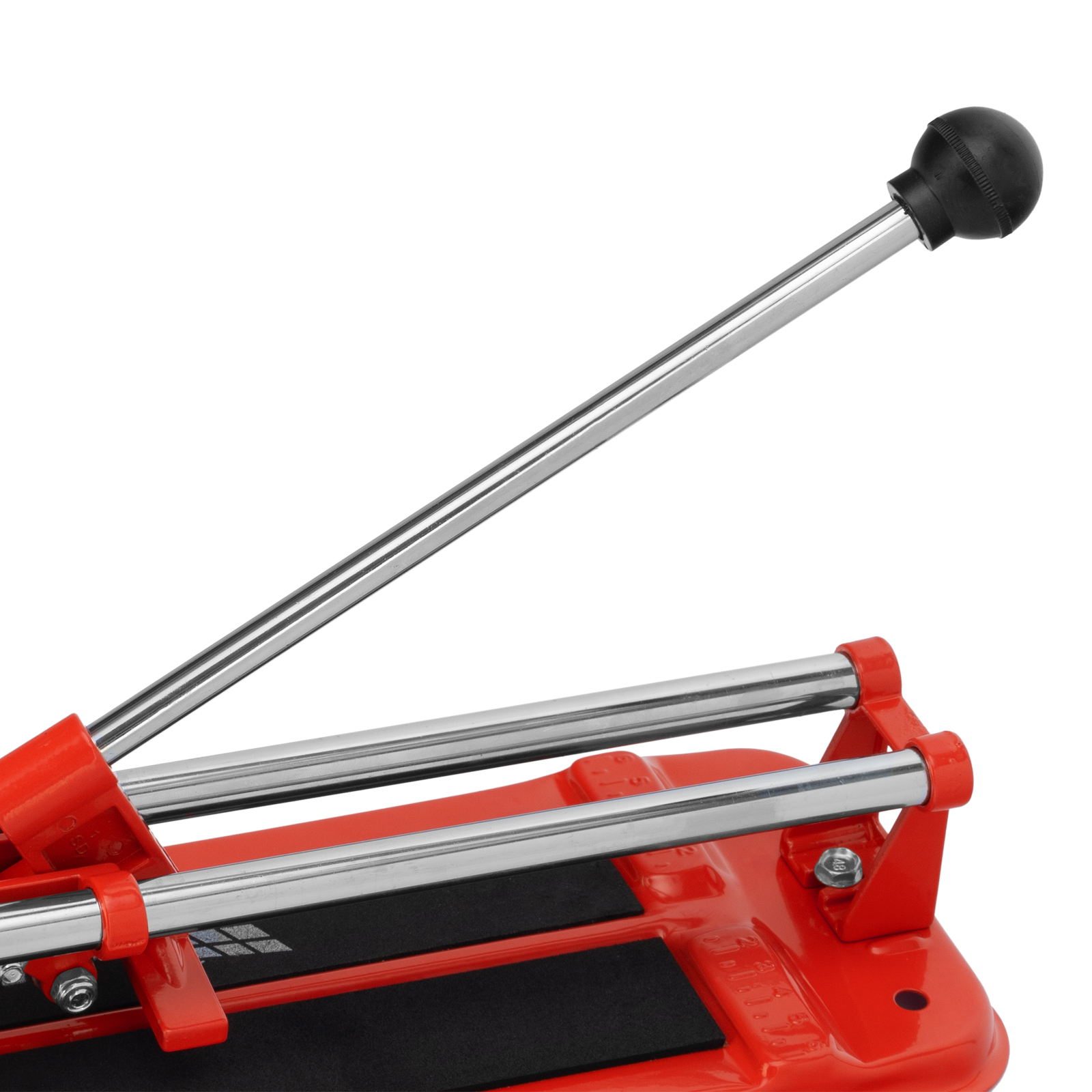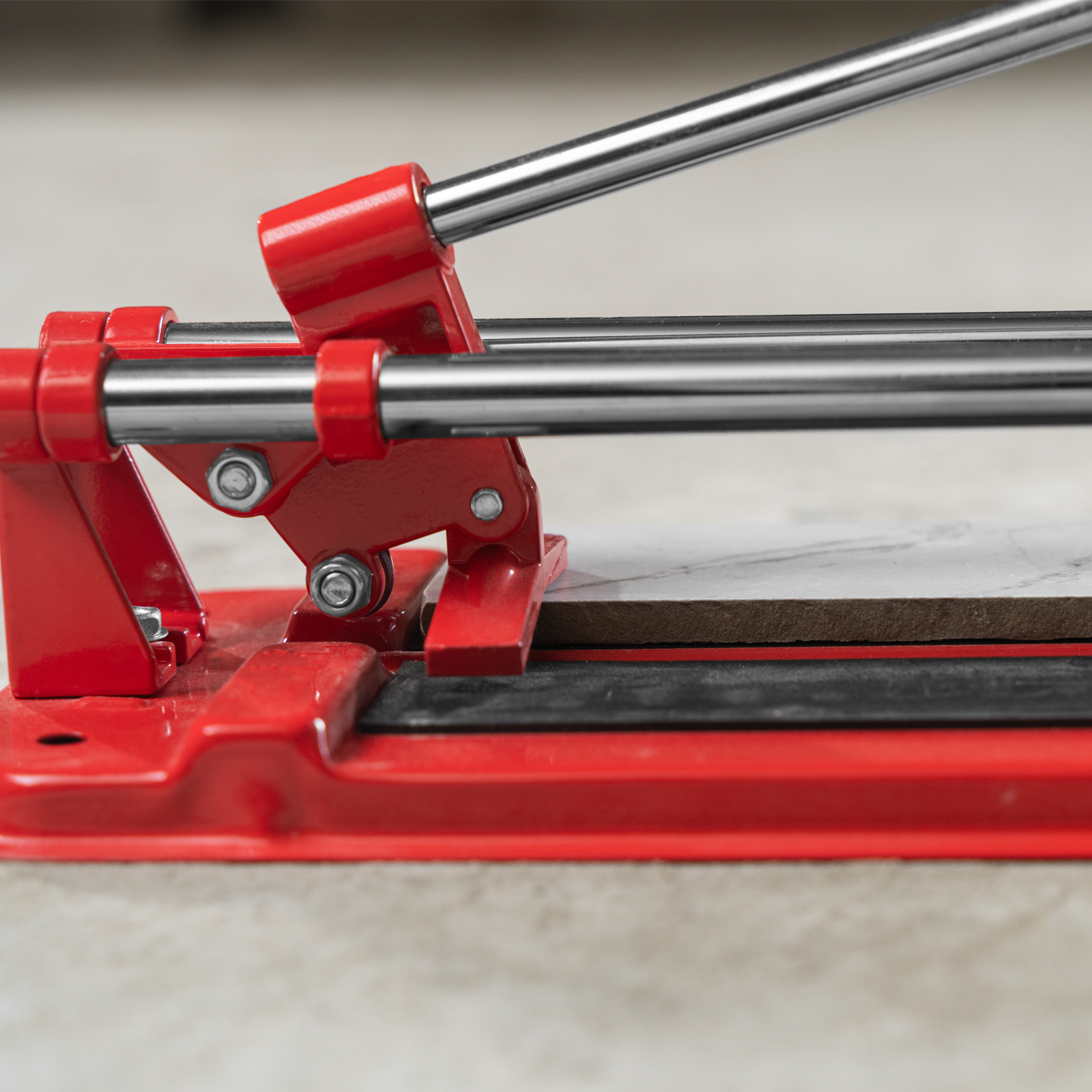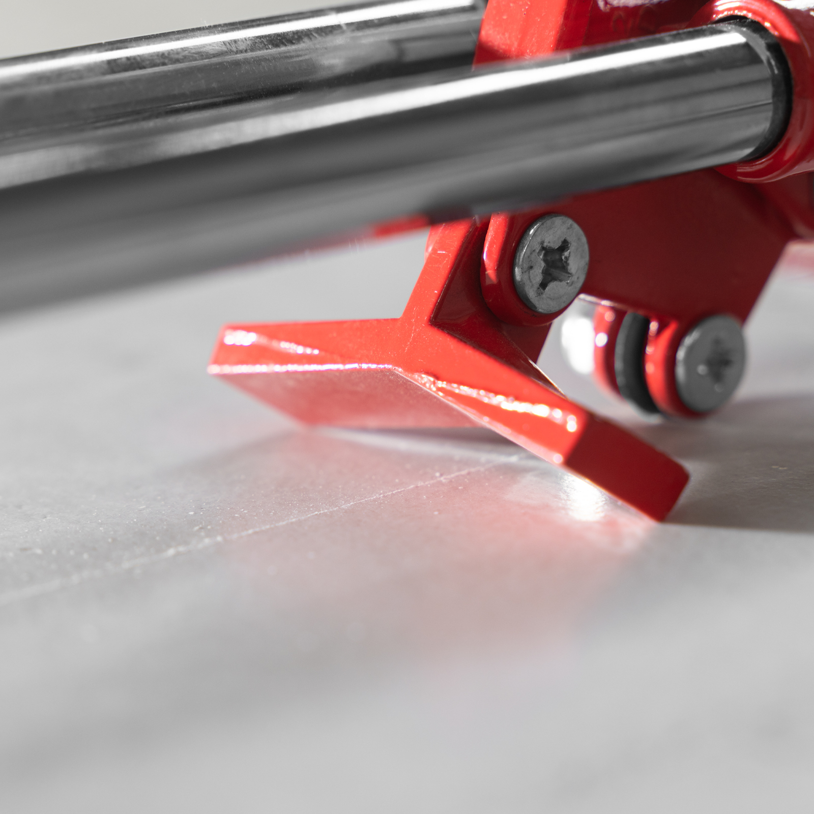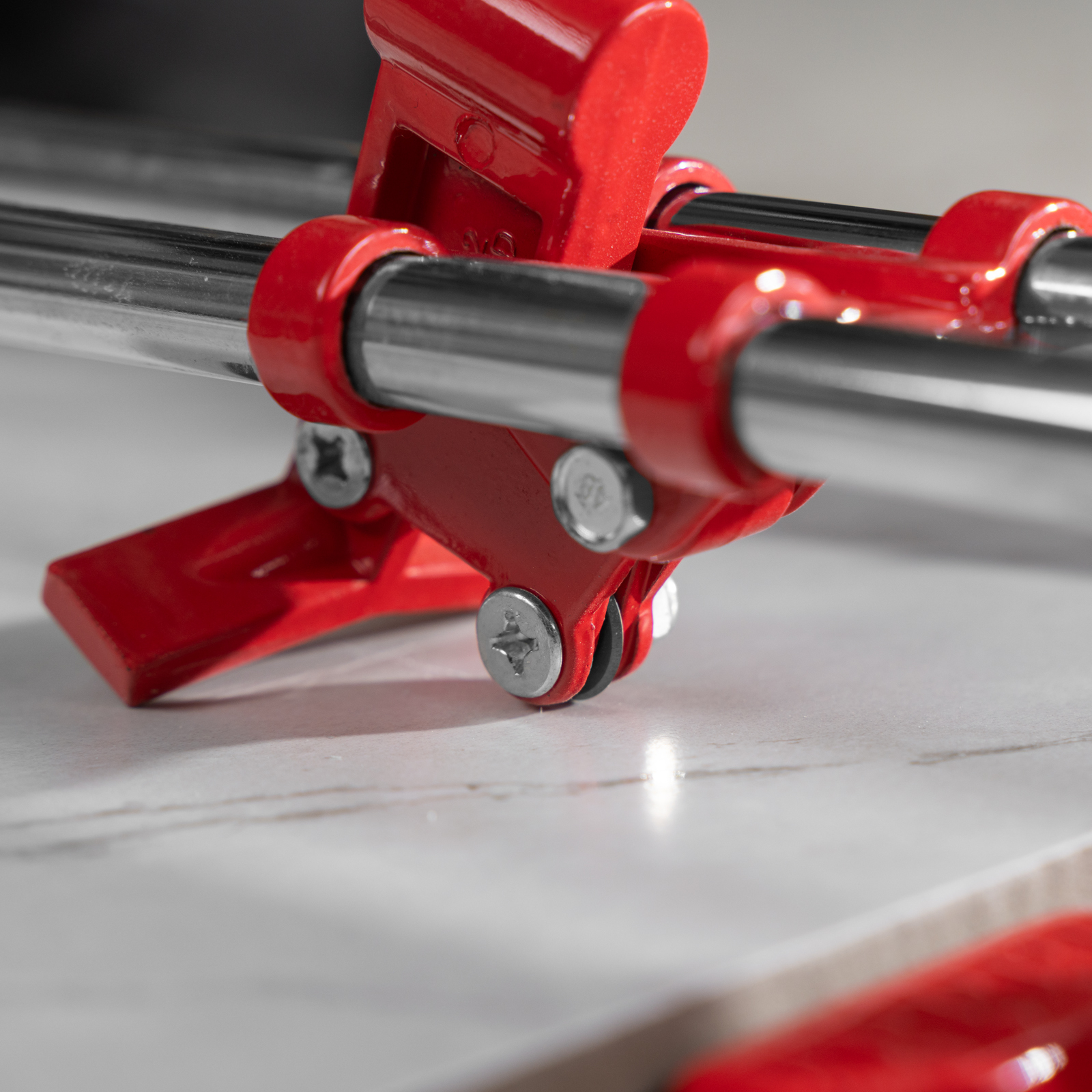 - Высокое качество работы — стальное основание обеспечивает устойчивость плиткореза, мягкие амортизирующие накладки предотвращают смещение плитки.
