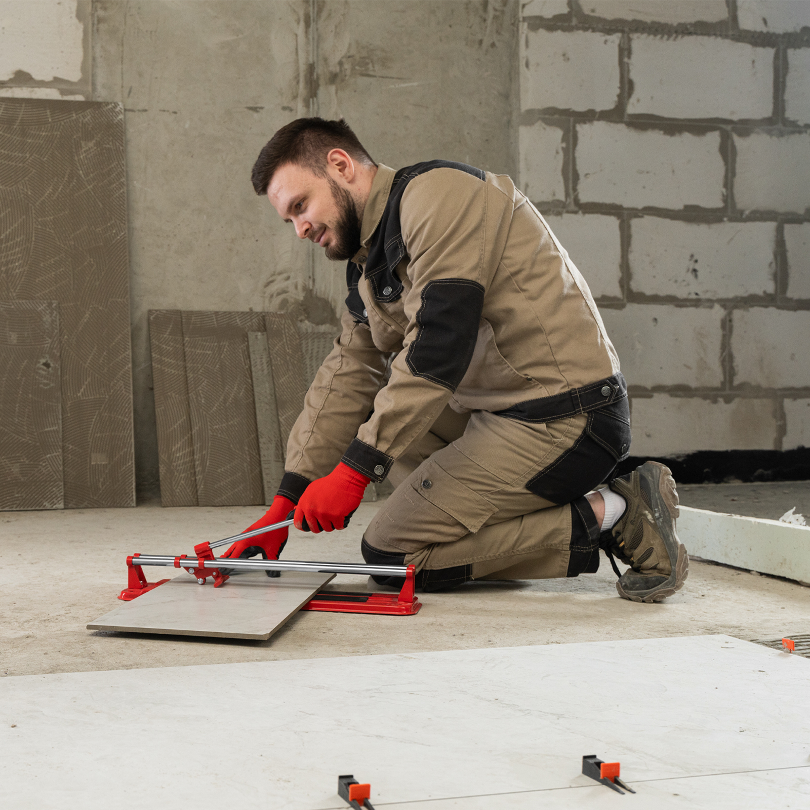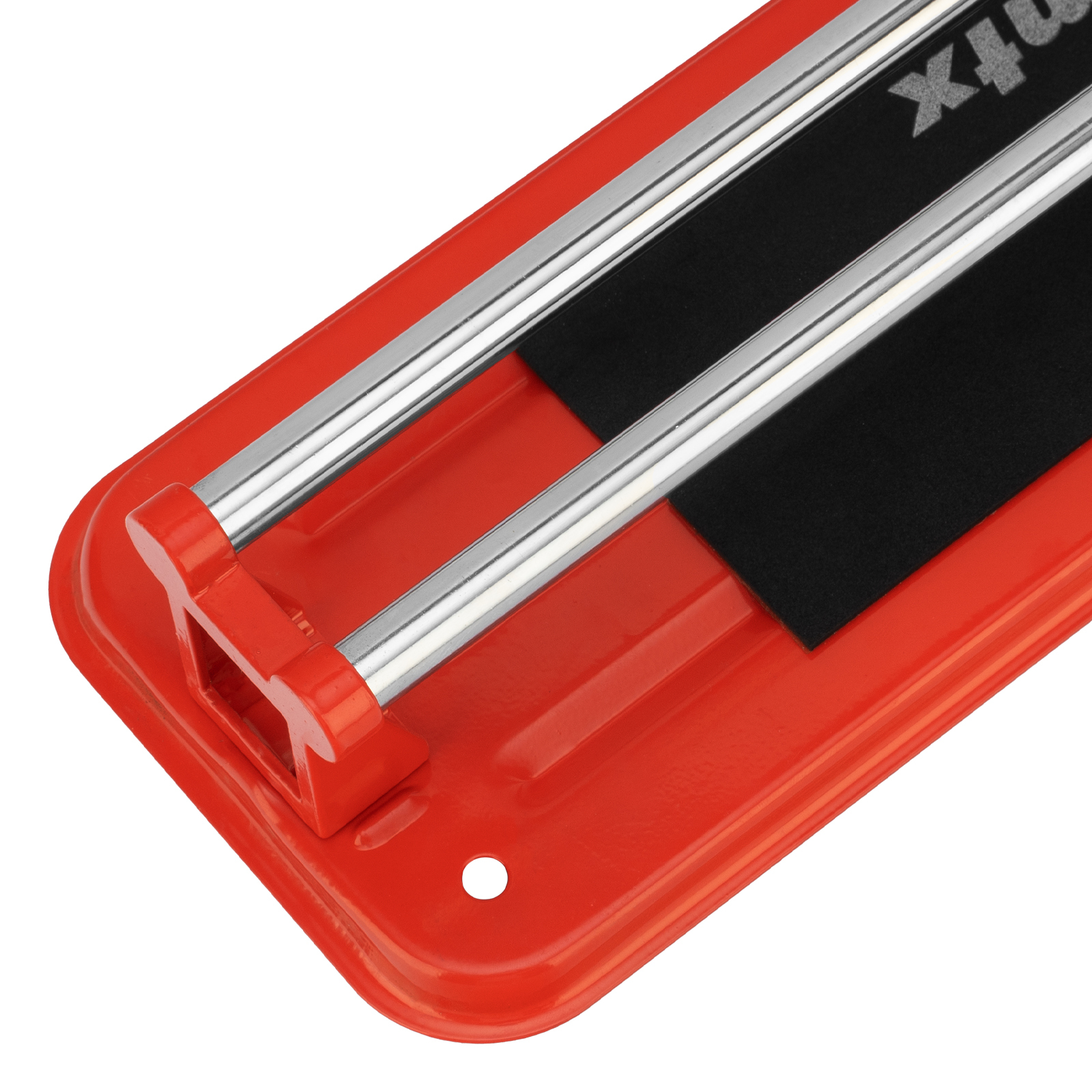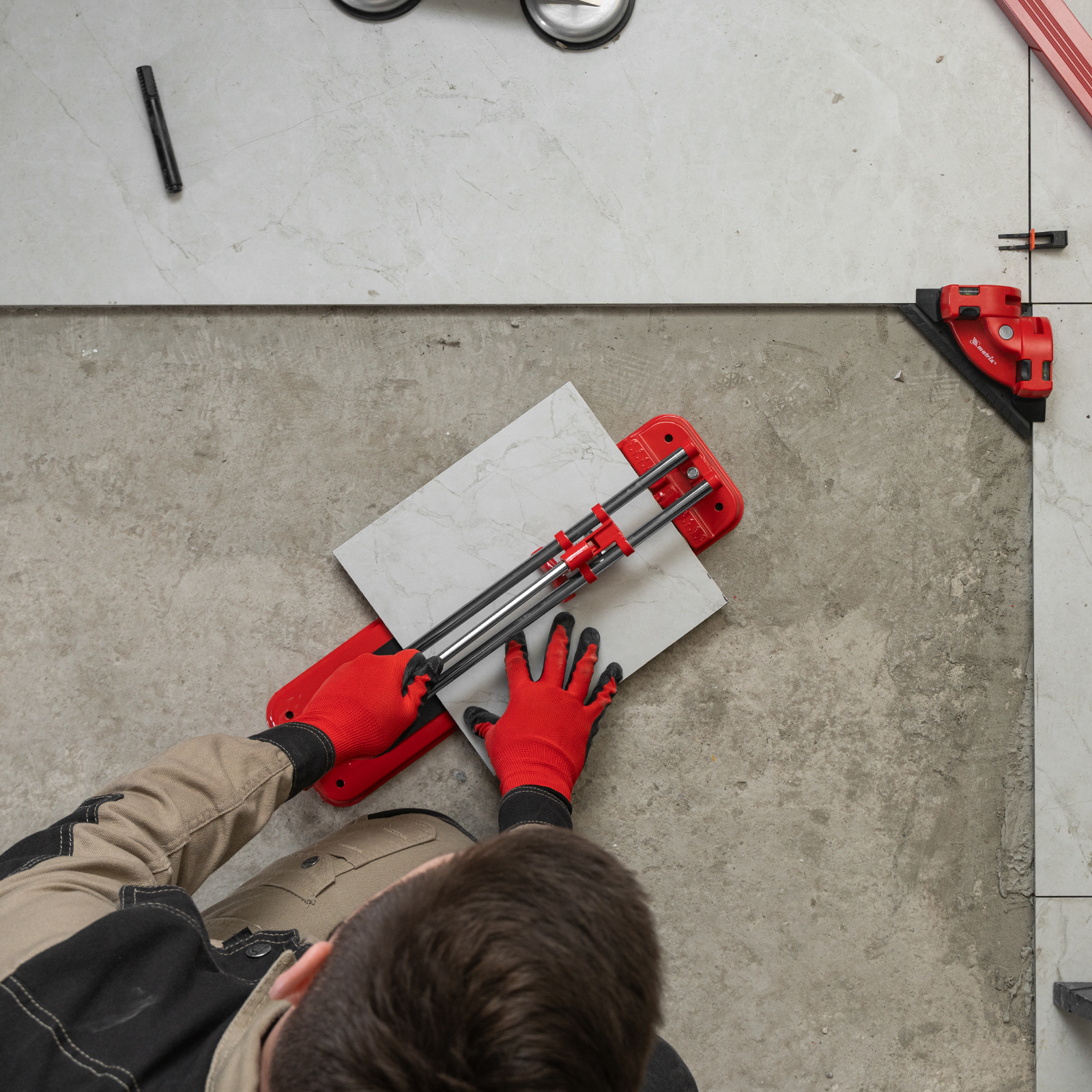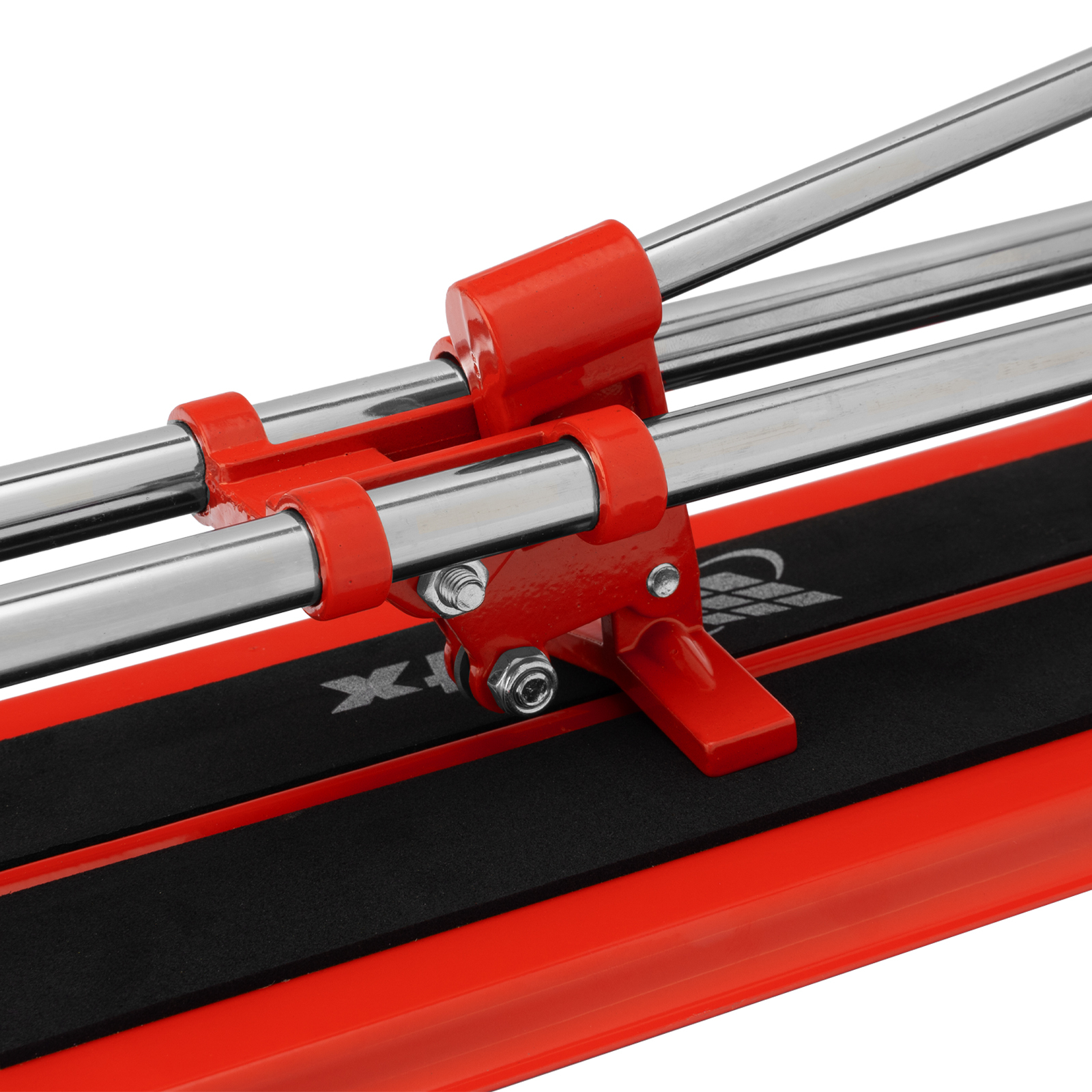 - Высокое качество работы — стальное основание обеспечивает устойчивость плиткореза, мягкие амортизирующие накладки предотвращают смещение плитки.