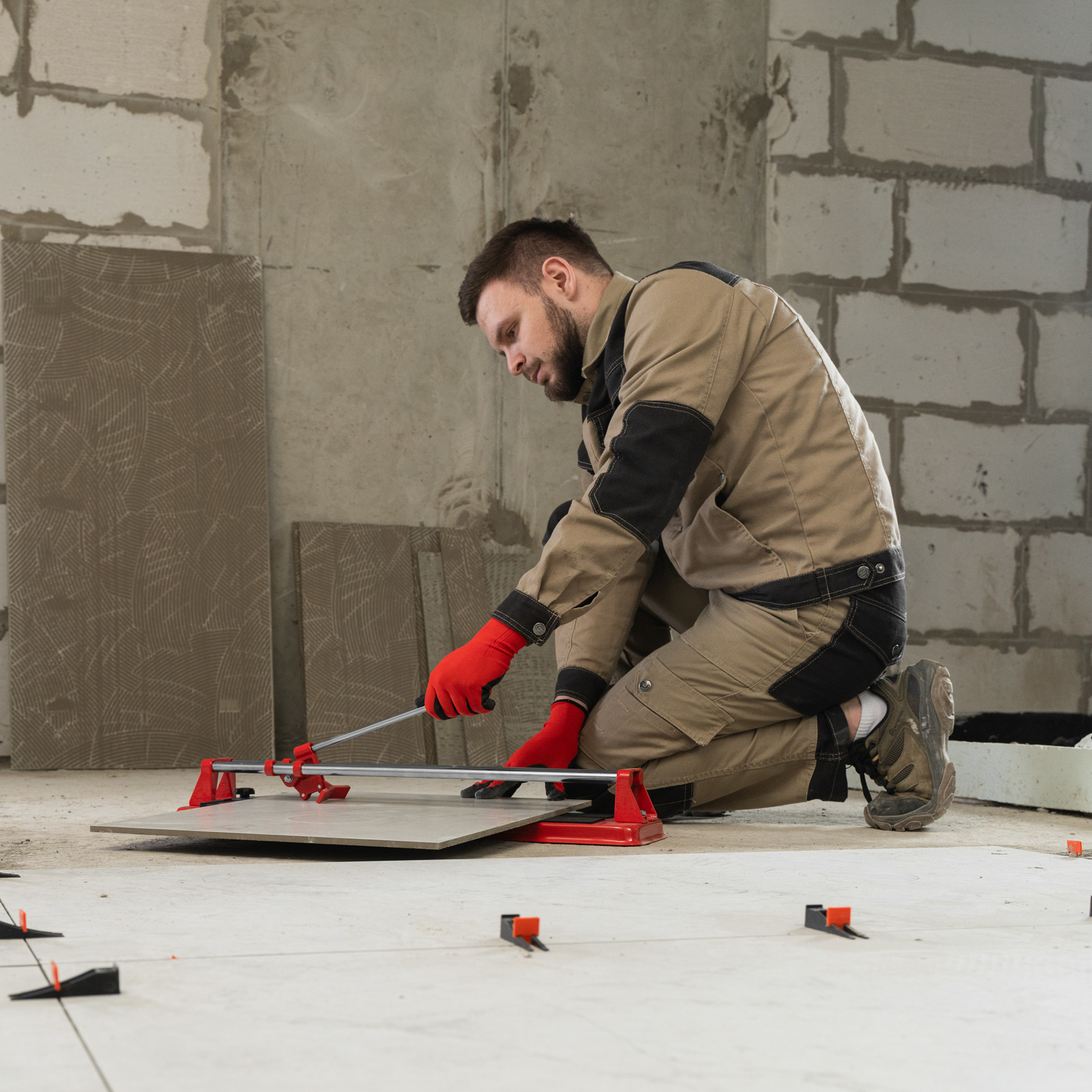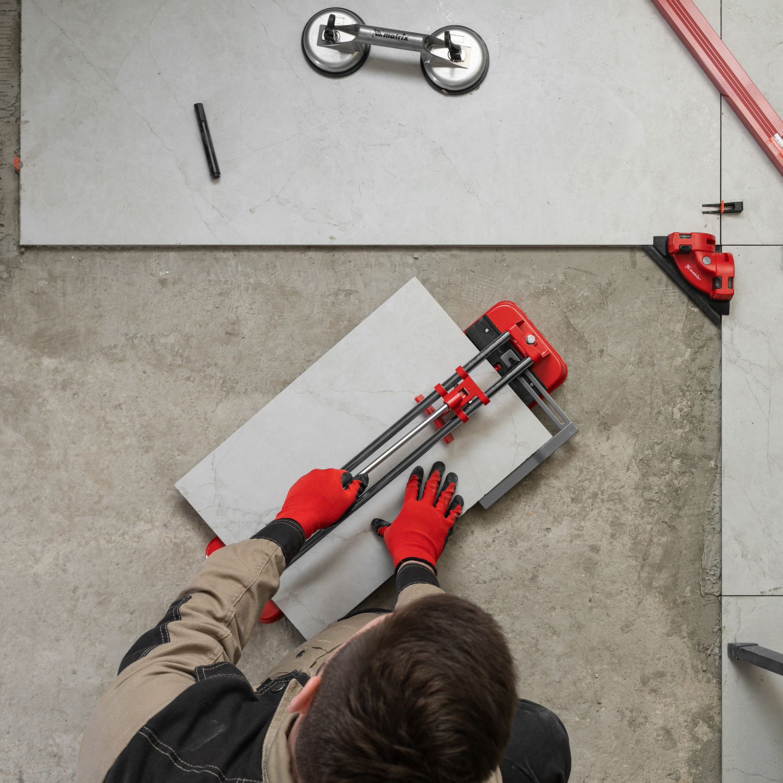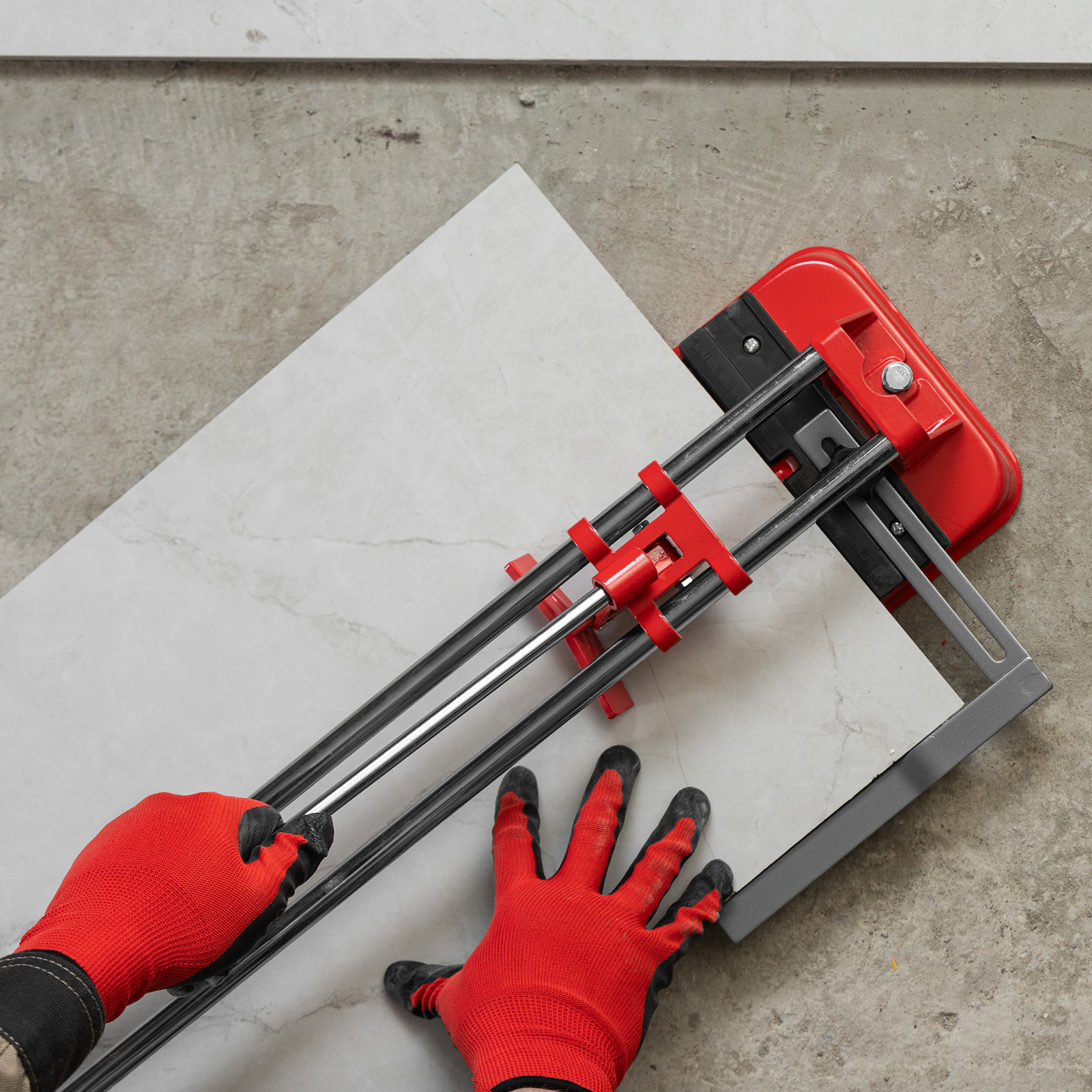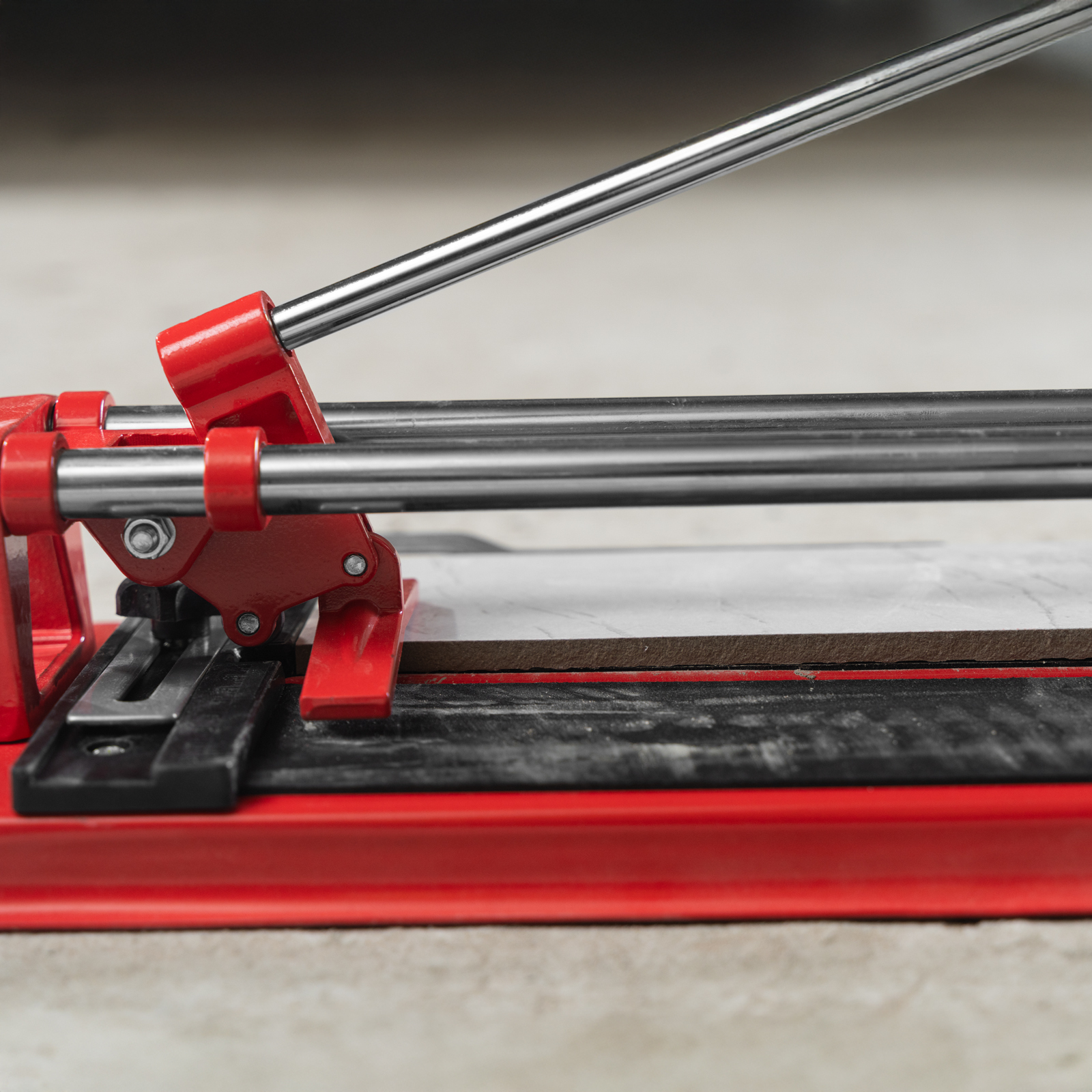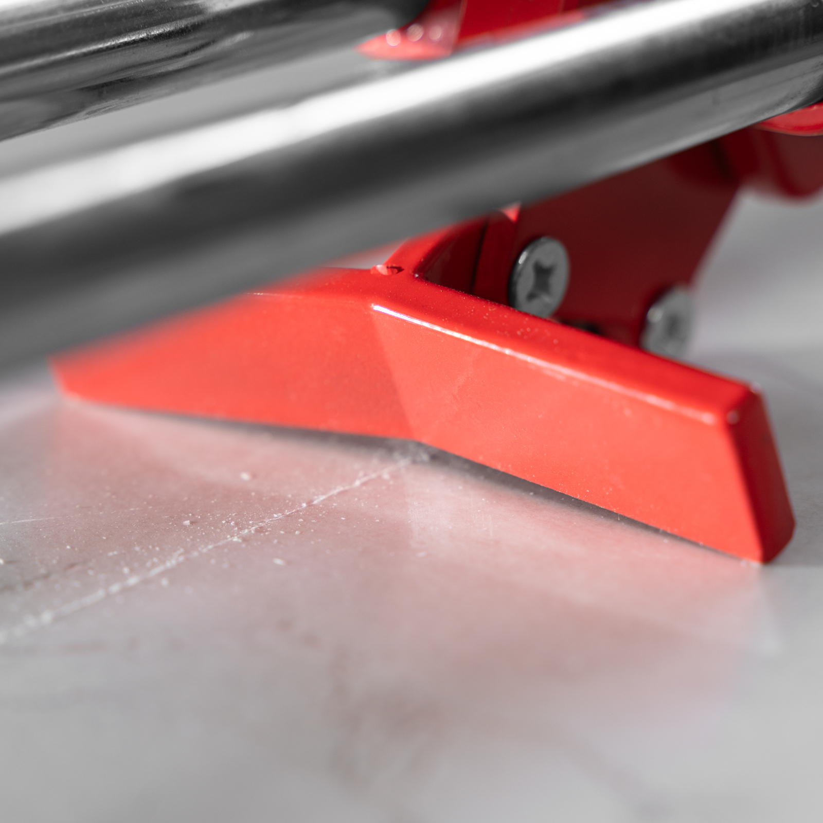 - Высокое качество работы — стальное основание обеспечивает устойчивость плиткореза, мягкие амортизирующие накладки предотвращают смещение плитки.