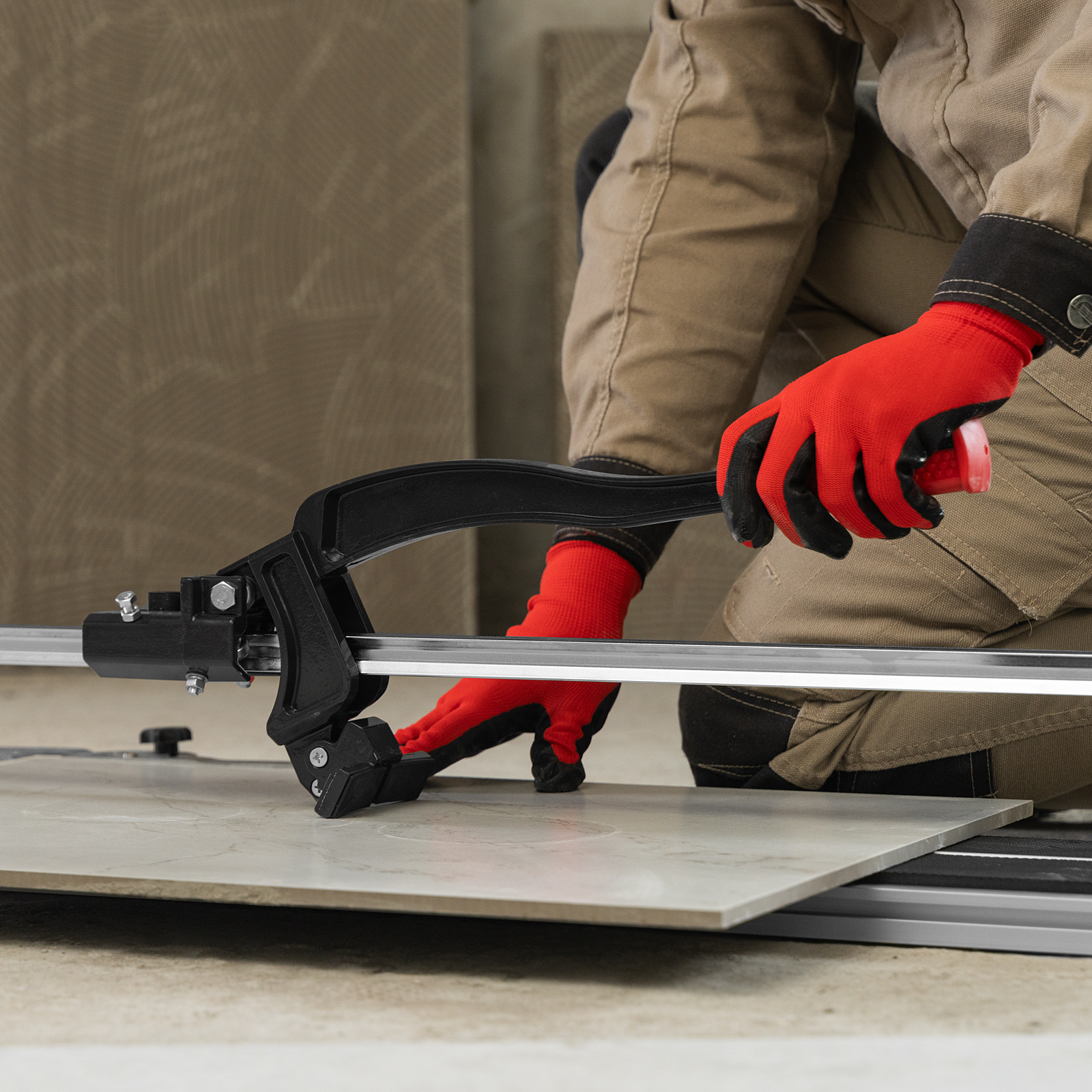 Рельсовый плиткорез MTX 87691 способен резать плитку длиной до 900 мм и толщиной до 16 мм для придания ей необходимых размеров. Мощный разделитель справляется с резкой не только керамической, но и керамогранитной плитки. Продуманная конструкция позволяет производить разлом в любой точке поверхности плитки. Инструмент используется во время проведения облицовочных работ.