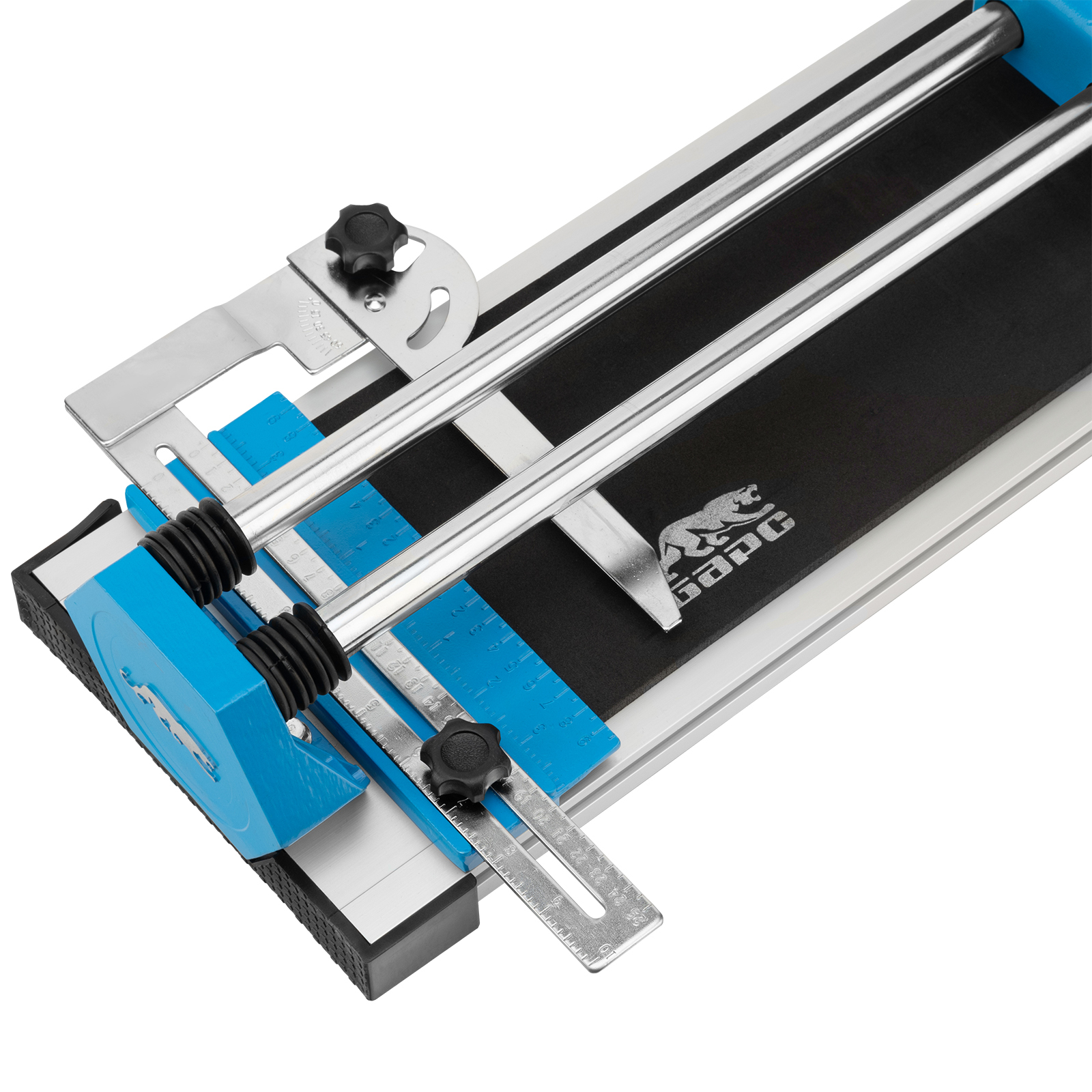 - Надежная фиксация плитки — цельнолитая станина из алюминиевого сплава обеспечивает устойчивость плиткореза, резиновые амортизаторы предотвращают удар каретки о стойку.