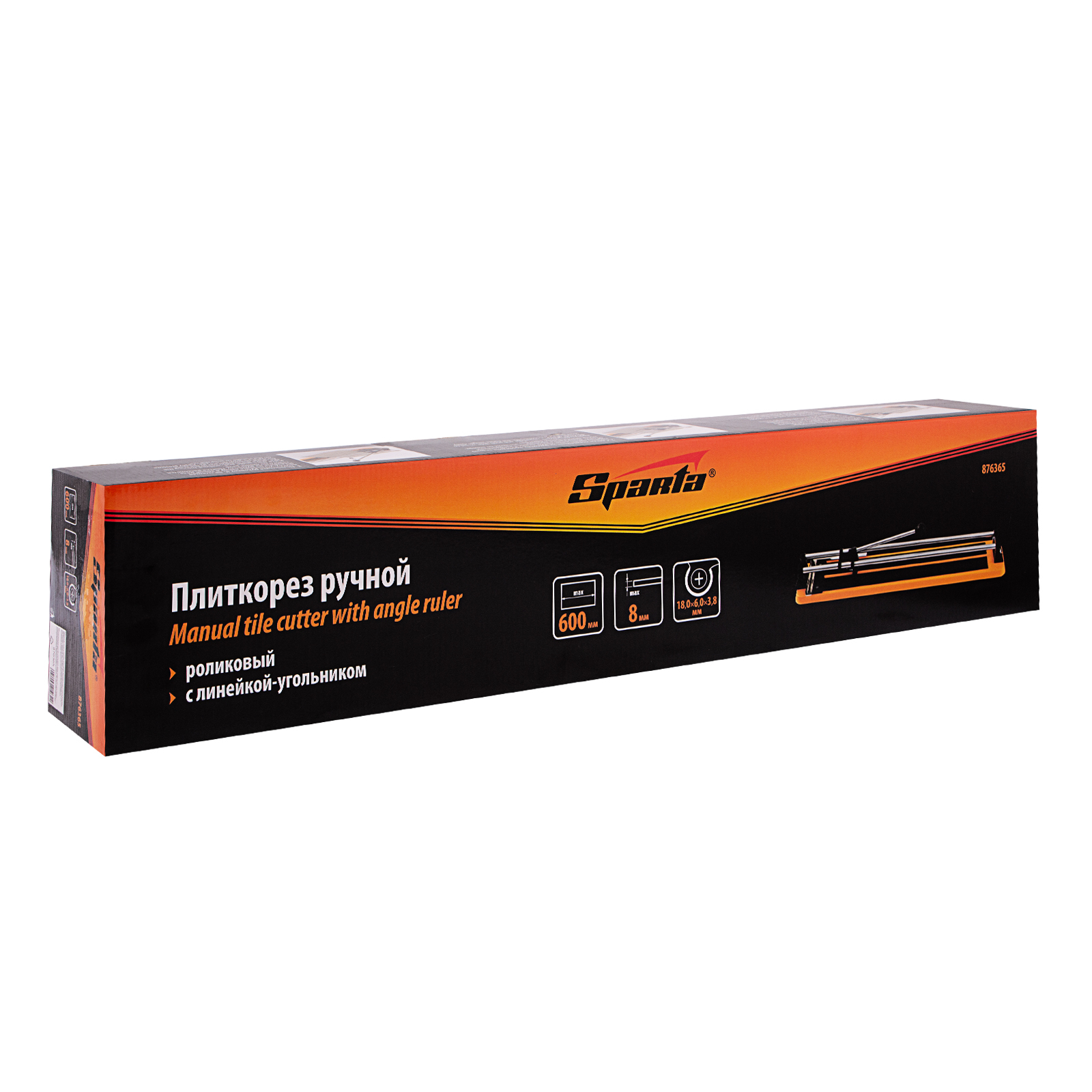 <p>Роликовый плиткорез Sparta 876365 — ручной инструмент для резки керамической плитки длиной до 600 мм и толщиной до 8 мм. Используется во время проведения отделочных работ.</p><h2>Преимущества</h2><ul><li>Высокий ресурс — режущий ролик из карбида вольфрама отличается износостойкостью, цельностальные направляющие хромированы для защиты от коррозии.</li><li>Точность выполняемых работ — металлическая линейка-угольник облегчает позиционирование плитки на станине, твердосплавный режущий ролик обеспечивает аккуратный рез.</li><li>Комфортная эксплуатация — мягкие амортизирующие накладки препятствуют скольжению плитки.</li></ul>