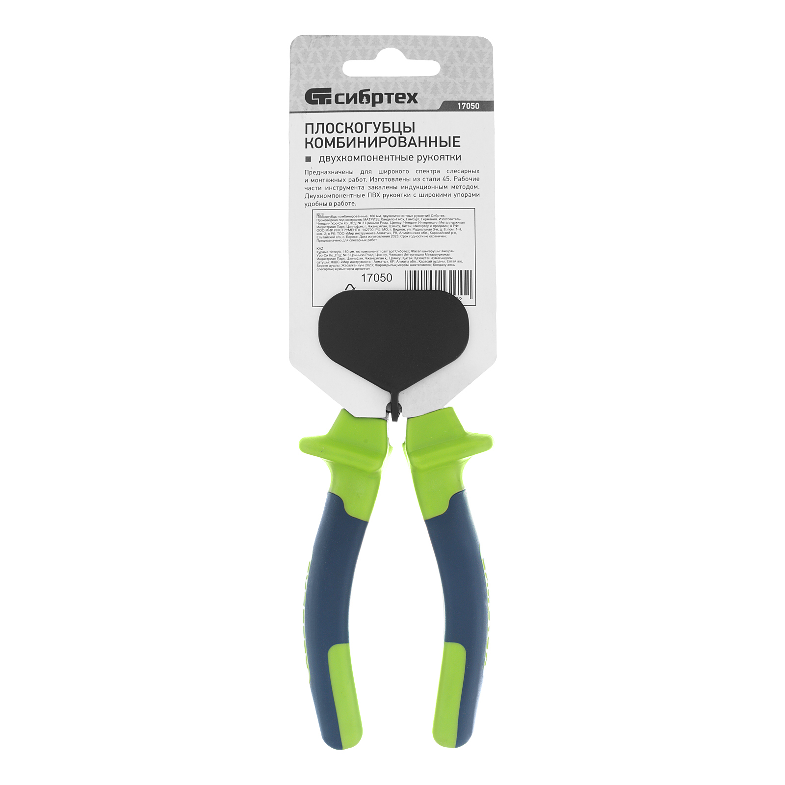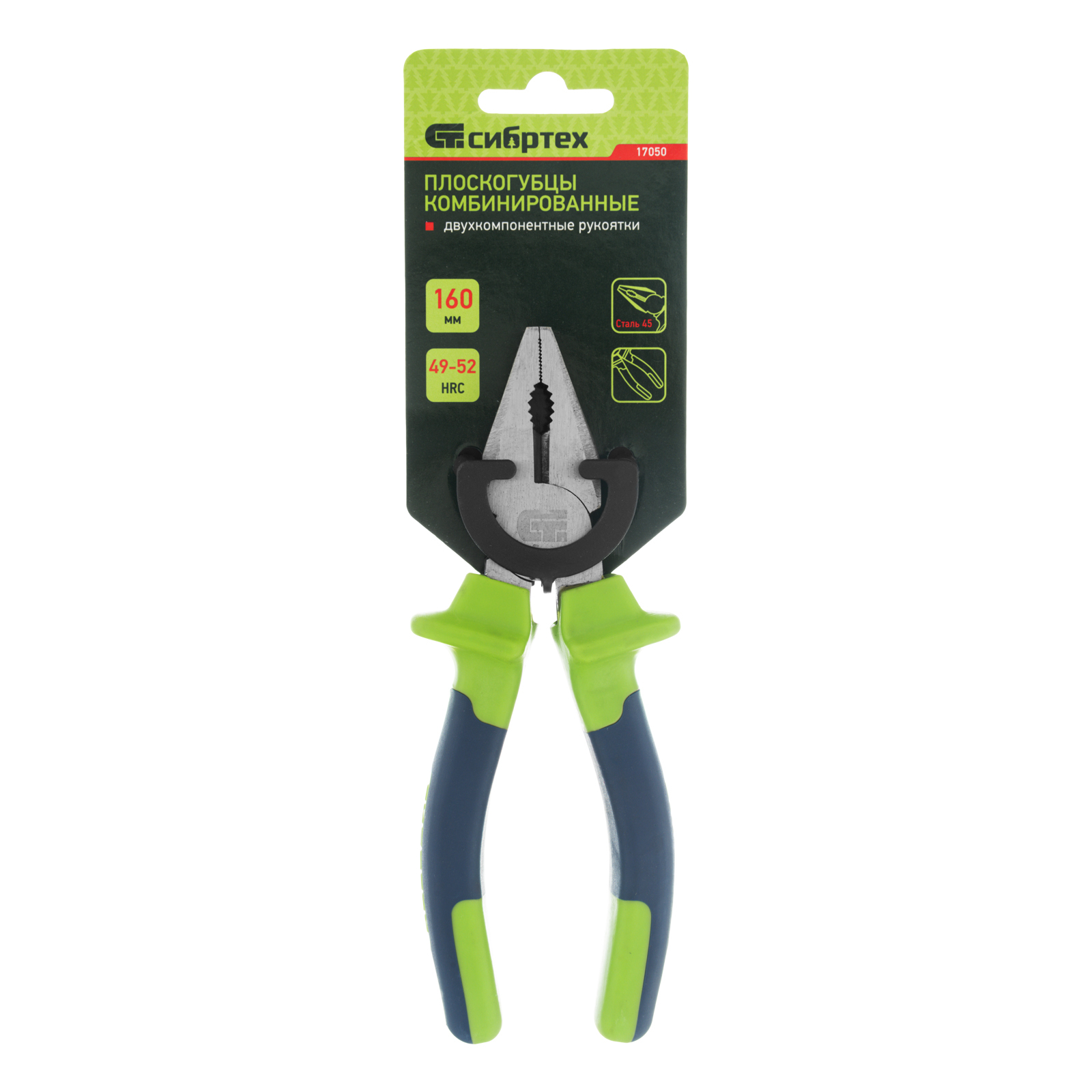 <p>Комбинированные плоскогубцы Сибртех 17050 длиной 160 мм, с двухкомпонентными рукоятками, предназначены для перекусывания проволоки и захвата крепежа, прутков и других деталей. Будут полезны слесарю и монтажнику во время наладки оборудования, ремонта сантехники и выполнения других работ.</p><h2>Преимущества</h2><ul><li>Прочность и надежность — головка из высококачественной стали 45 устойчива к механическим нагрузкам.</li><li>Долговечность — рабочая часть закалена высокочастотными токами, покрыта маслом и отшлифована для повышения твердости и защиты от коррозии.</li><li>Комфортная работа — двухкомпонентные рукоятки с упорами удобно лежат в руке и не выскальзывают из ладони.</li></ul>