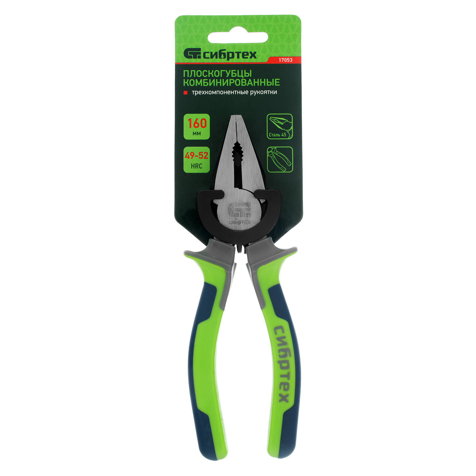 <p>Комбинированные плоскогубцы Сибртех 17053 длиной 160 мм, с фосфатированием и трехкомпонентными рукоятками, используются для перекусывания проволоки и захвата деталей, будут полезны монтажникам и слесарям. Инструмент поможет произвести наладку оборудования, отремонтировать сантехнику и выполнить другие работы.</p><h2>Преимущества</h2><ul><li>Прочность и износостойкость — головка изготовлена из стали 55, режущие кромки прошли закалку высокочастотными токами.</li><li>Антикоррозийная защита — рабочая часть плоскогубцев фосфатирована и отшлифована.</li><li>Эргономичность — трехкомпонентные рукоятки с защитными упорами не выскальзывают из ладони.</li></ul>