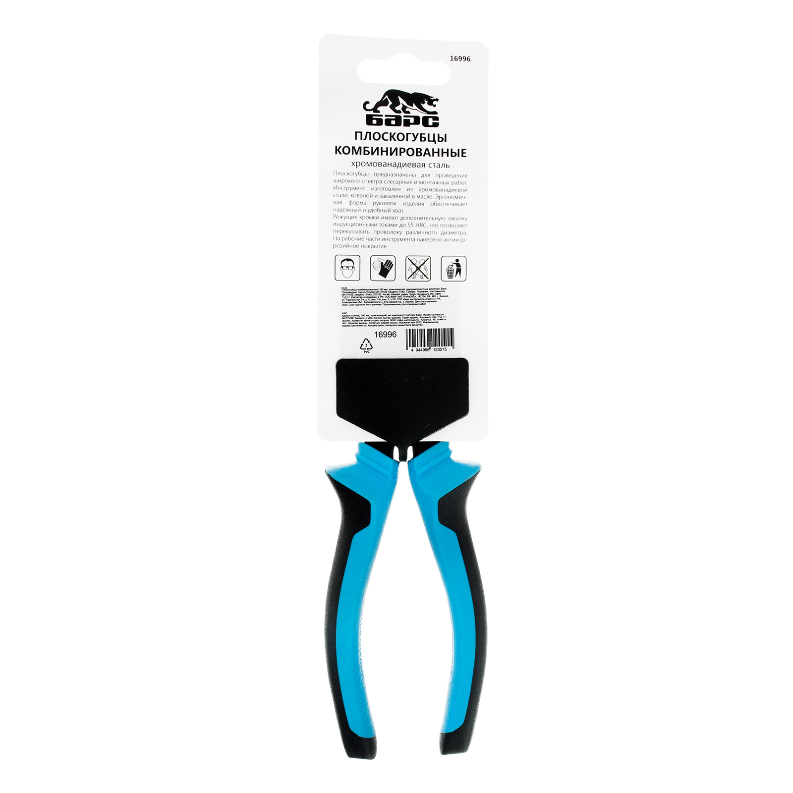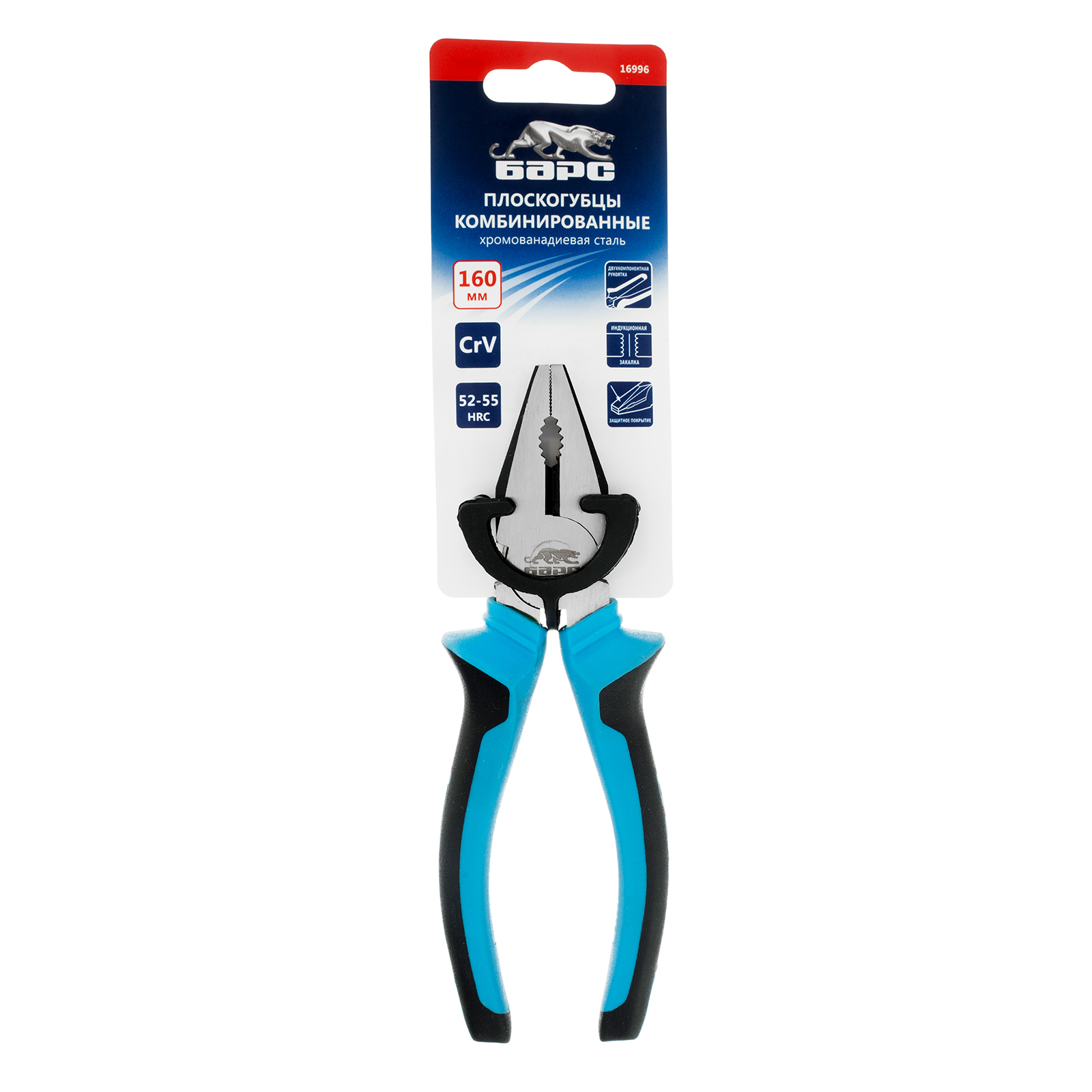<p>Комбинированные плоскогубцы Барс 16996 длиной 160 мм, из хром-ванадия, с двухкомпонентными рукоятками, позволяют захватывать, сгибать и удерживать детали различной формы. Пригодятся слесарям и монтажникам при наладке оборудования, монтаже конструкций и т.д.</p><h2>Преимущества</h2><ul><li>Материал головки — высококачественная хромованадиевая сталь твердостью 47-50 HRC, выступающая гарантией прочности и надежности инструмента.</li><li>Стальные части плоскогубцев обработаны антикоррозионным покрытием и отшлифованы, что повышает их ресурс.</li><li>Двухкомпонентные эргономичные рукоятки удобно лежат в руке и делают работу более комфортной.</li><li>Рукоятки оснащены ударопрочными ограничителями, которые предотвращают выскальзывание плоскогубцев из рук.</li></ul>