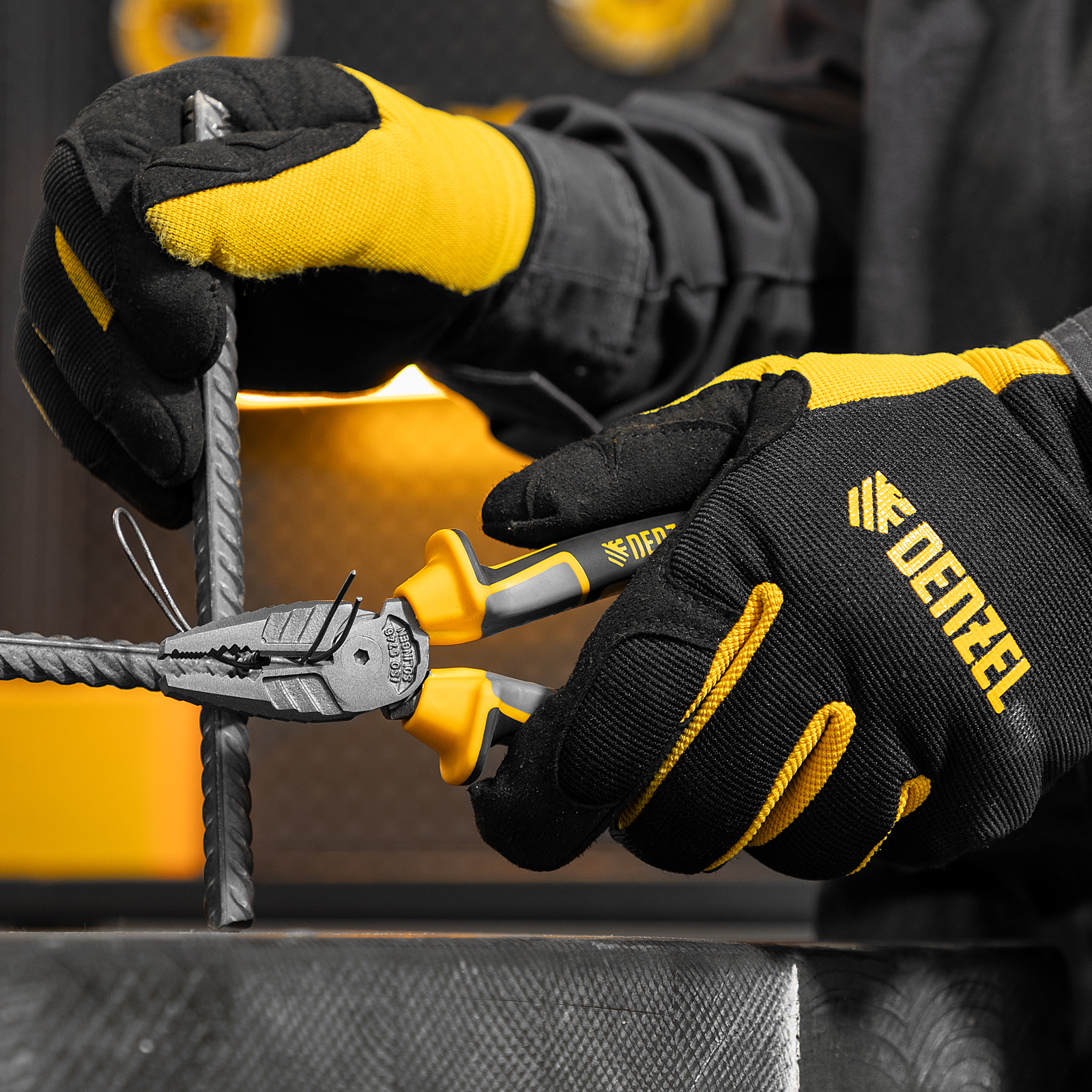 Комбинированные плоскогубцы Denzel 17080 длиной 165 мм, с трехкомпонентными рукоятками, используются для зажима и удержания деталей, сгибания металлических листов. Позволяют также перекусывать мягкую проволоку (алюминиевую, медную, с пределом прочности 220 Н/мм2) диаметром до 4 мм, проволоку средней жесткости и гвозди (750 Н/мм2) диаметром до 3,1 мм, а также жесткую (1800 Н/мм2) толщиной до 2 мм. Имеют внутренние грани специальной формы, предназначенные для использования инструмента в качестве гаечного ключа. Губки с насечками надежно удерживают заготовки. Плоскогубцы пригодятся профессионалу и частному мастеру при проведении слесарных, ремонтных и сборочных работ.