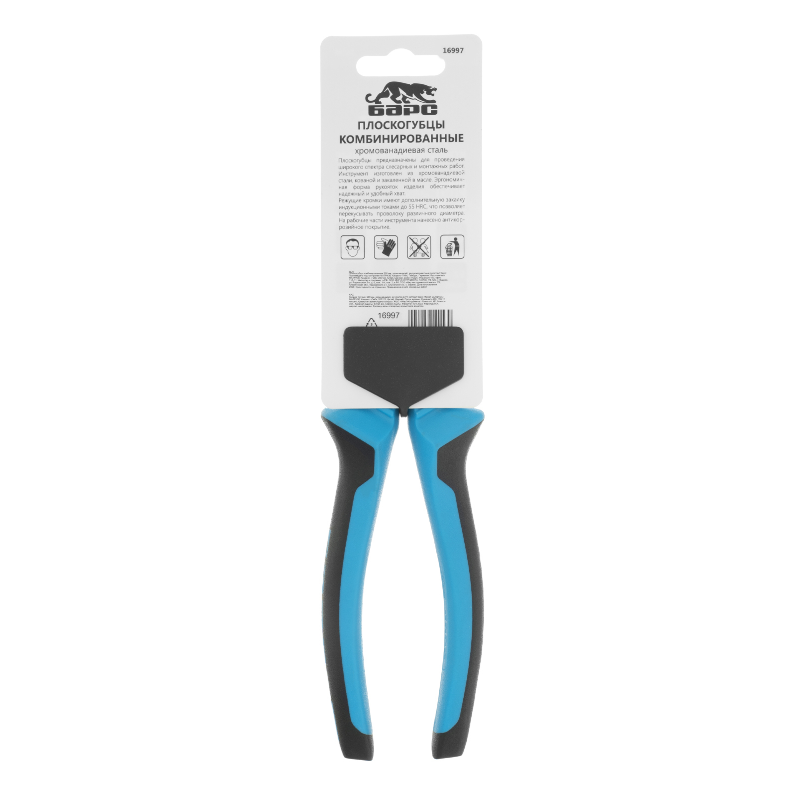 <p>Комбинированные плоскогубцы Барс 16997 длиной 180 мм, из хром-ванадия, с двухкомпонентными рукоятками, позволяют захватывать, сгибать и удерживать детали различной формы. Пригодятся слесарям и монтажникам для проведения работ по наладке оборудования, монтажу конструкций, а также решения других задач.</p><h2>Преимущества</h2><ul><li>Надежность — рабочая часть изготовлена из высококачественной хромованадиевой стали, закаленной до необходимой твердости.</li><li>Долговечность — стальные части отшлифованы и имеют антикоррозионное покрытие, что повышает их ресурс.</li><li>Безопасность — благодаря специальным ограничителям рукоятки не выскальзывают из ладони.</li><li>Комфортная работа — двухкомпонентные эргономичные рукоятки удобно лежат в руке.</li></ul>