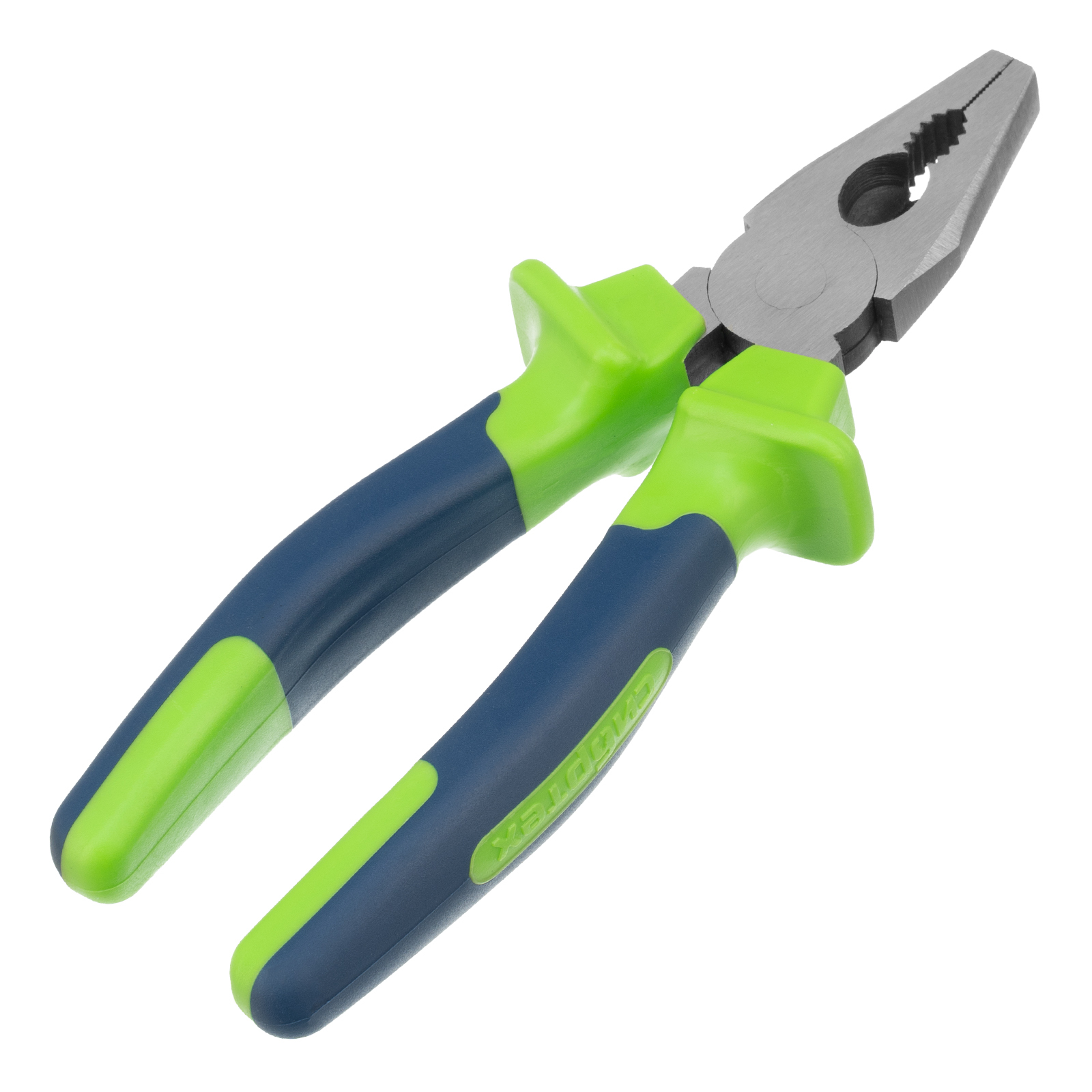 Комбинированные плоскогубцы Сибртех 17052 длиной 200 мм, с двухкомпонентными рукоятками, предназначены для перекусывания проволоки и захвата крепежа, прутков и других деталей. Будут полезны слесарю и монтажнику во время наладки оборудования, ремонта сантехники и выполнения других работ.