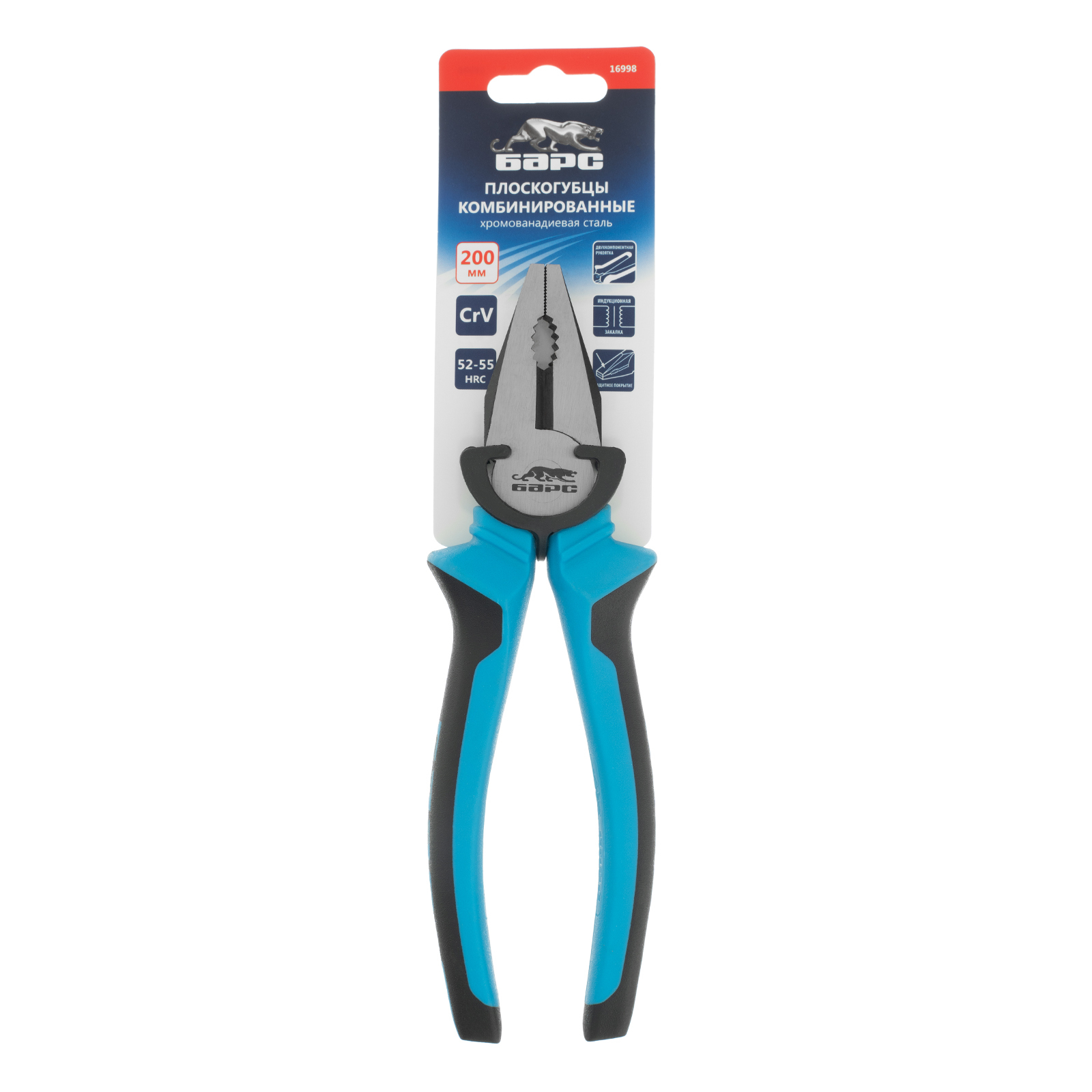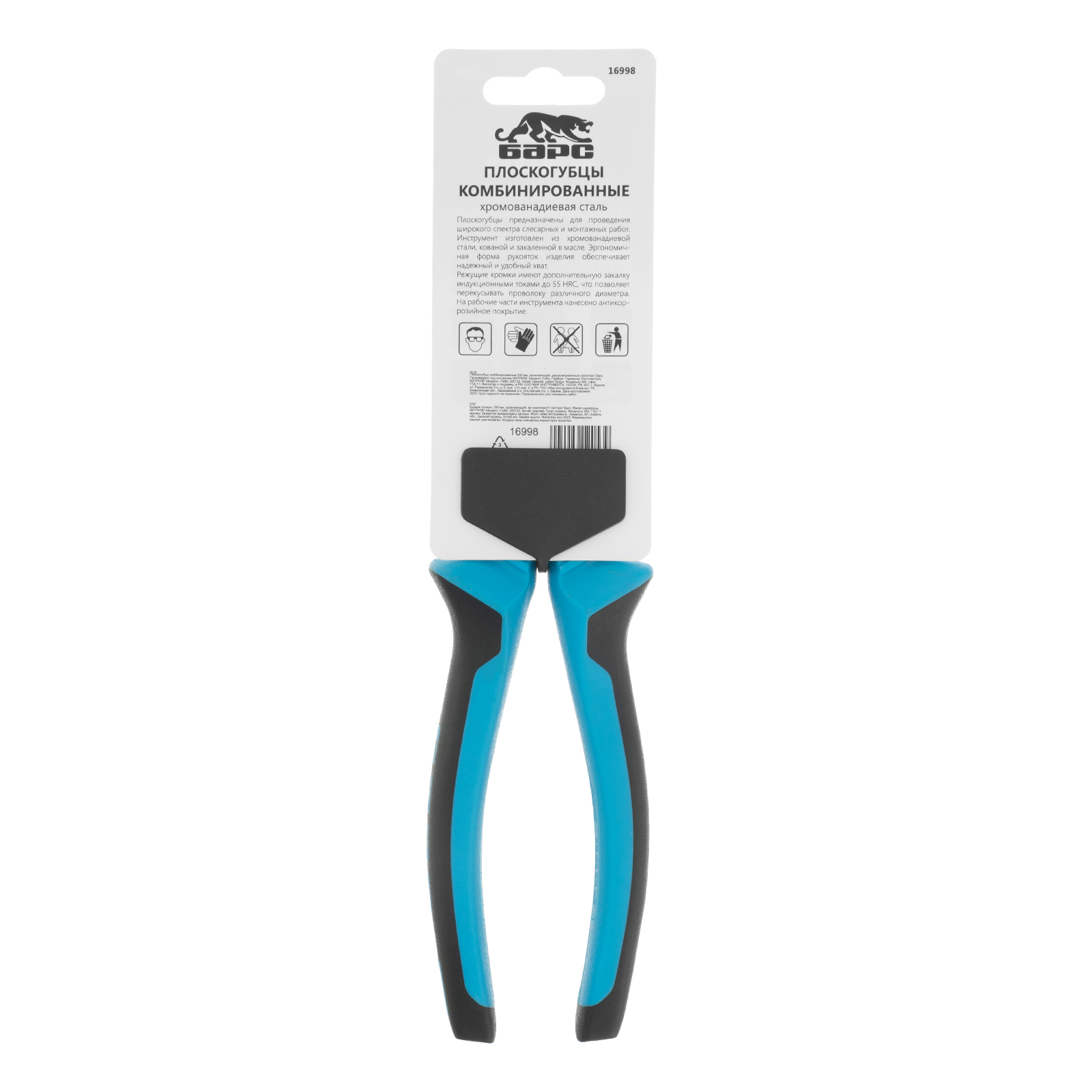 <p>Комбинированные плоскогубцы Барс 16998 длиной 200 мм, из хром-ванадия, с двухкомпонентными рукоятками, позволяют захватывать, сгибать и удерживать детали различной формы. Пригодятся слесарям и монтажникам для проведения работ по наладке оборудования, монтажу конструкций, а также решения других задач.</p><h2>Преимущества</h2><ul><li>Надежность — рабочая часть изготовлена из высококачественной хромованадиевой стали, закаленной до необходимой твердости.</li><li>Долговечность — стальные части отшлифованы и имеют антикоррозионное покрытие, что повышает их ресурс.</li><li>Безопасность — благодаря специальным ограничителям рукоятки не выскальзывают из ладони.</li><li>Комфортная работа — двухкомпонентные эргономичные рукоятки удобно лежат в руке.</li></ul>