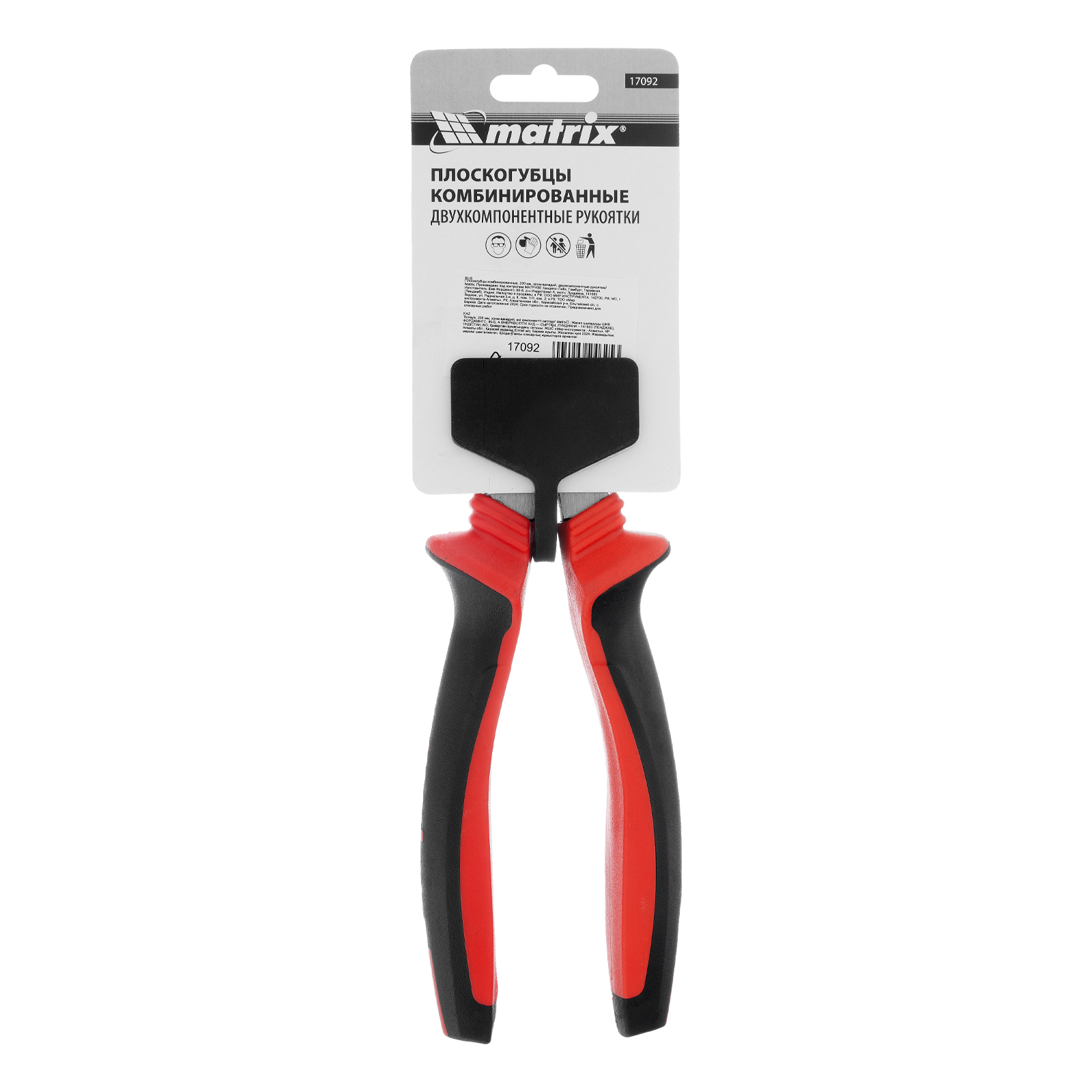 Плоскогубцы комбинированные, 200 мм, хром-ванадий, двухкомпонентные рукоятки Matrix
